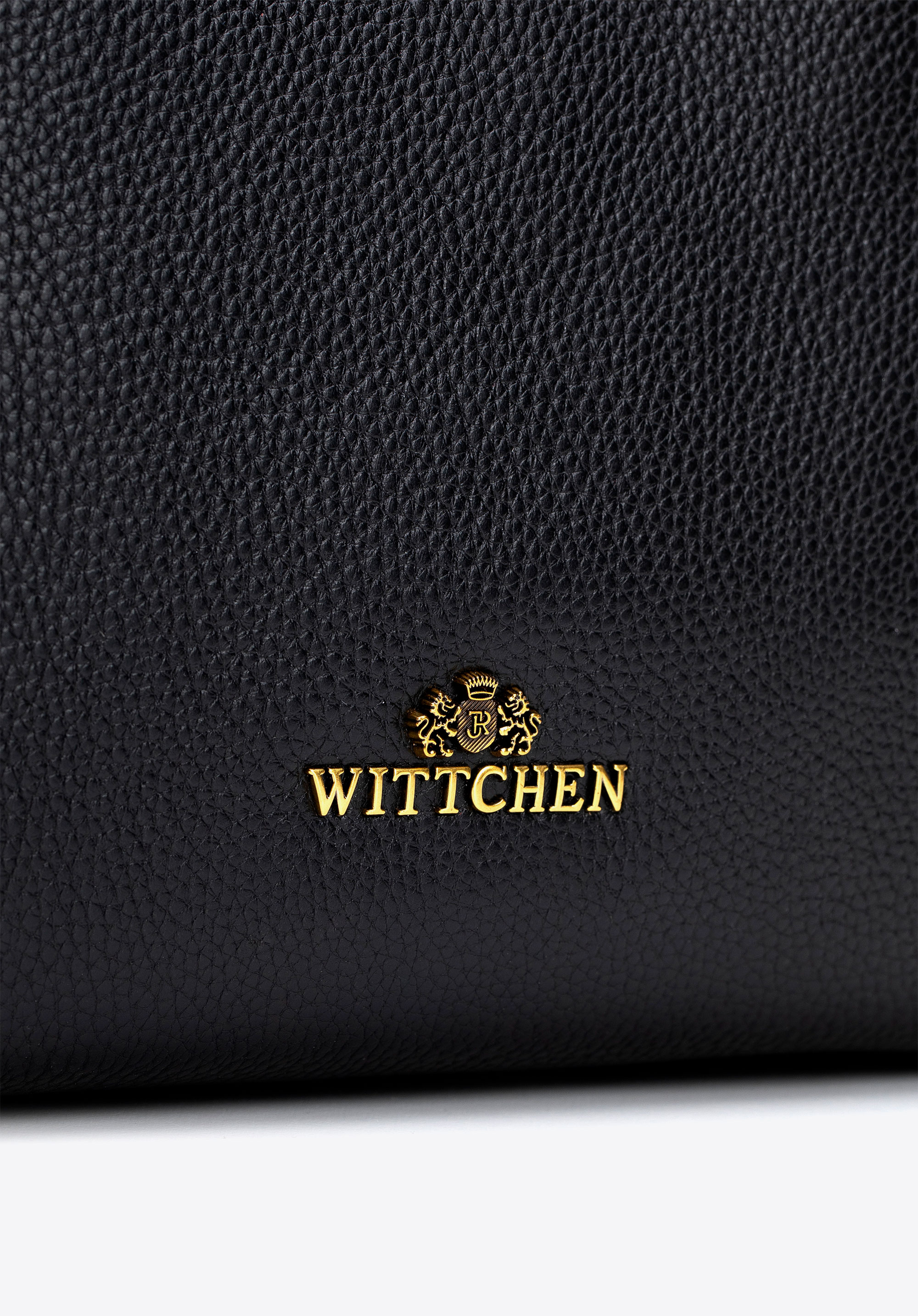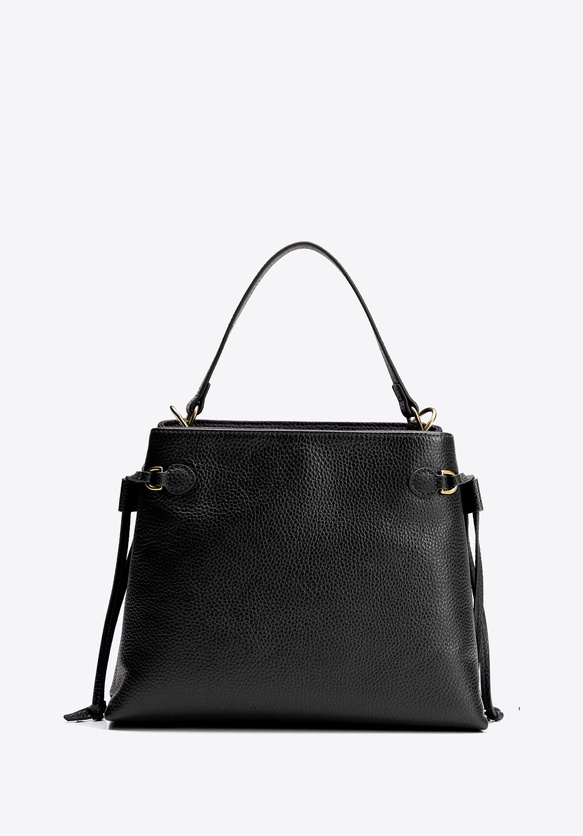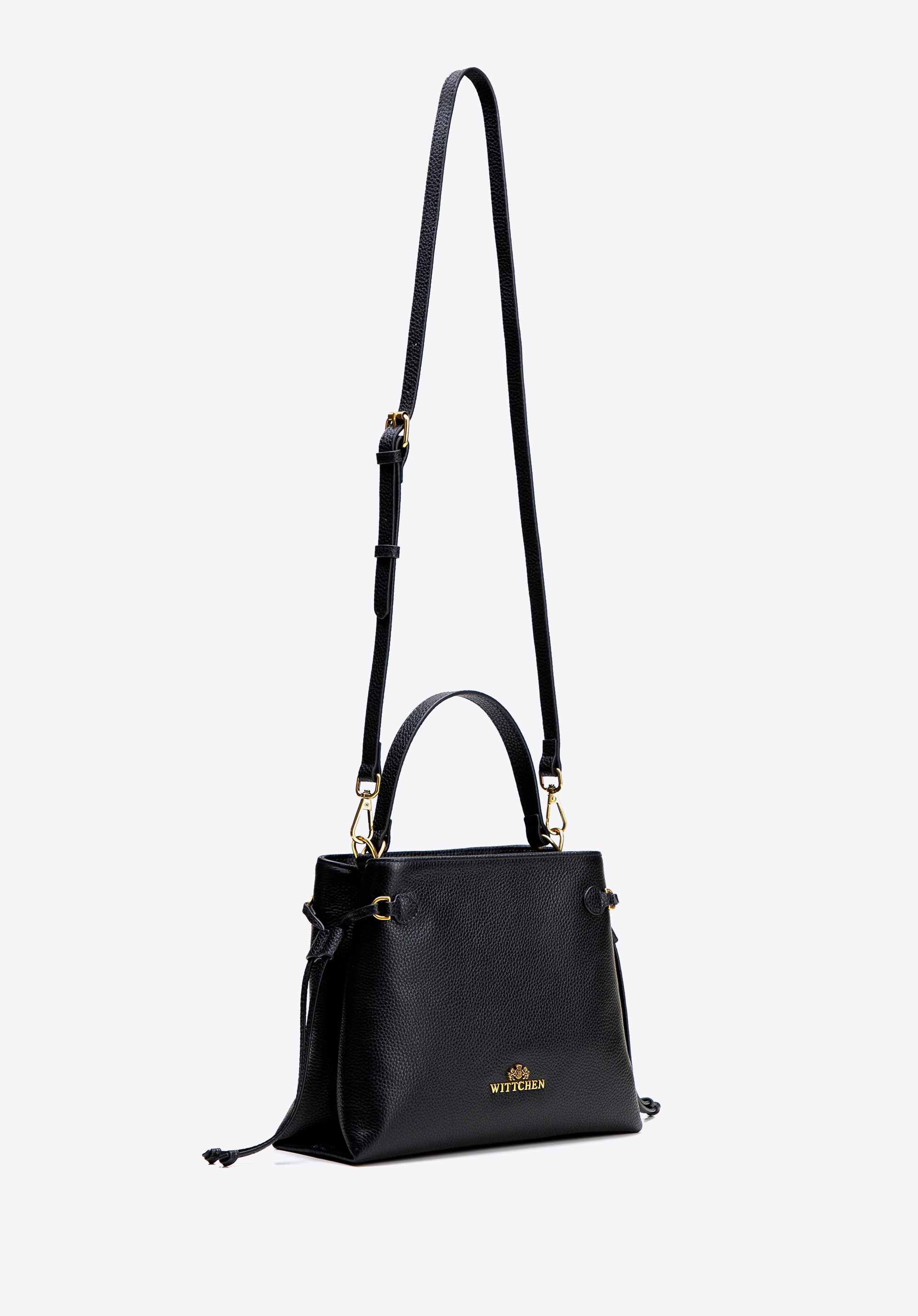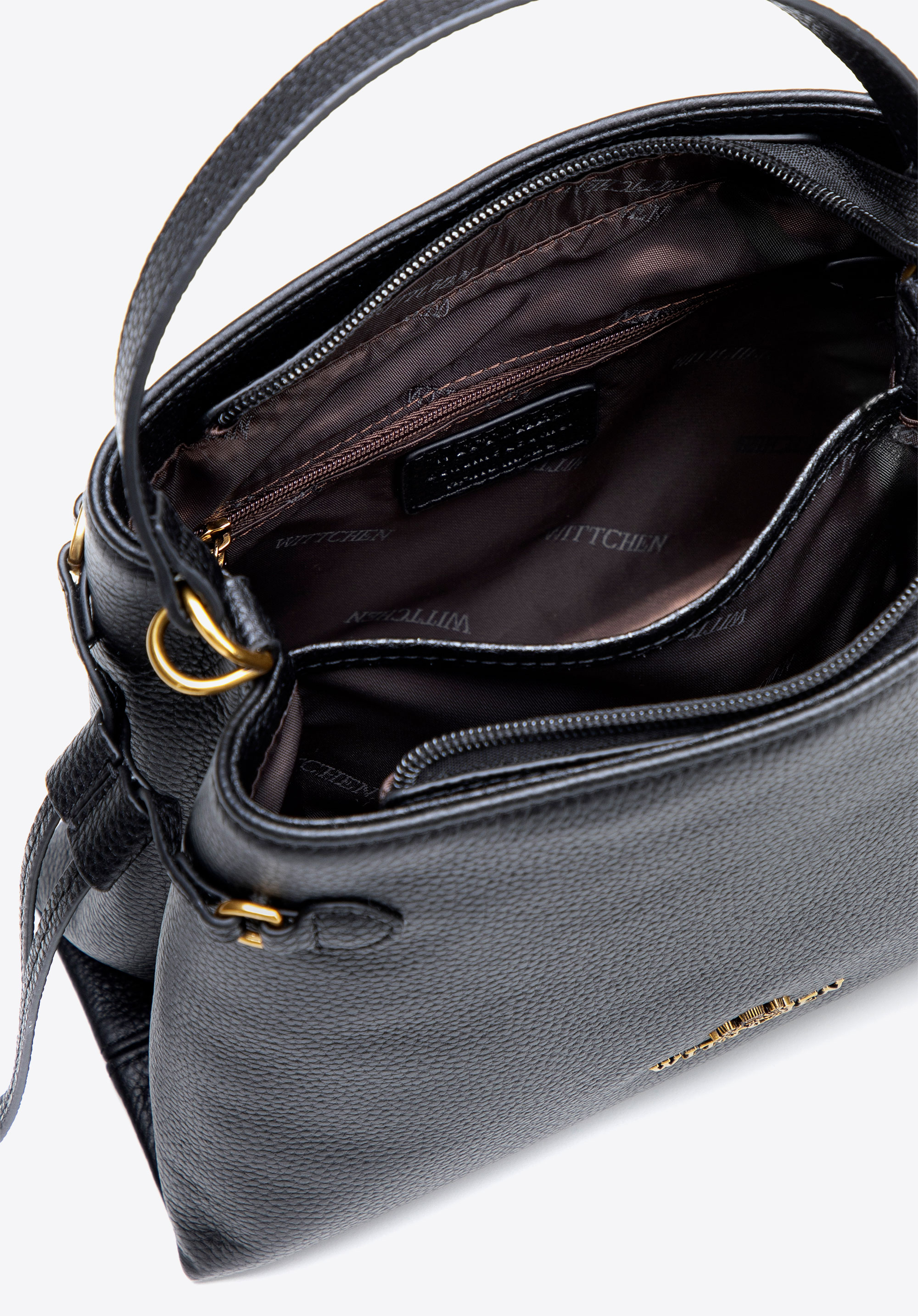 Damski kuferek ze skóry naturalnej z troczkami czarno - złoty