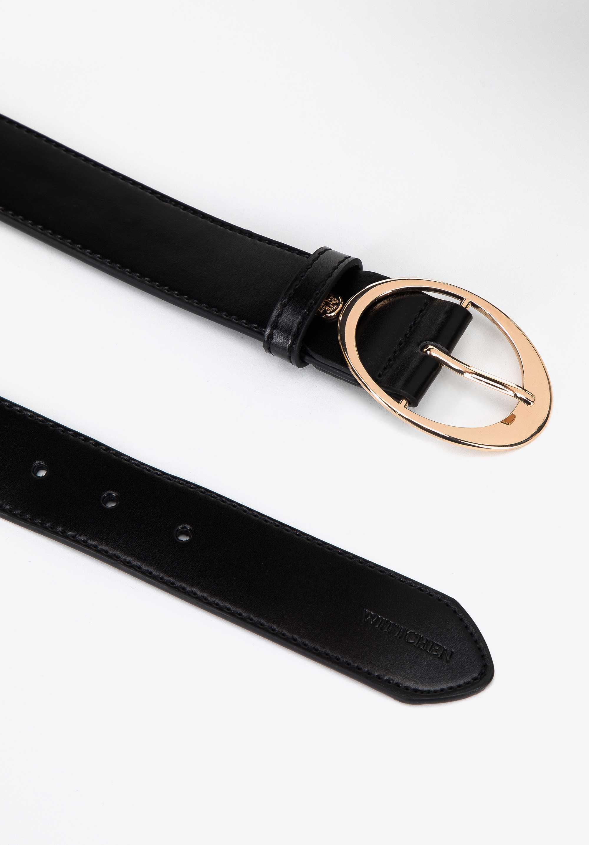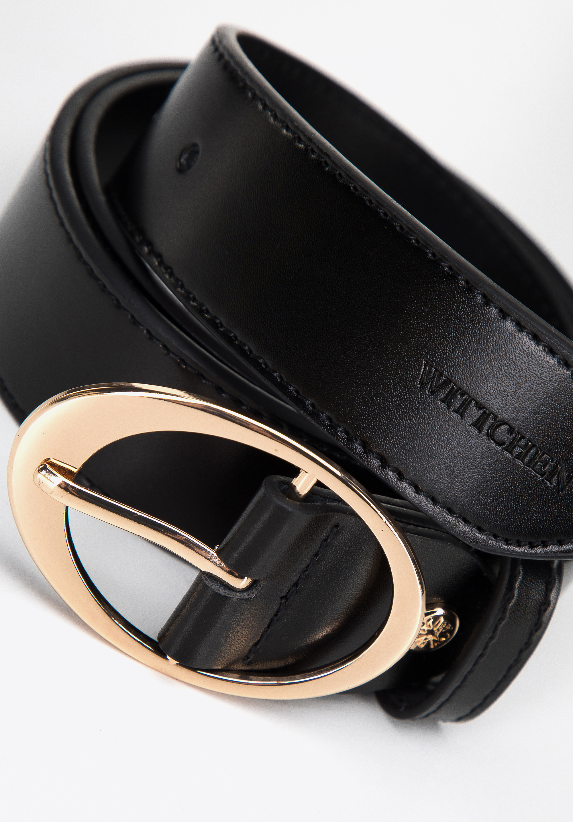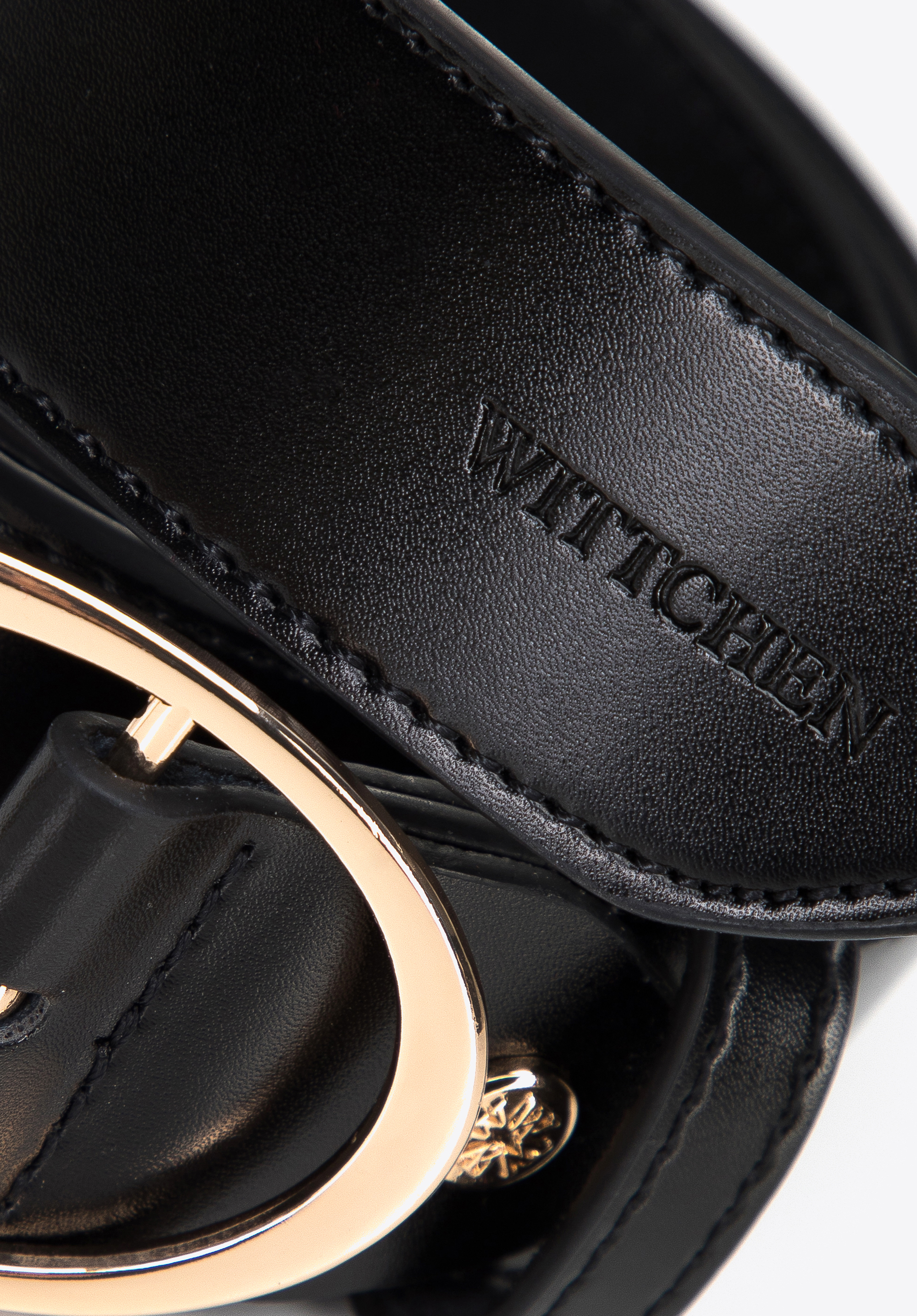 połyskujący nit z monogramem WITTCHEN szykownie dopełnia całość. Damski pasek skórzany z owalną klamrą to stylowy dodatek, który możesz nosić codziennie.