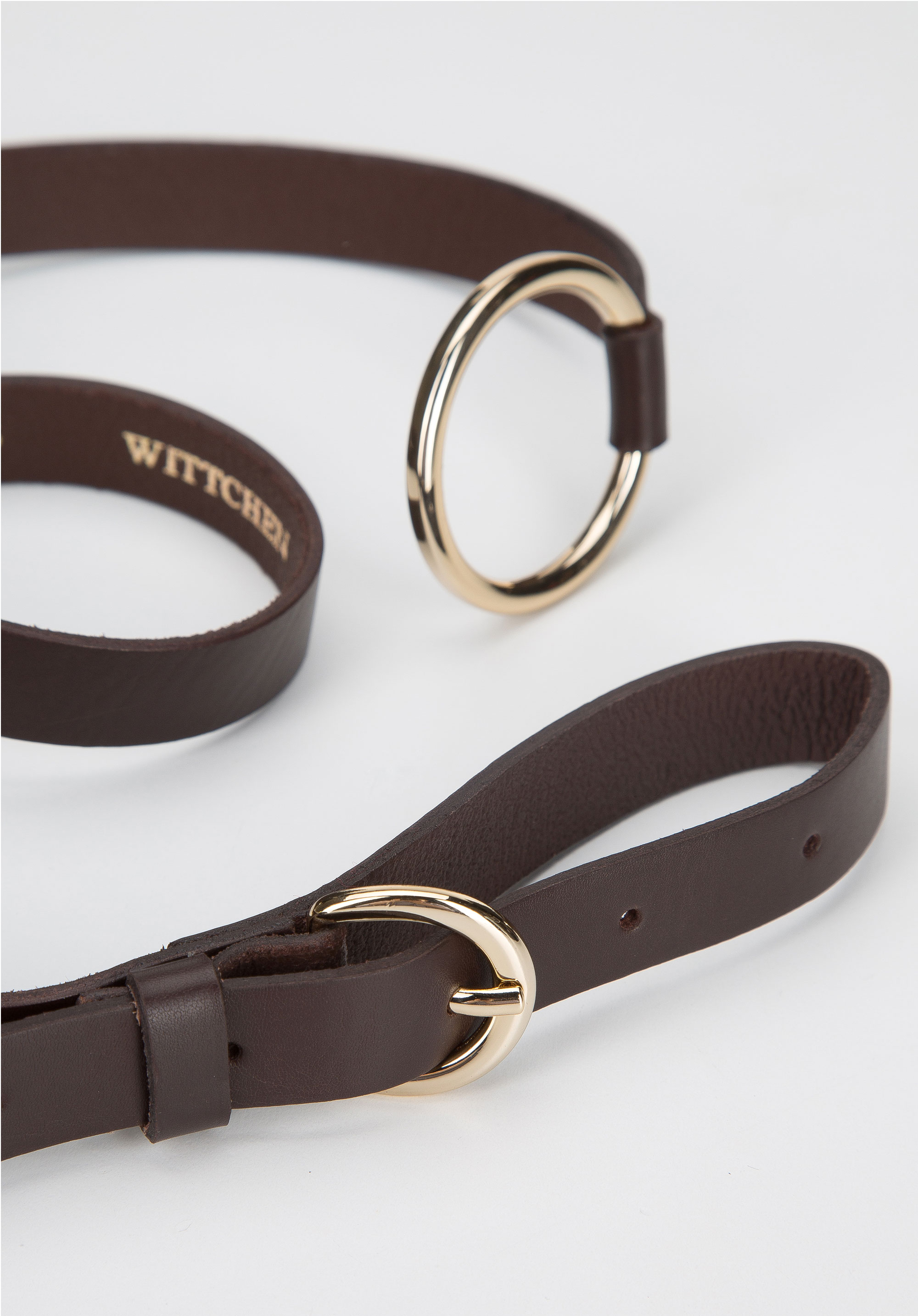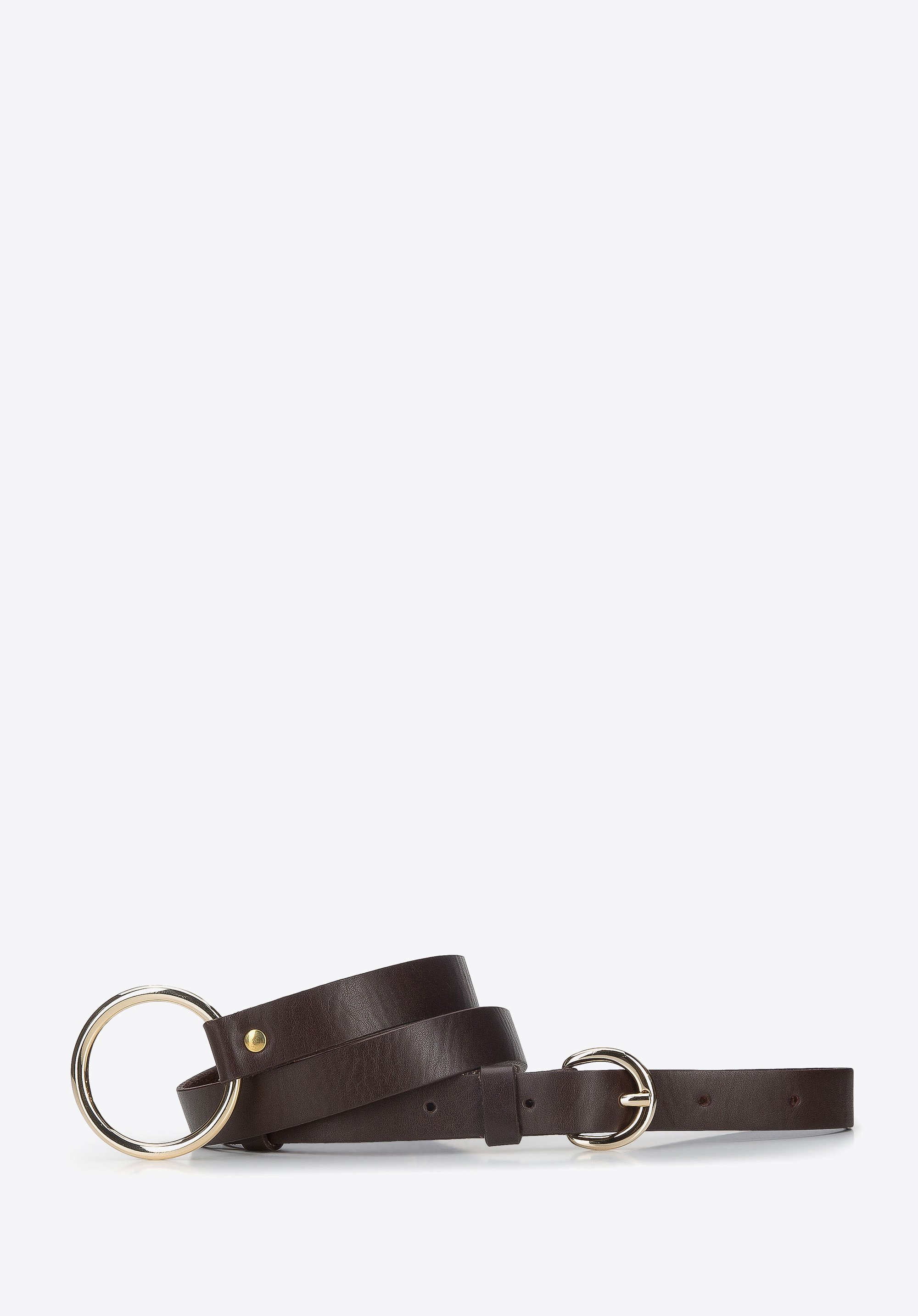 Damski pasek skórzany z podwójnym zapięciem ciemny brąz
