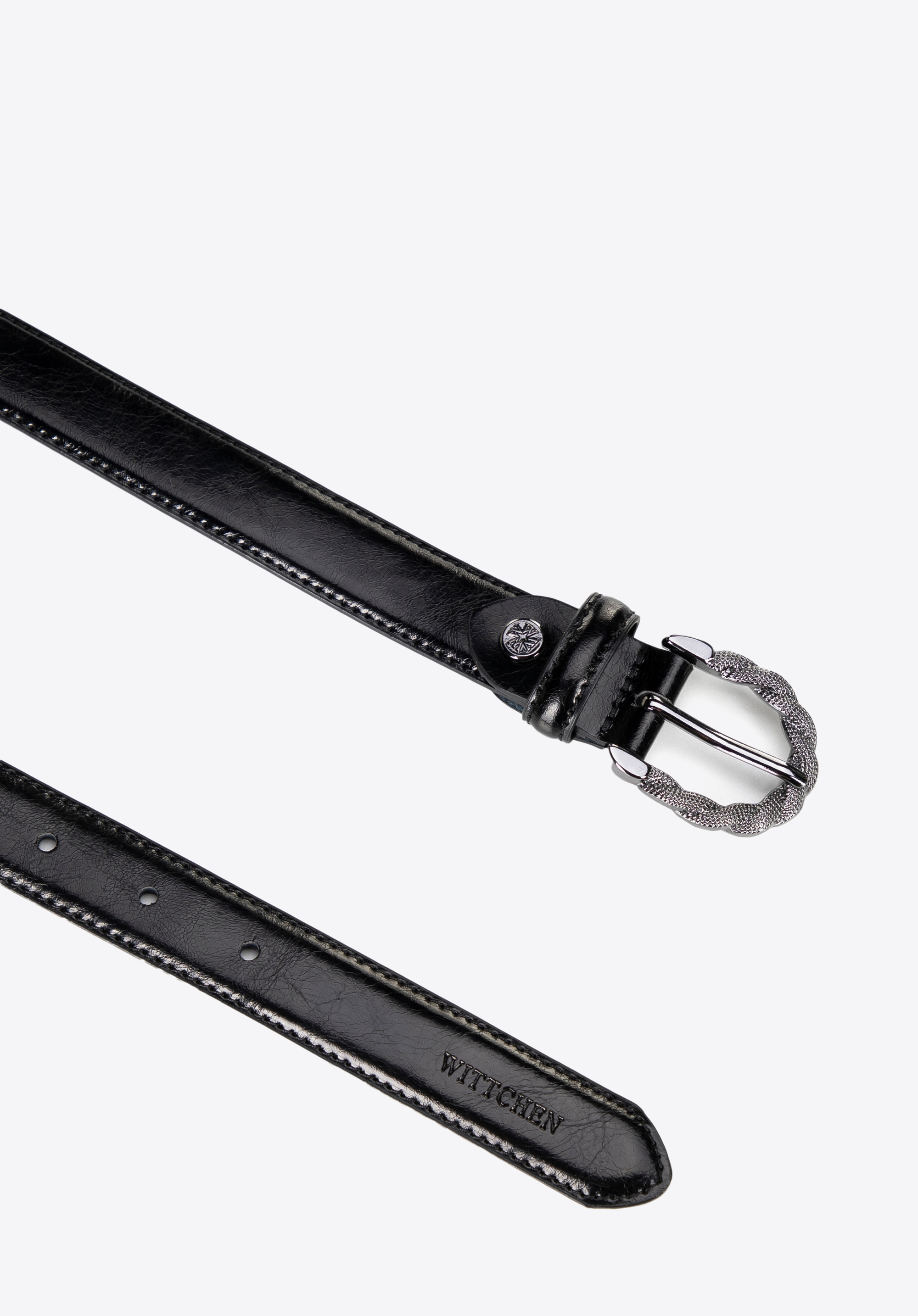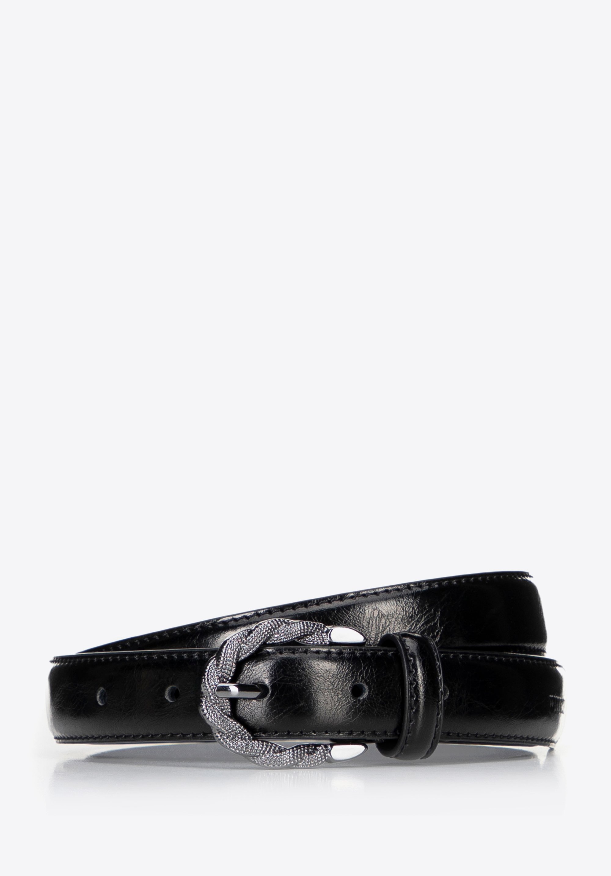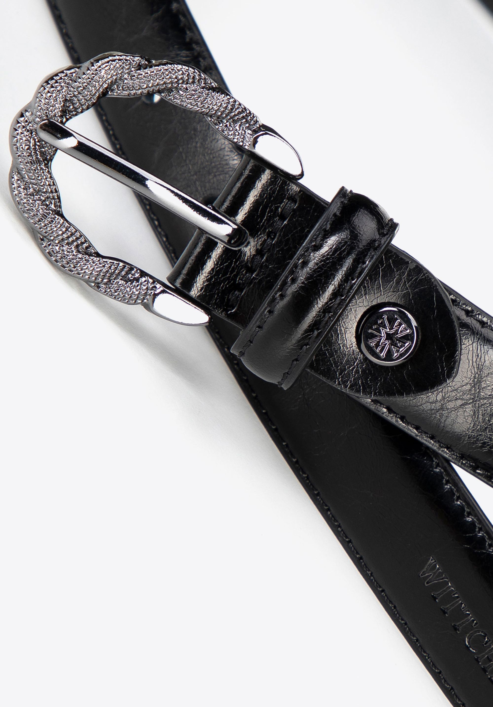 - Błyszcząca, zaokrąglona klamra: Nadaje klasy, dzięki czemu pasek przyciąga spojrzenia, ale nie dominuje stylizacji.