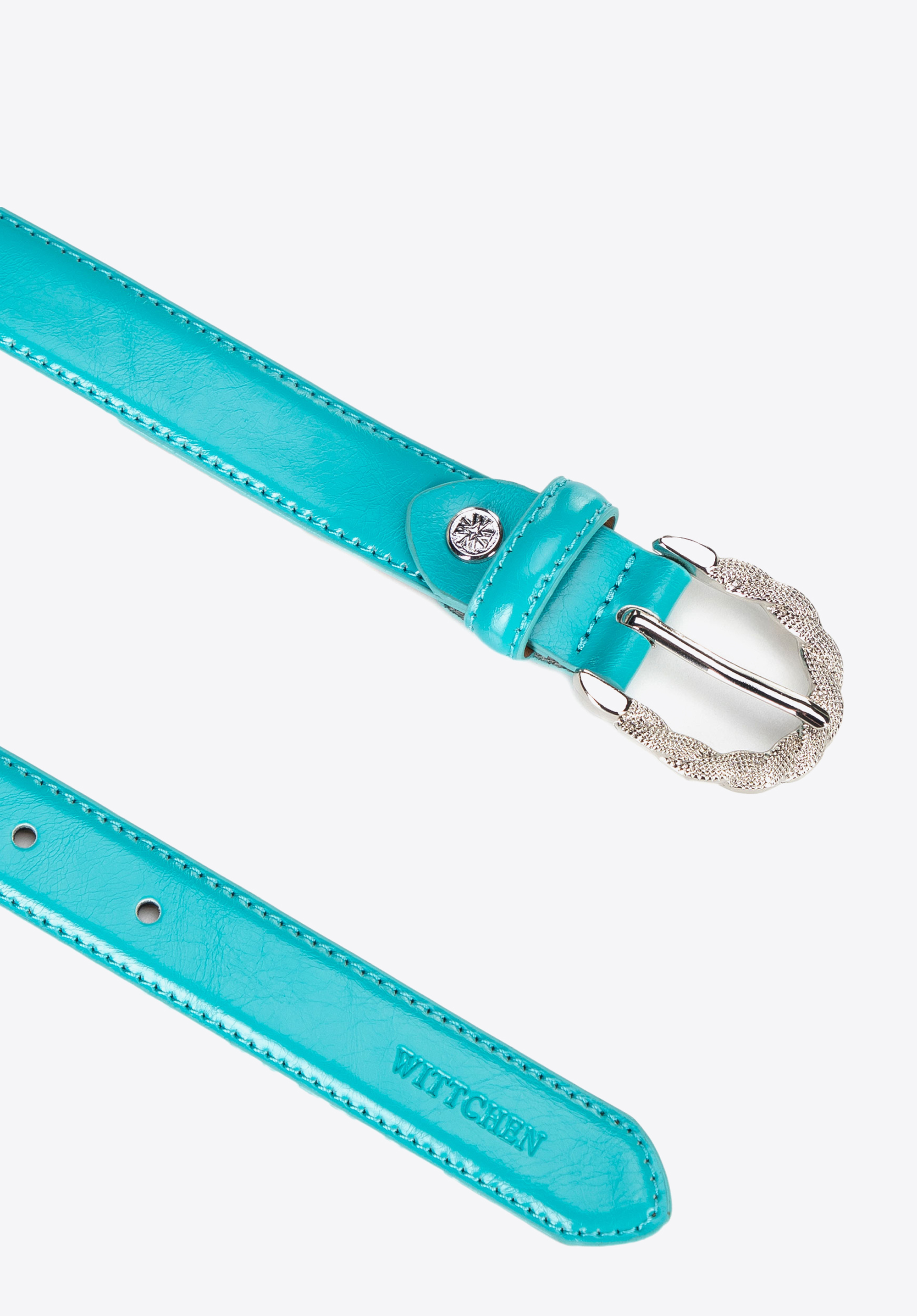 - Błyszcząca, zaokrąglona klamra: Nadaje klasy, dzięki czemu pasek przyciąga spojrzenia, ale nie dominuje stylizacji.