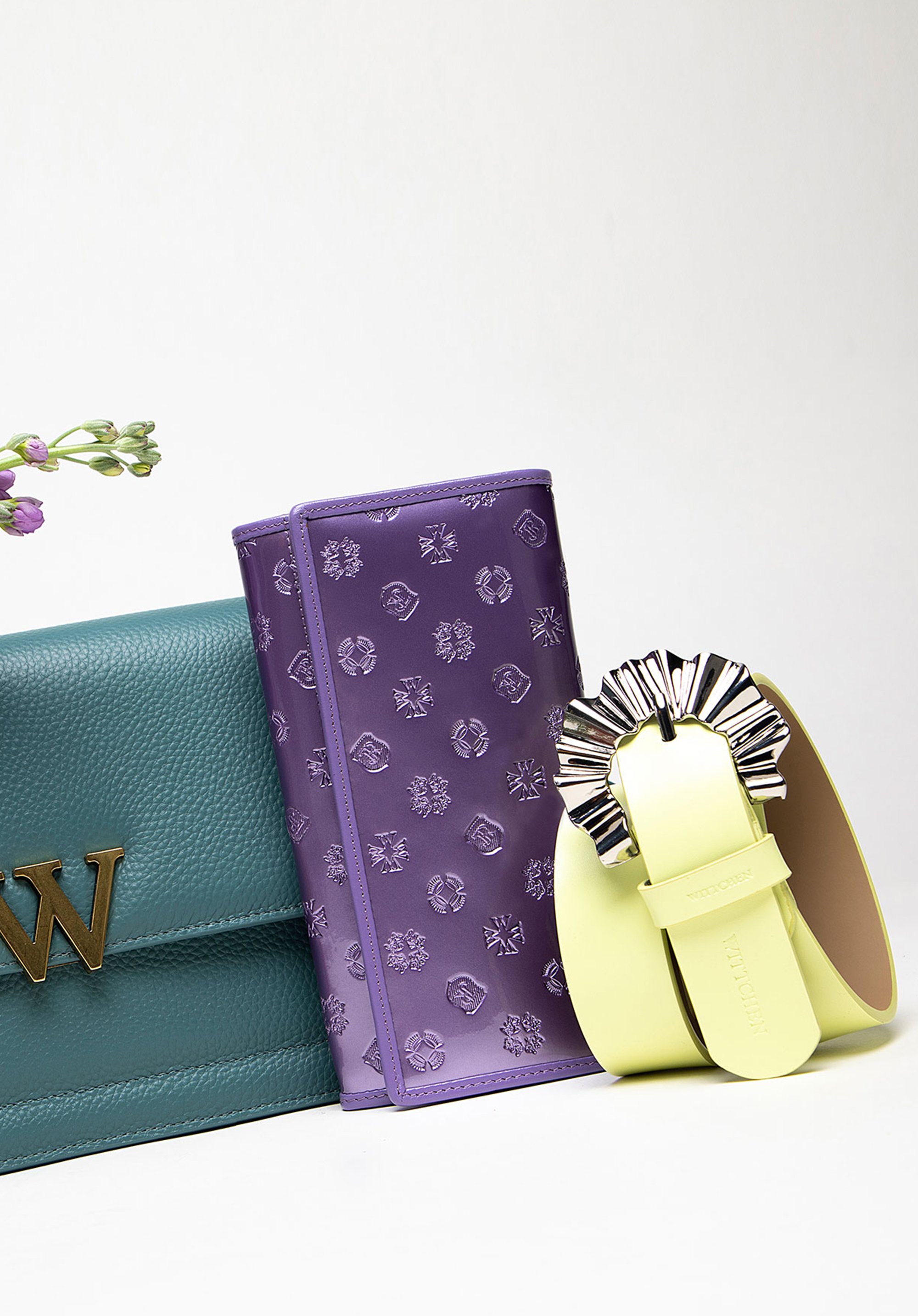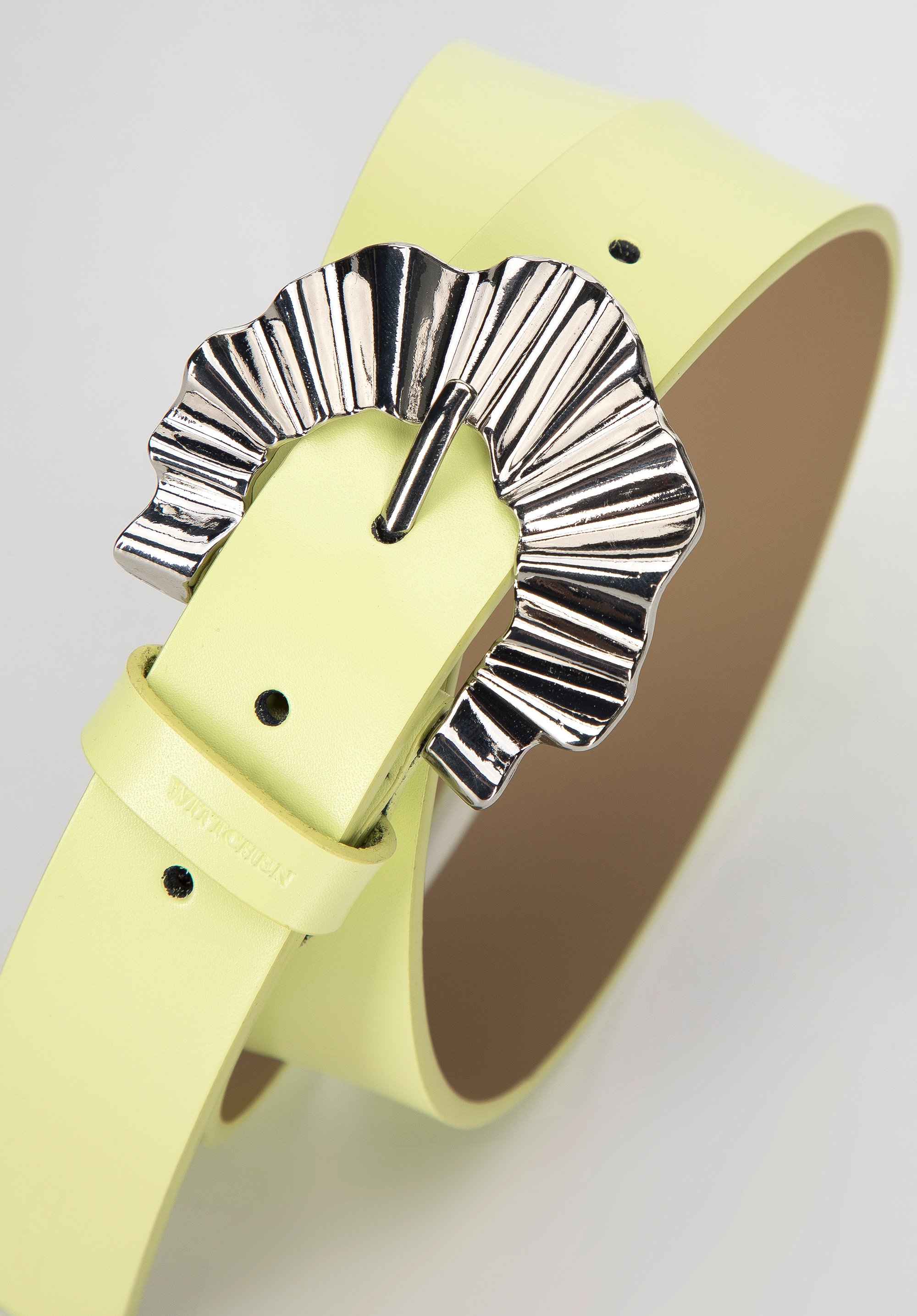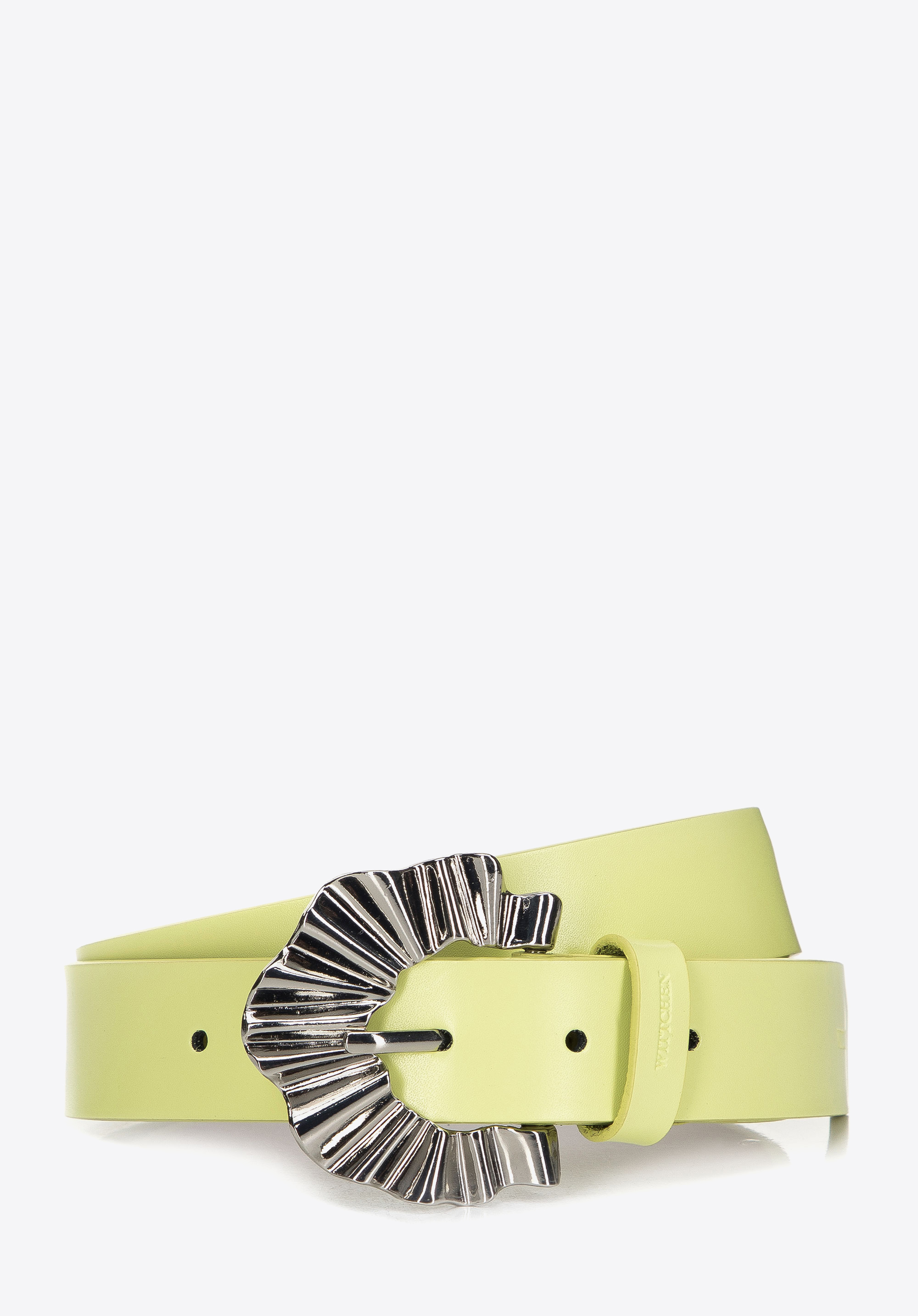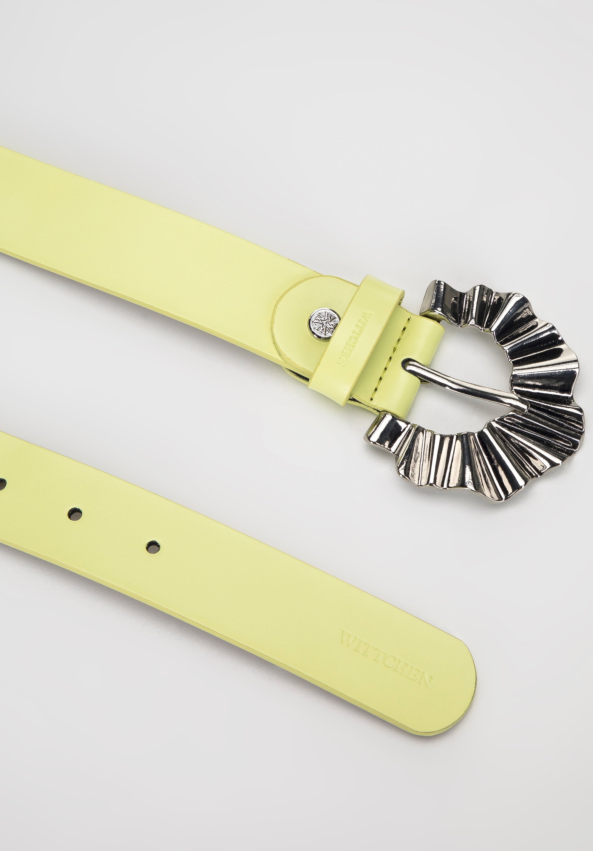 Damski pasek ze skóry z ozdobną klamrą limonkowy