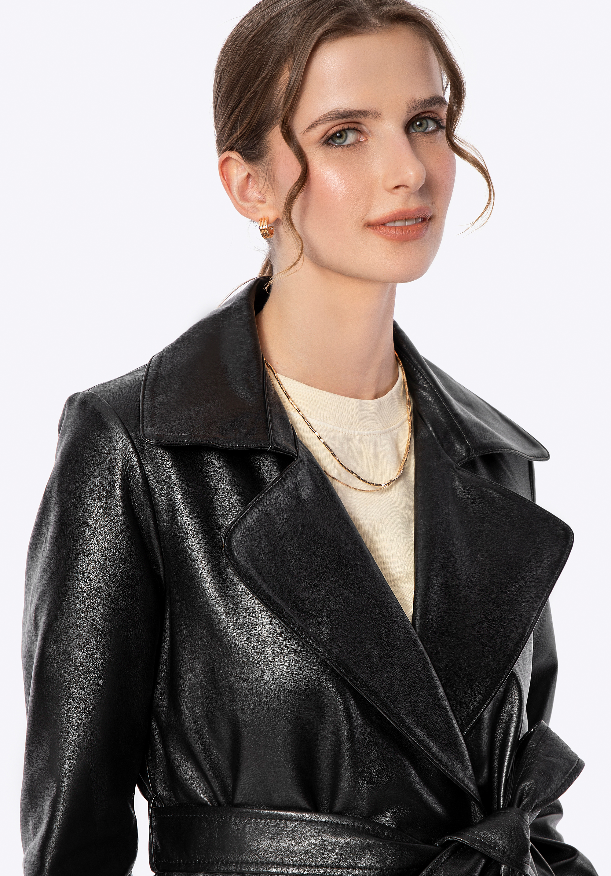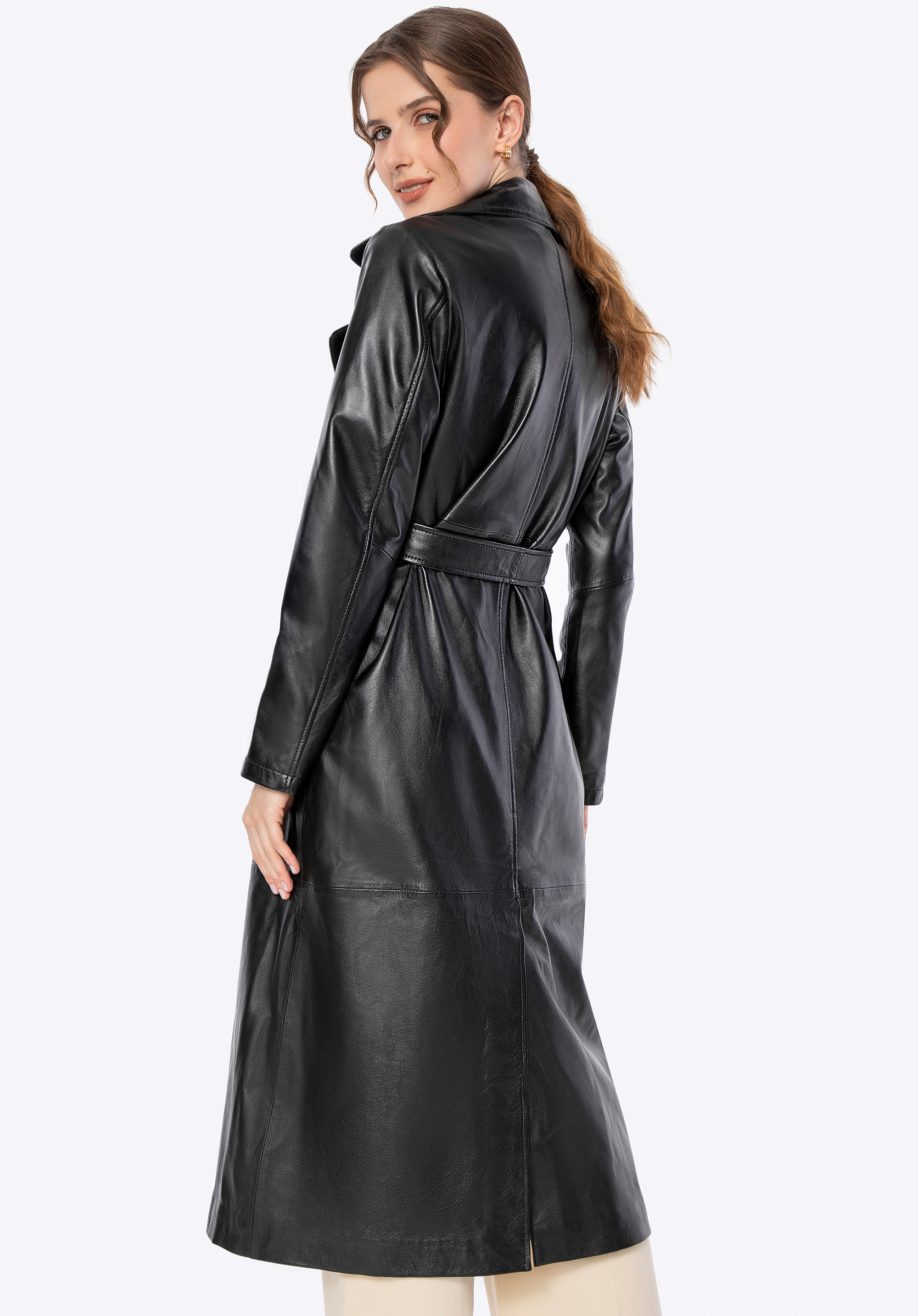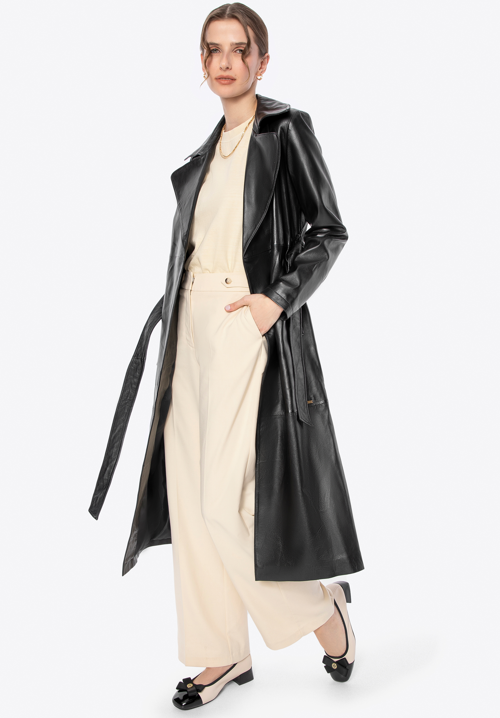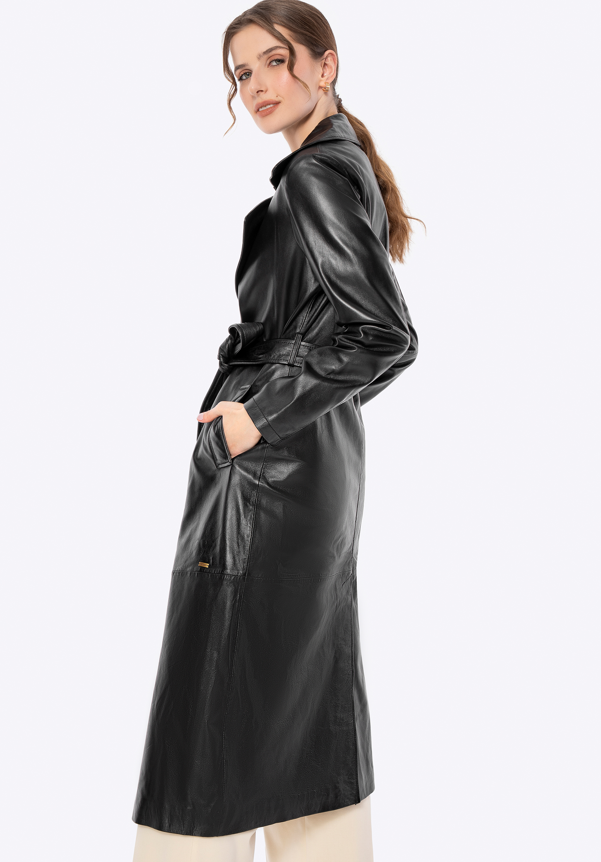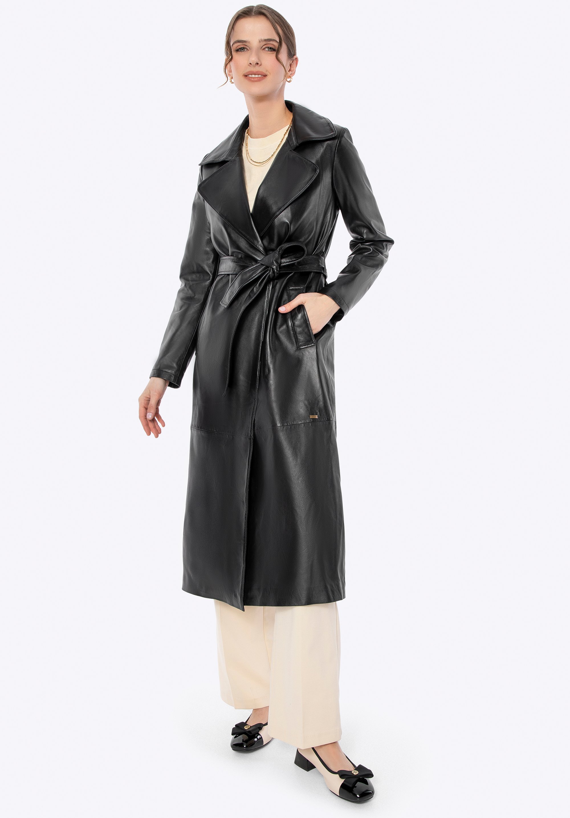 Zaprojektowany z myślą o kobiecie, która ceni subtelną elegancję i ponadczasowy styl, ten płaszcz z naturalnej skóry owczej to kwintesencja klasyki, wzbogacona o nowoczesne akcenty. Jego klasyczny krój subtelnie podkreśla sylwetkę, a pasek w talii daje Ci pełną kontrolę nad dopasowaniem, zapewniając maksymalny komfort. Delikatne metalowe logo na boku i praktyczne, pionowe kieszenie nadają mu niepowtarzalnego charakteru, a kołnierz rewers sprawia, że ten płaszcz jest zawsze na czasie.