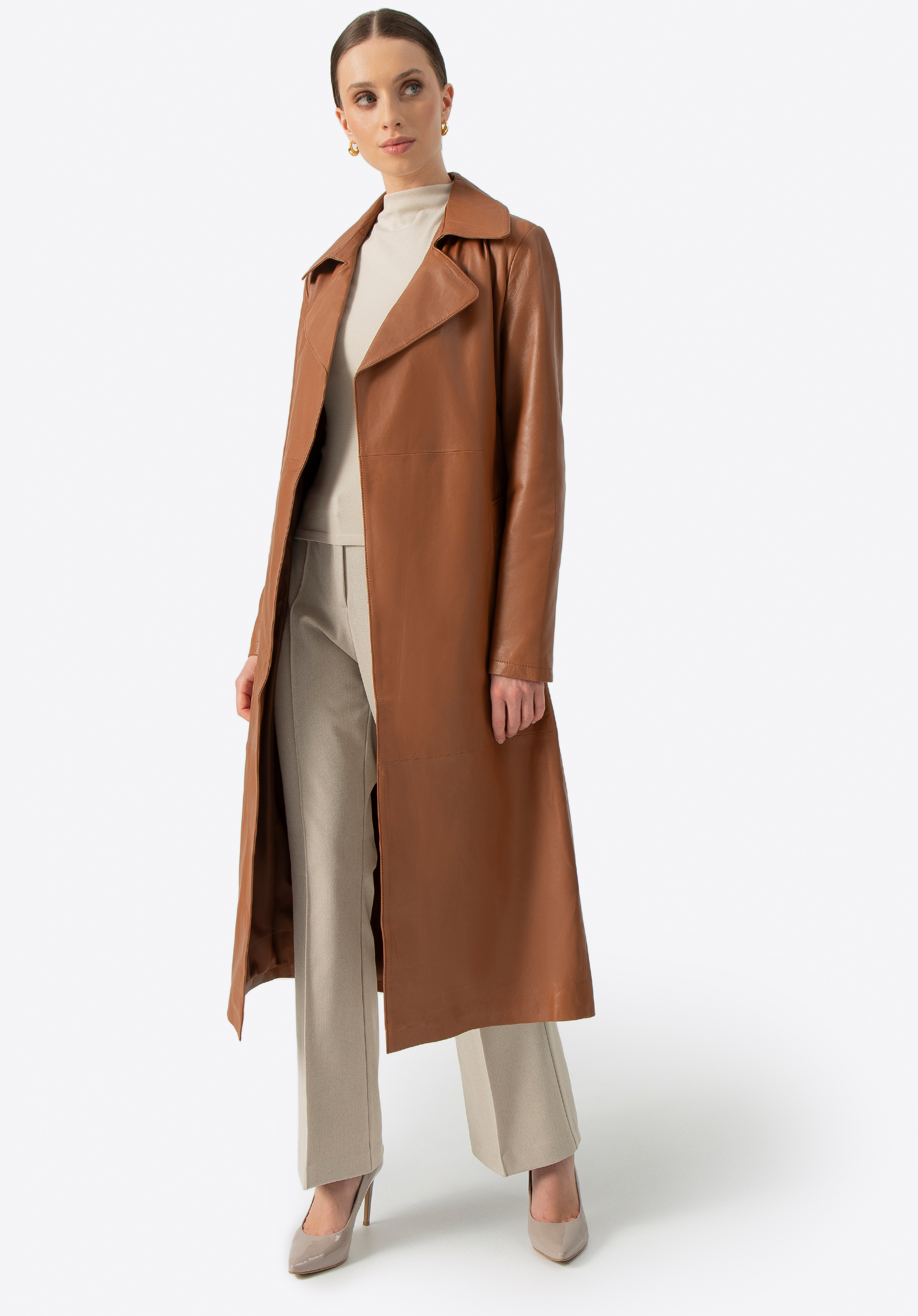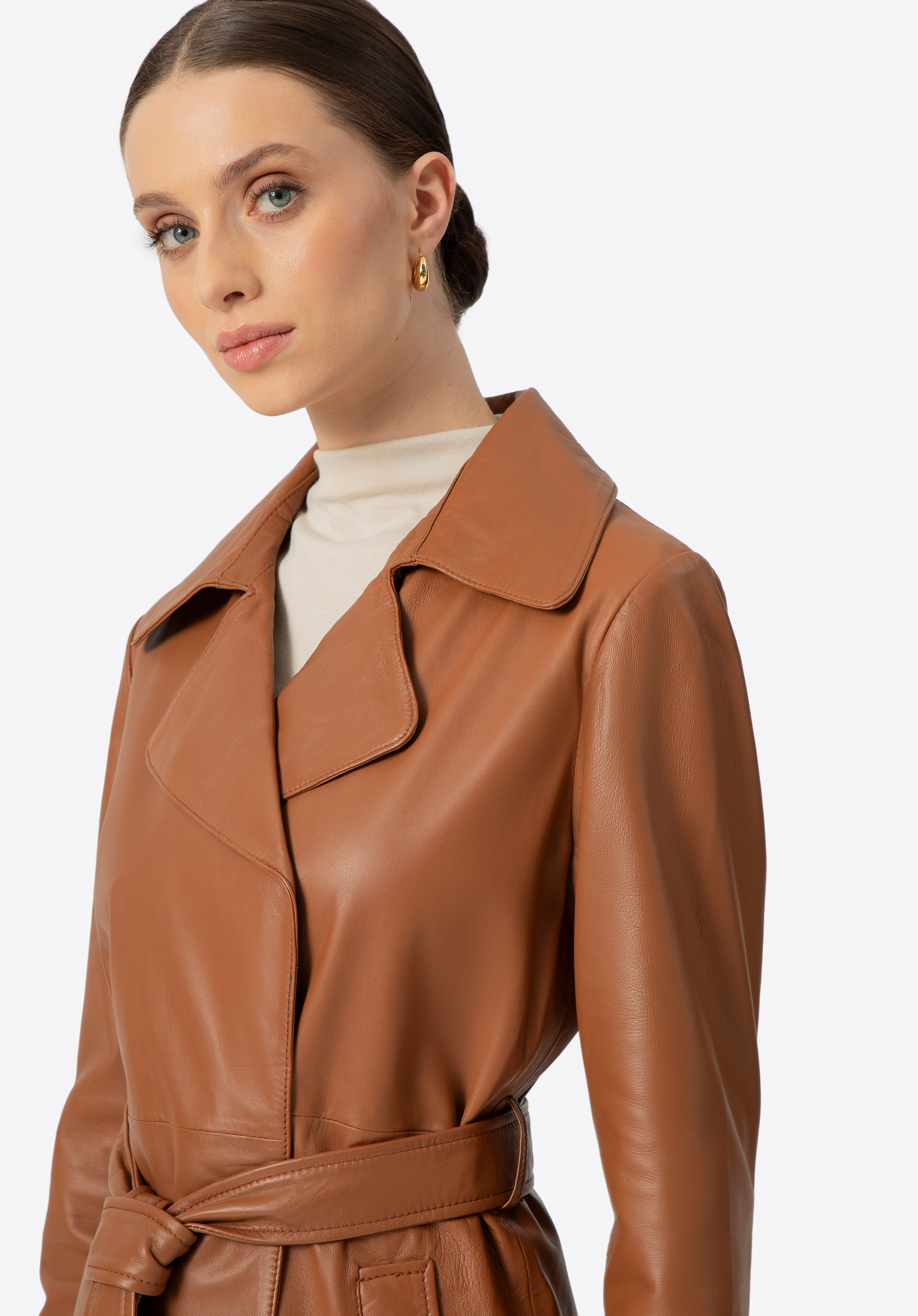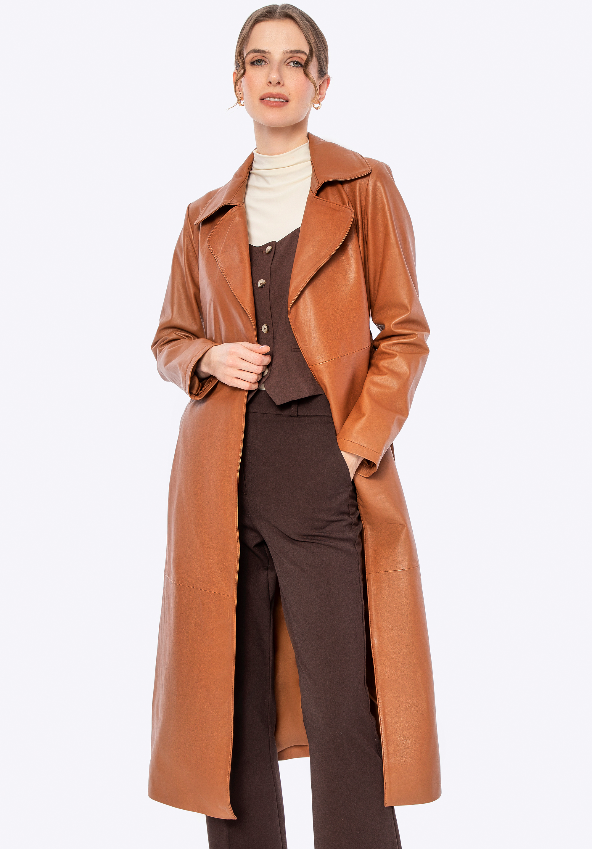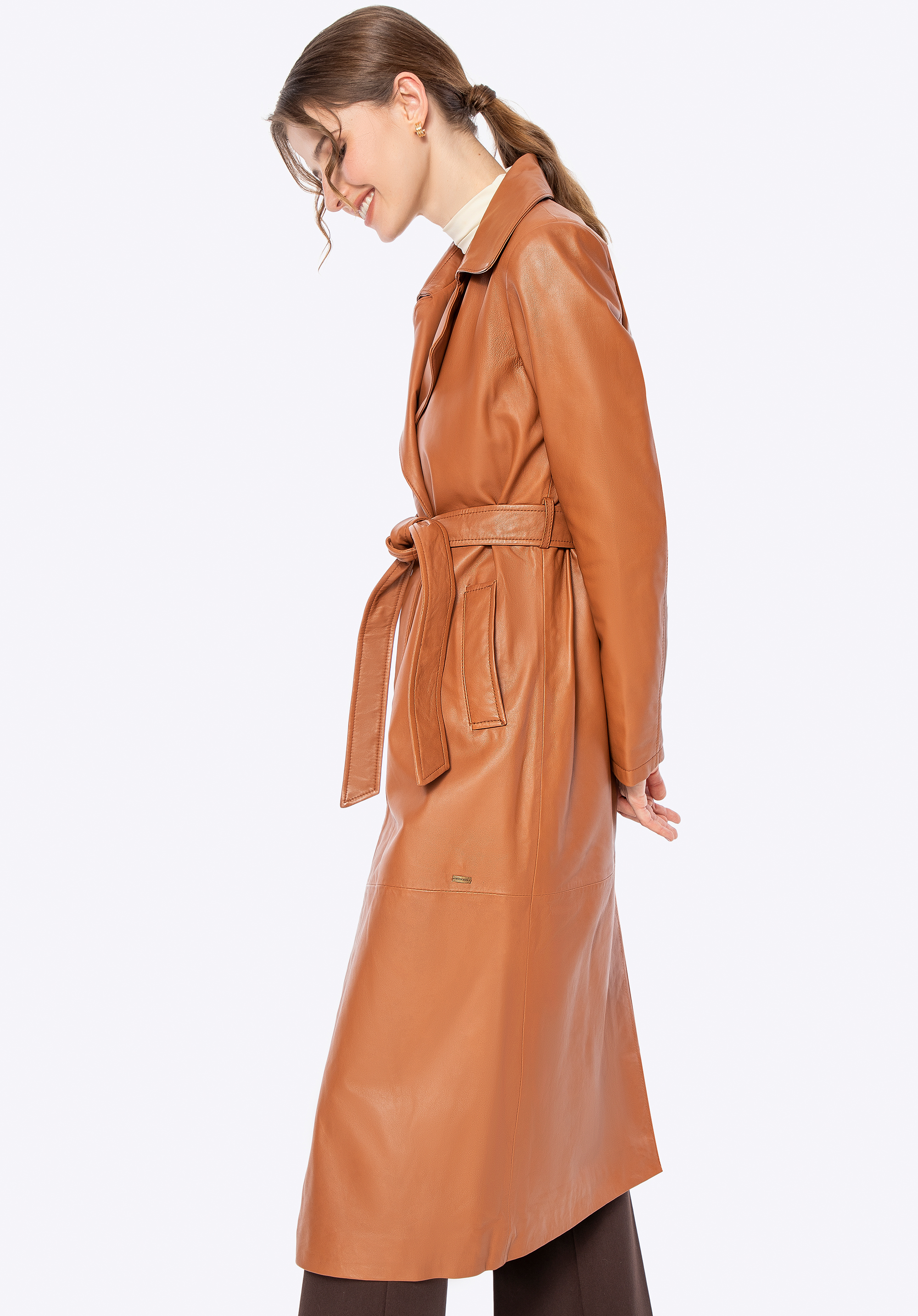 Zaprojektowany z myślą o kobiecie, która ceni subtelną elegancję i ponadczasowy styl, ten płaszcz z naturalnej skóry owczej to kwintesencja klasyki, wzbogacona o nowoczesne akcenty. Jego klasyczny krój subtelnie podkreśla sylwetkę, a pasek w talii daje Ci pełną kontrolę nad dopasowaniem, zapewniając maksymalny komfort. Delikatne metalowe logo na boku i praktyczne, pionowe kieszenie nadają mu niepowtarzalnego charakteru, a kołnierz rewers sprawia, że ten płaszcz jest zawsze na czasie.