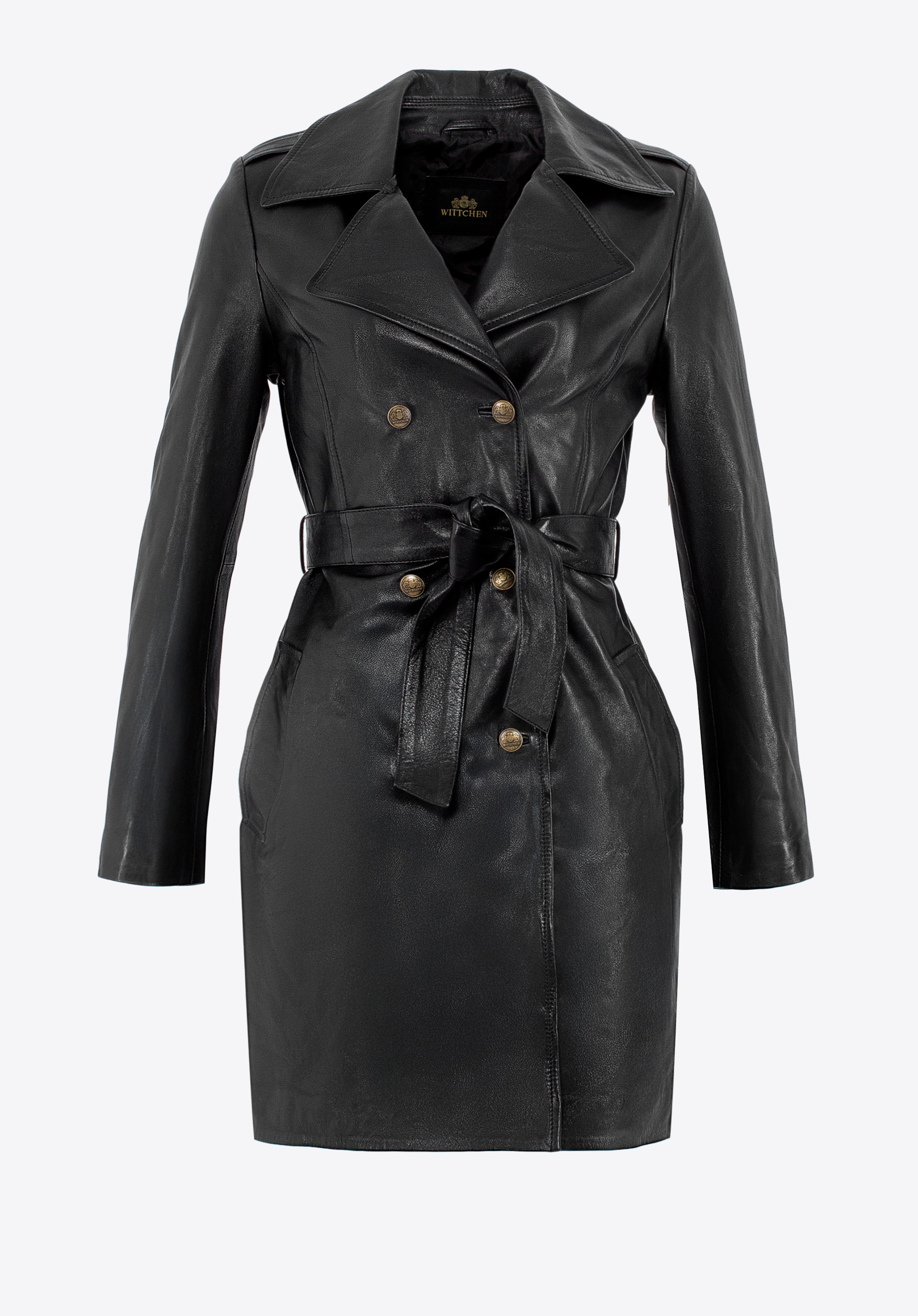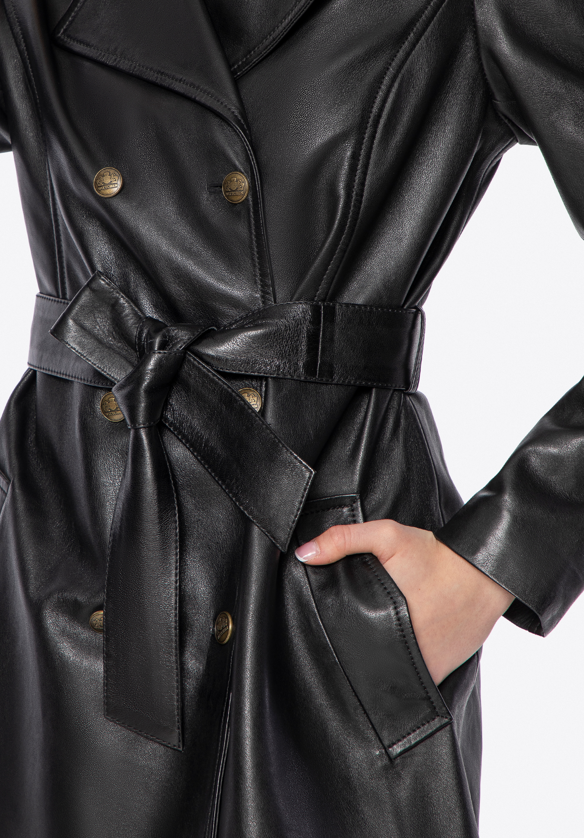 Kiedy klasyka spotyka się z nowoczesnym charakterem, powstaje projekt, obok którego nie można przejść obojętnie. Ten wyjątkowy płaszcz z naturalnej skóry owczej to połączenie ponadczasowej elegancji i wyrazistego designu. Logowane guziki podkreślają ekskluzywność modelu, a kołnierz rewers nadaje całości szyku. Taliowany krój i pasek do wiązania w talii pięknie modelują sylwetkę, podkreślając kobiece kształty.
