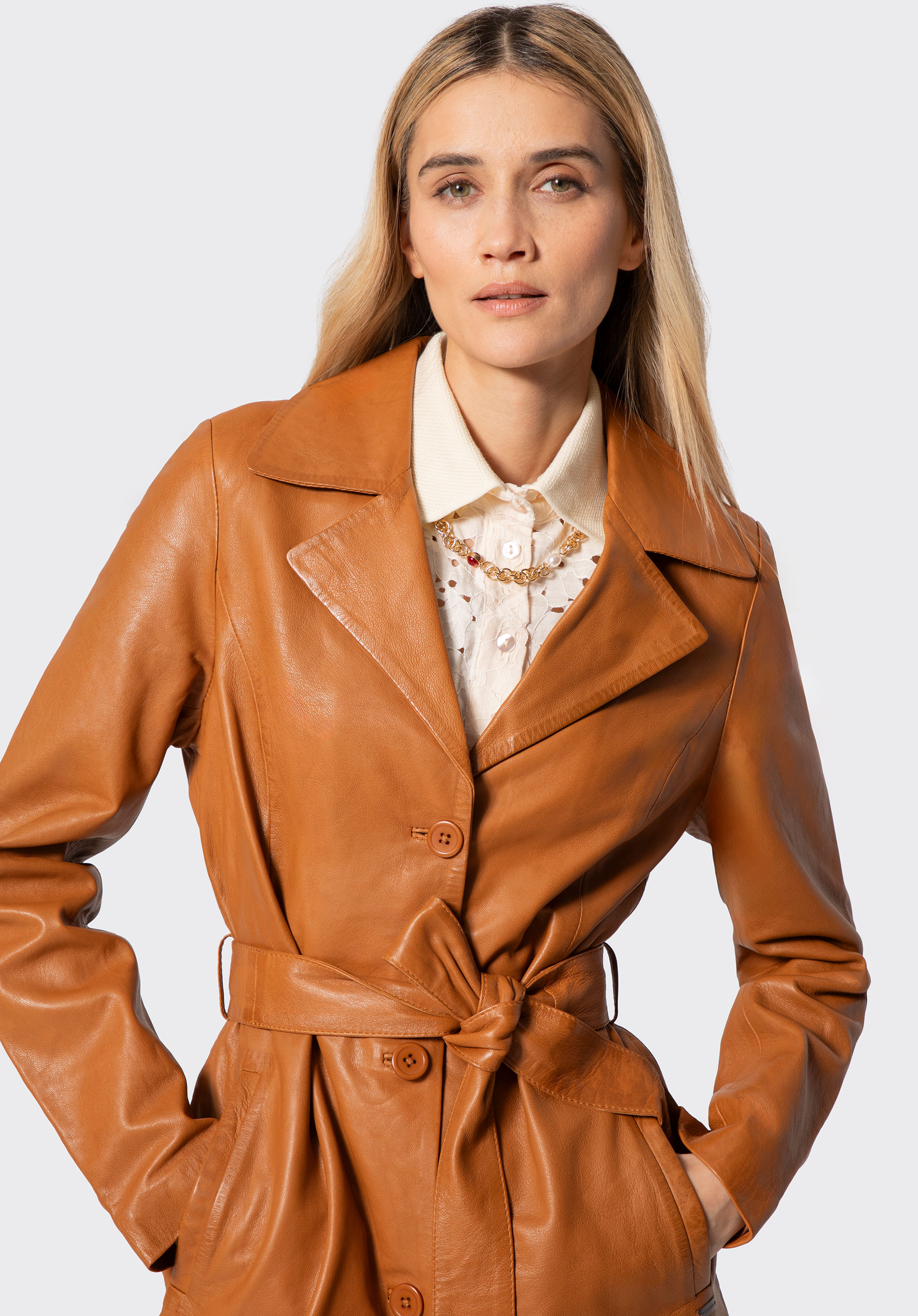 - Pasek w talii: Umożliwia dopasowanie płaszcza do sylwetki, podkreślając jej kobiecy kształt.