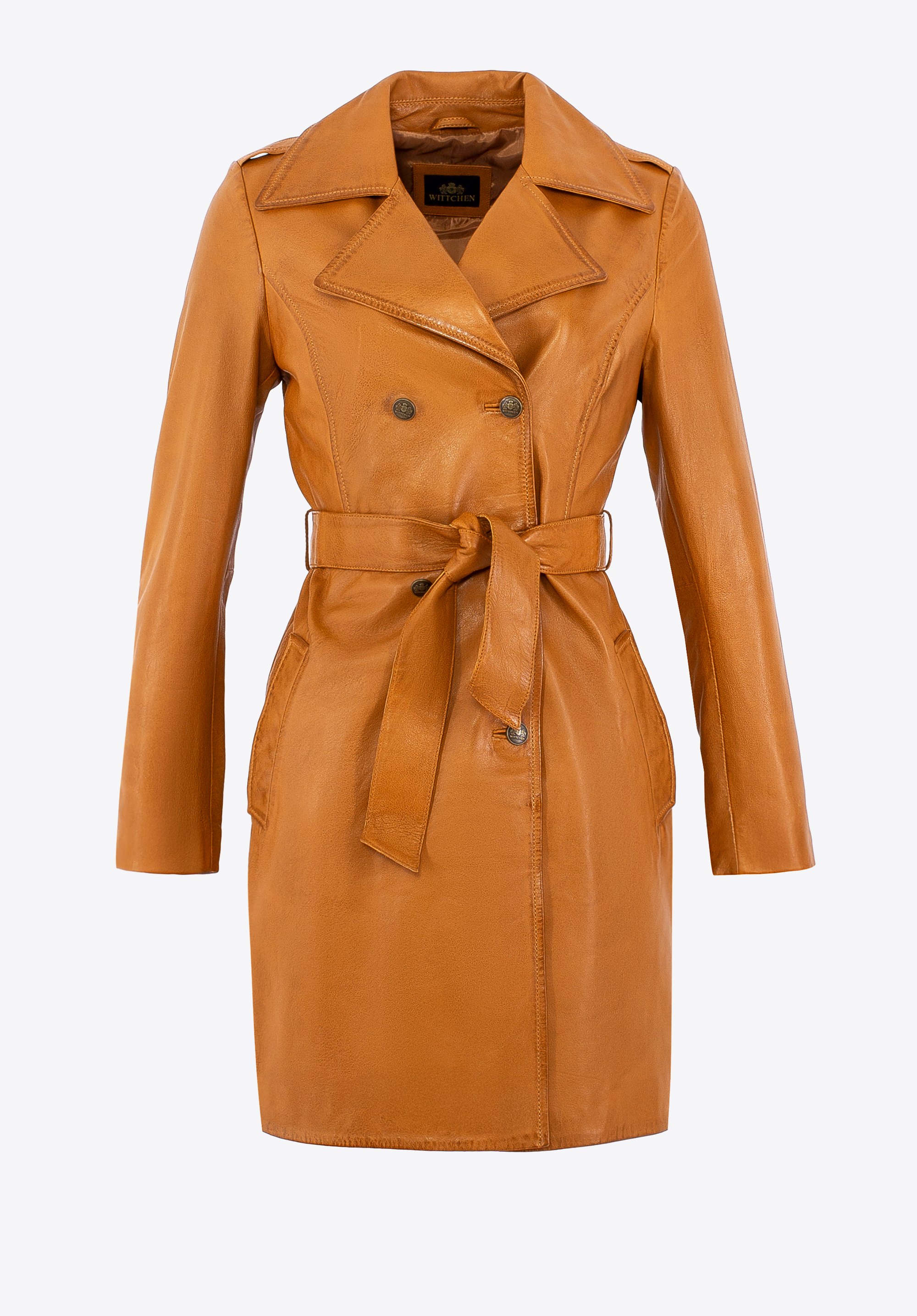 Kiedy klasyka spotyka się z nowoczesnym charakterem, powstaje projekt, obok którego nie można przejść obojętnie. Ten wyjątkowy płaszcz z naturalnej skóry owczej to połączenie ponadczasowej elegancji i wyrazistego designu. Logowane guziki podkreślają ekskluzywność modelu, a kołnierz rewers nadaje całości szyku. Taliowany krój i pasek do wiązania w talii pięknie modelują sylwetkę, podkreślając kobiece kształty.