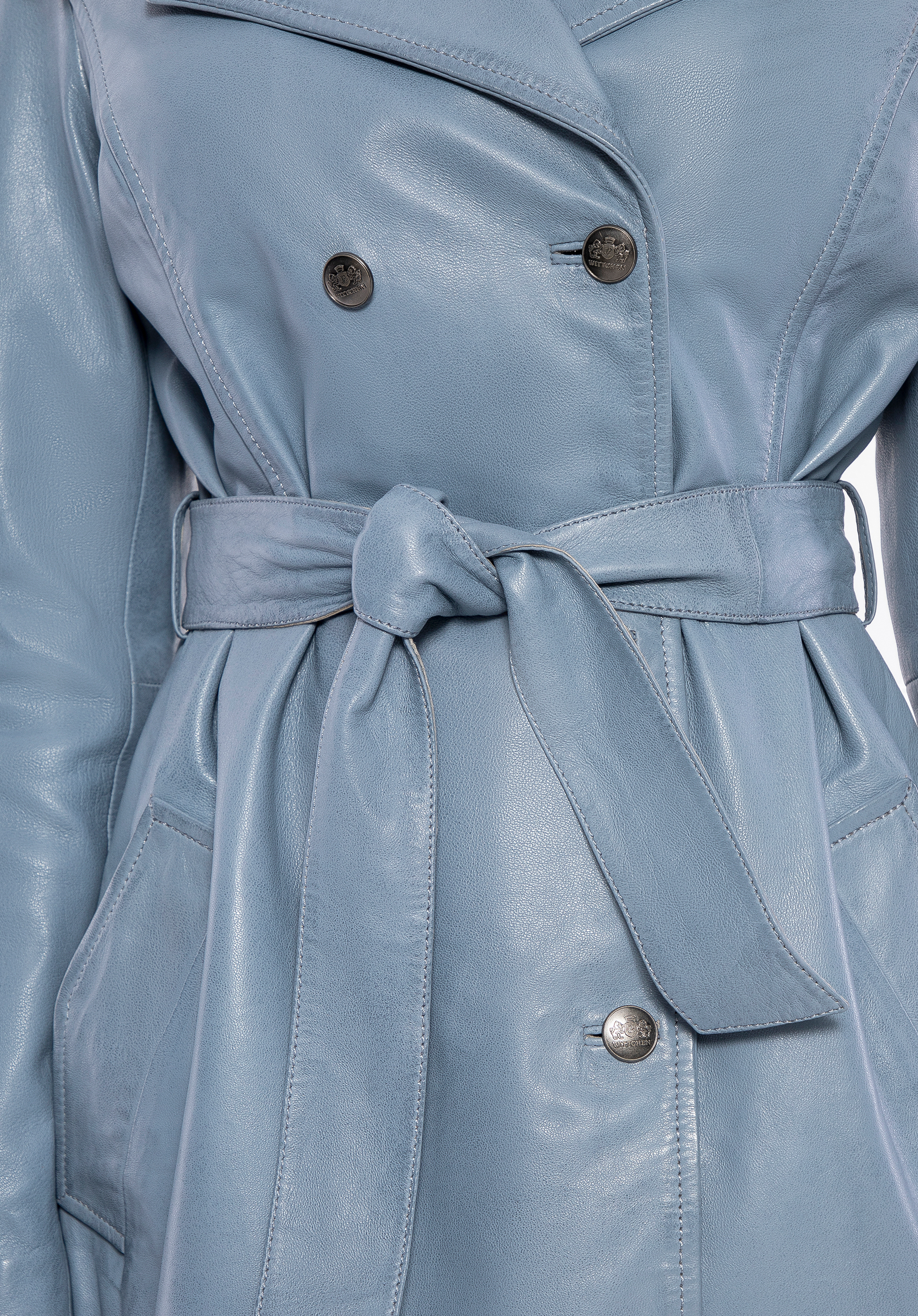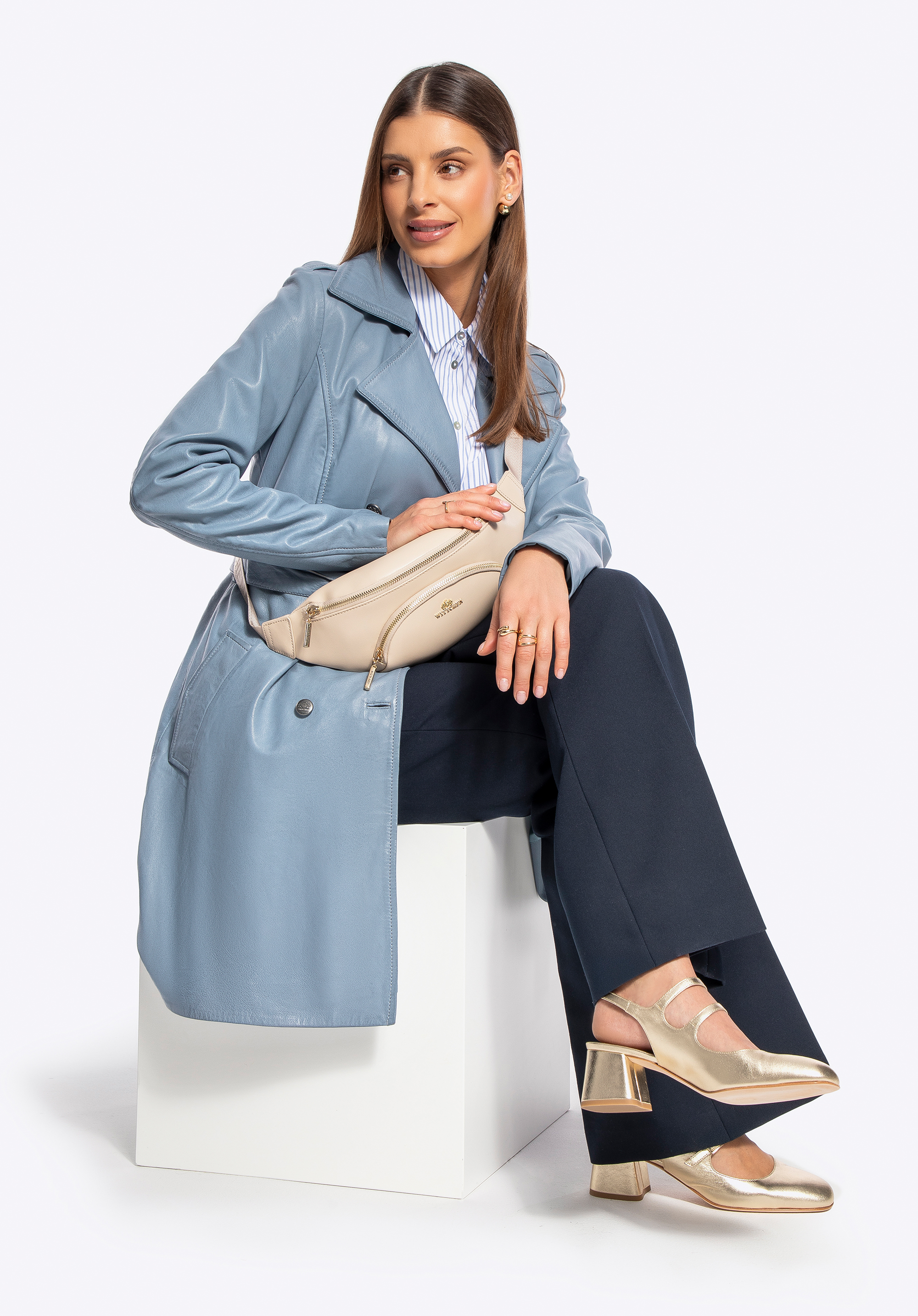 Kiedy klasyka spotyka się z nowoczesnym charakterem, powstaje projekt, obok którego nie można przejść obojętnie. Ten wyjątkowy płaszcz z naturalnej skóry owczej to połączenie ponadczasowej elegancji i wyrazistego designu. Logowane guziki podkreślają ekskluzywność modelu, a kołnierz rewers nadaje całości szyku. Taliowany krój i pasek do wiązania w talii pięknie modelują sylwetkę, podkreślając kobiece kształty.