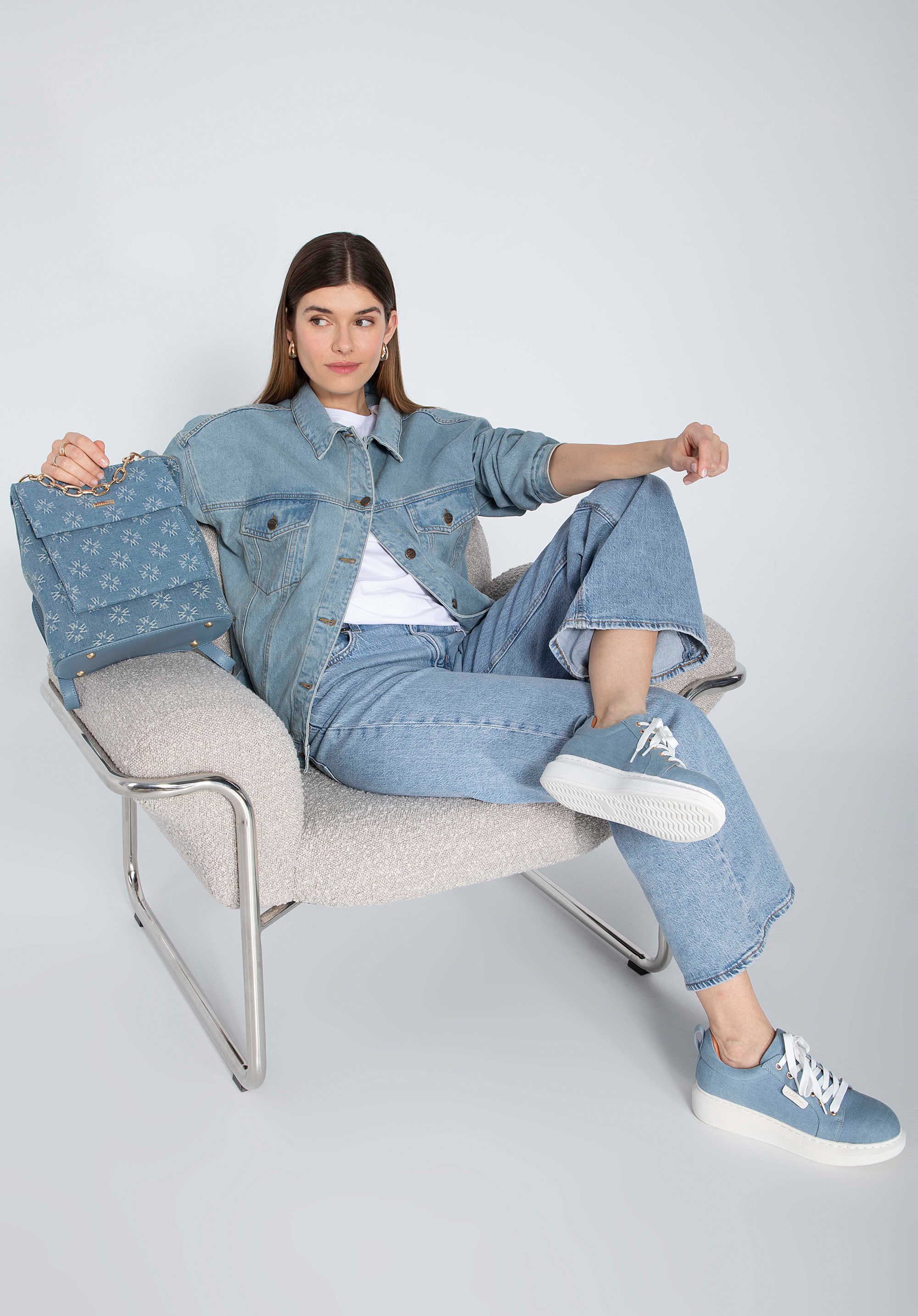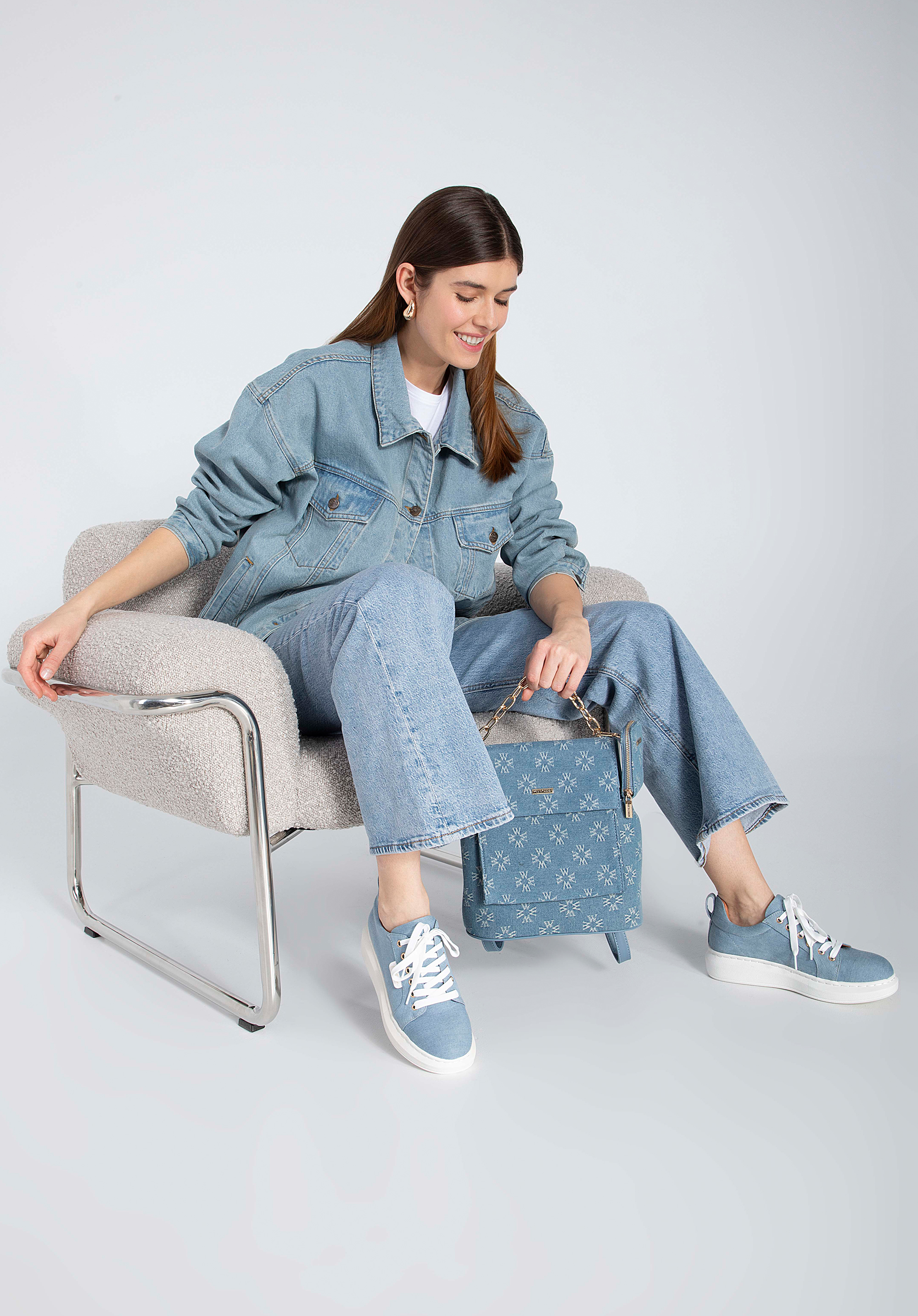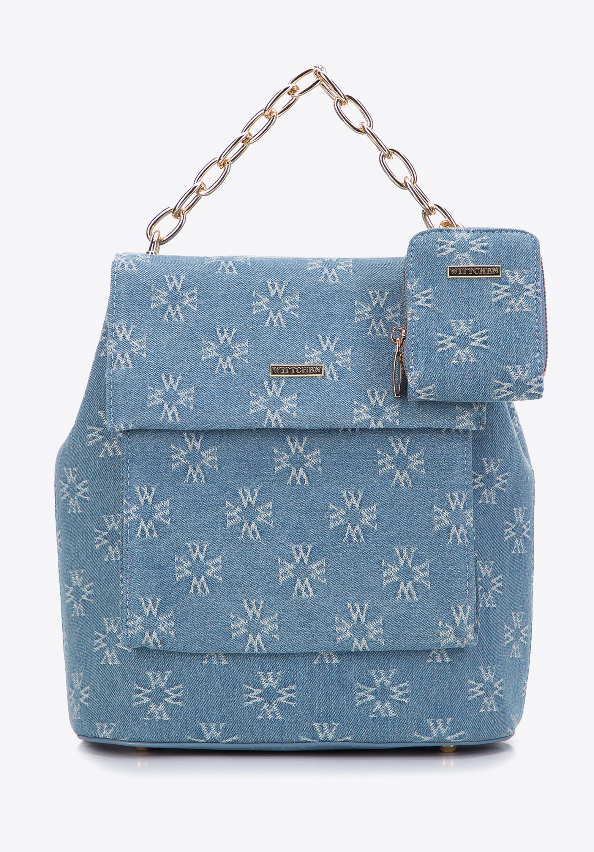 przyjemnym w dotyku dżinsem zdobionym monogramem WITTCHEN.