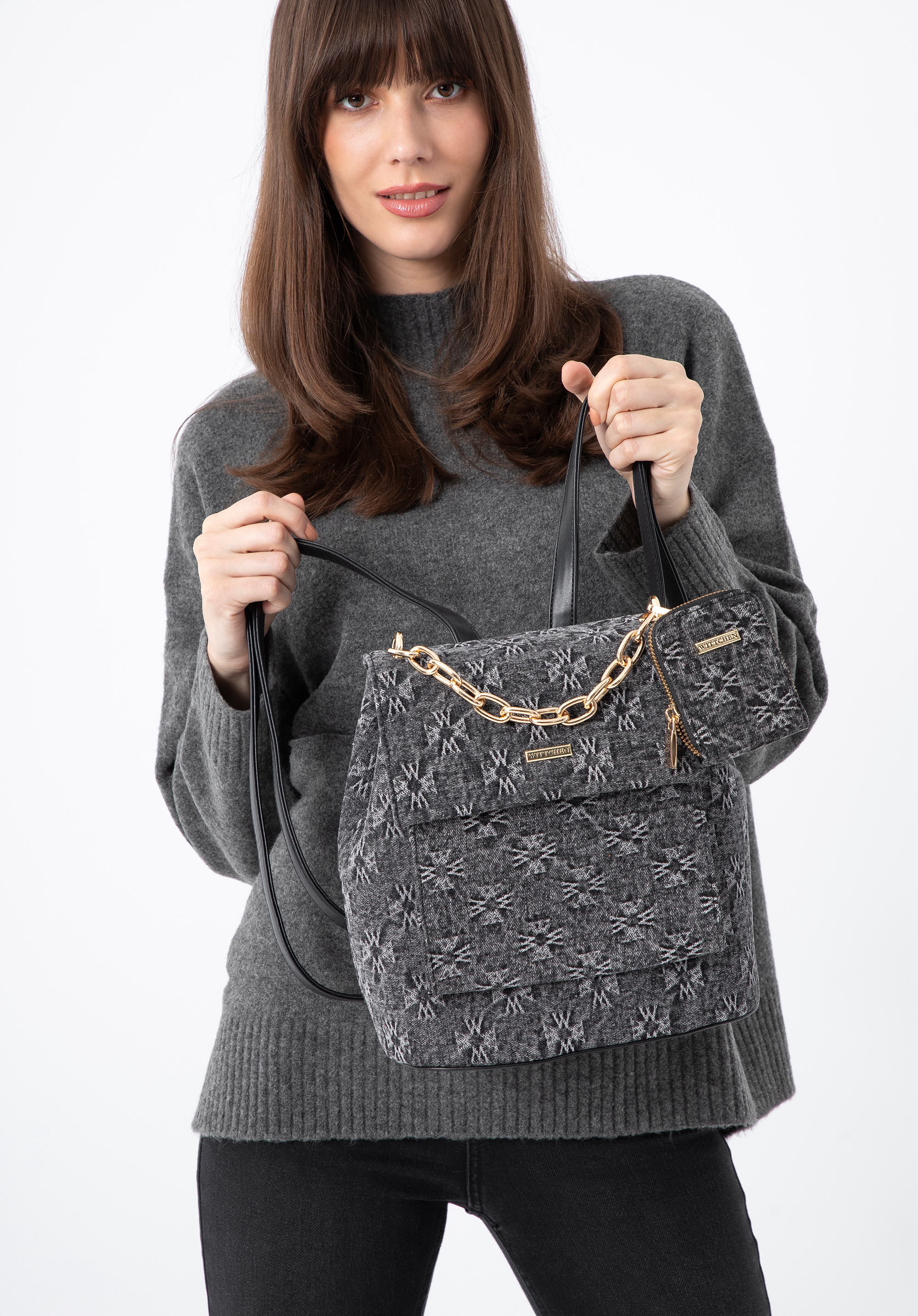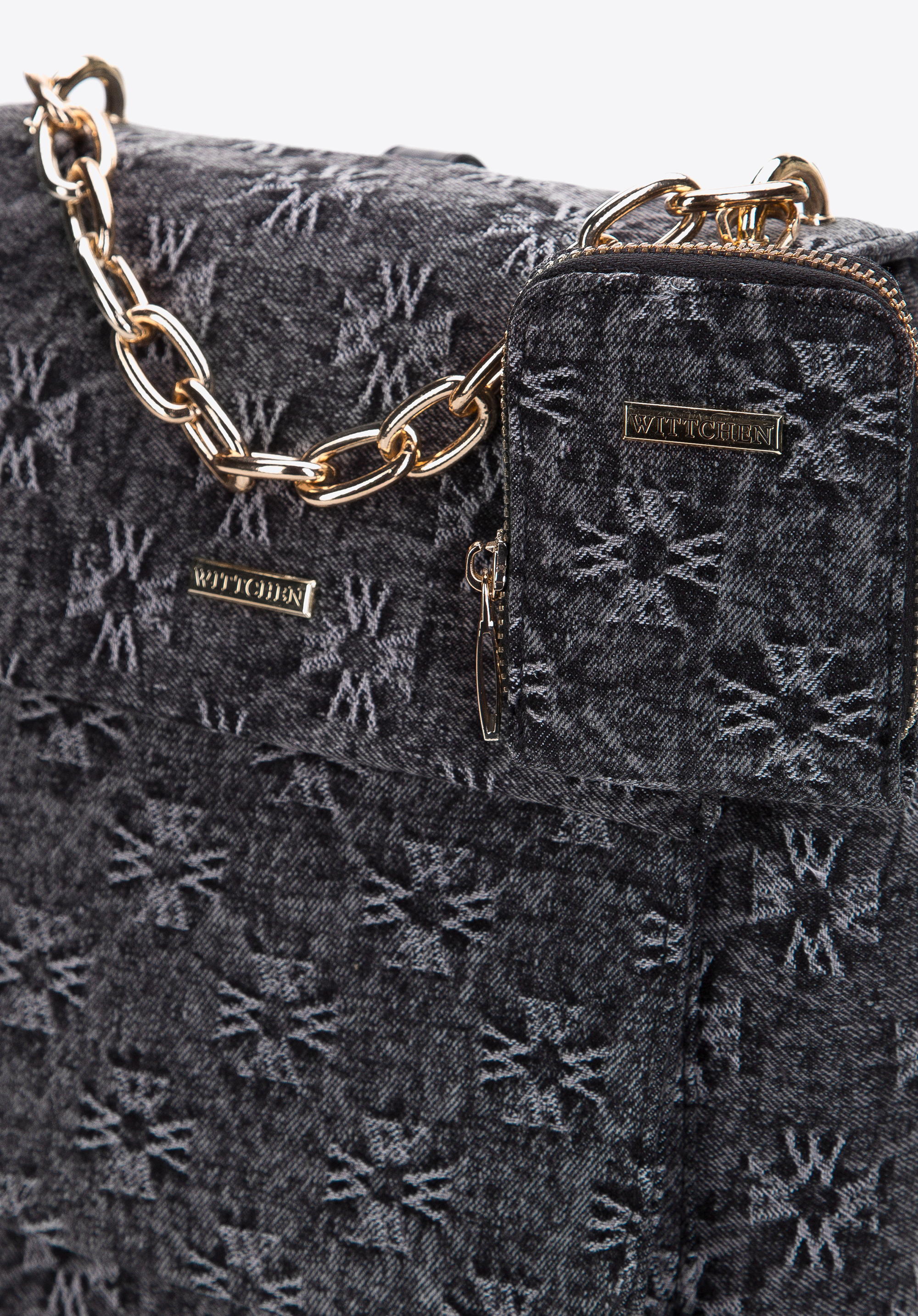 przyjemnym w dotyku dżinsem zdobionym monogramem WITTCHEN.