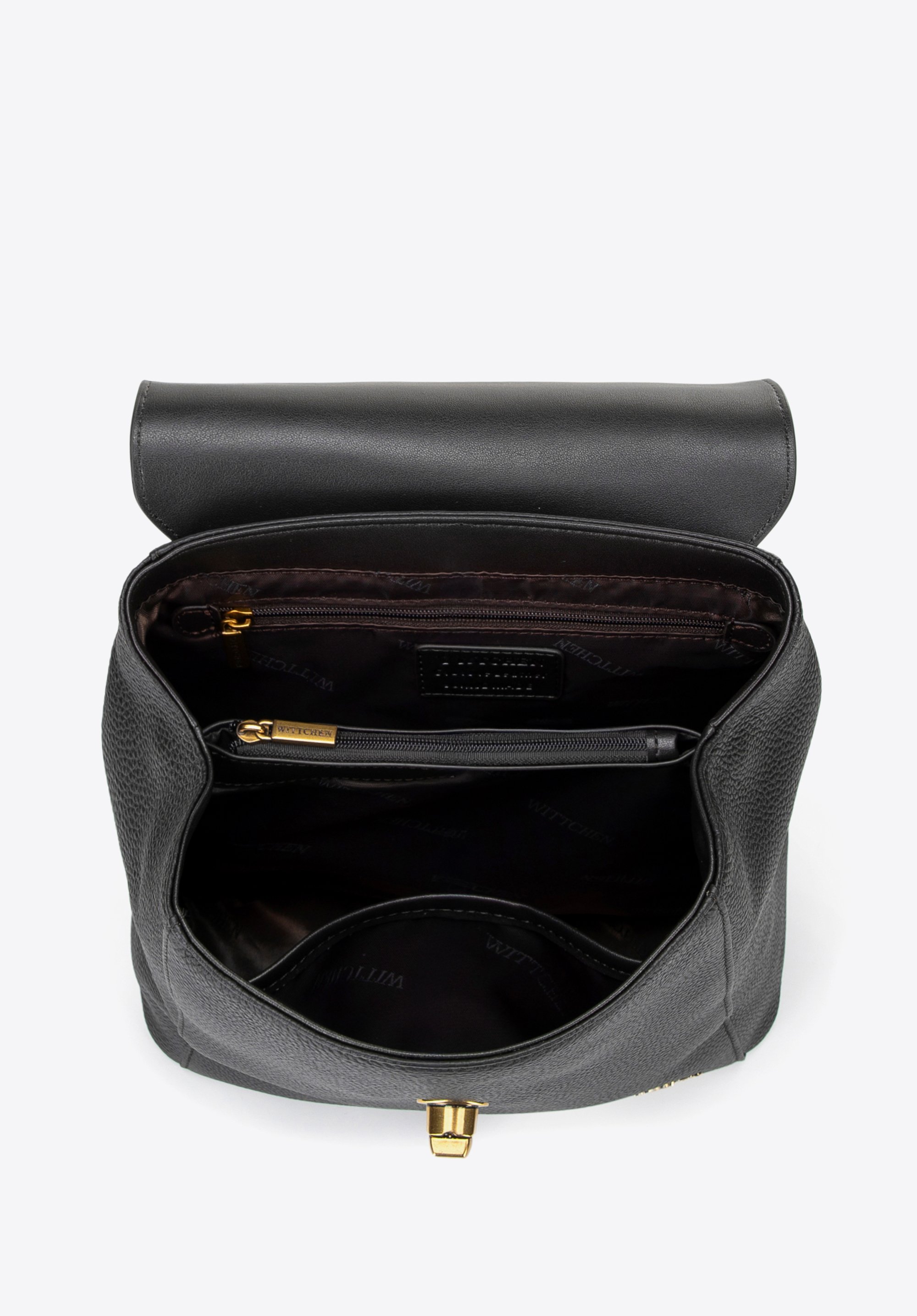 Damski plecak skórzany z prostokątną klapą czarny