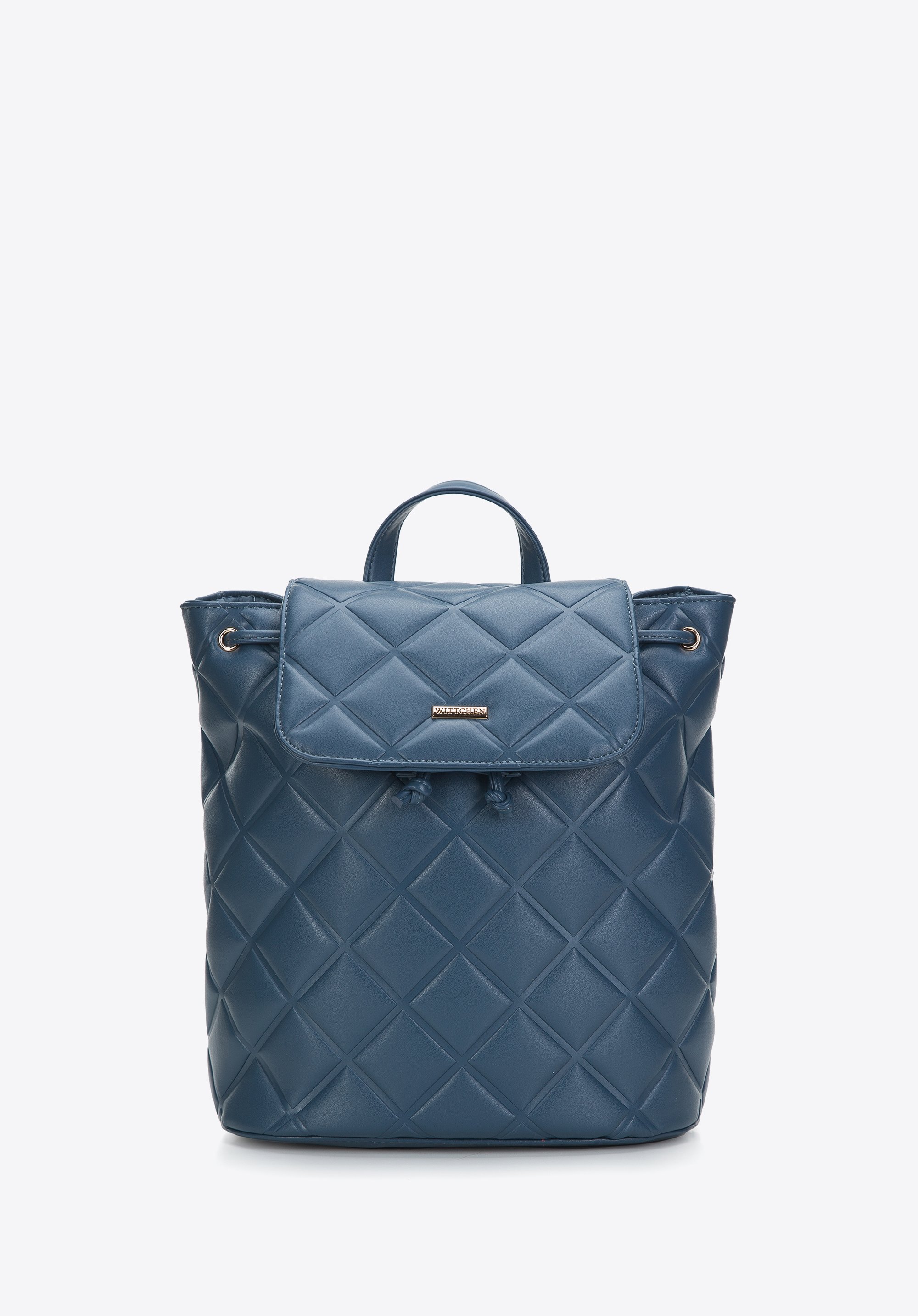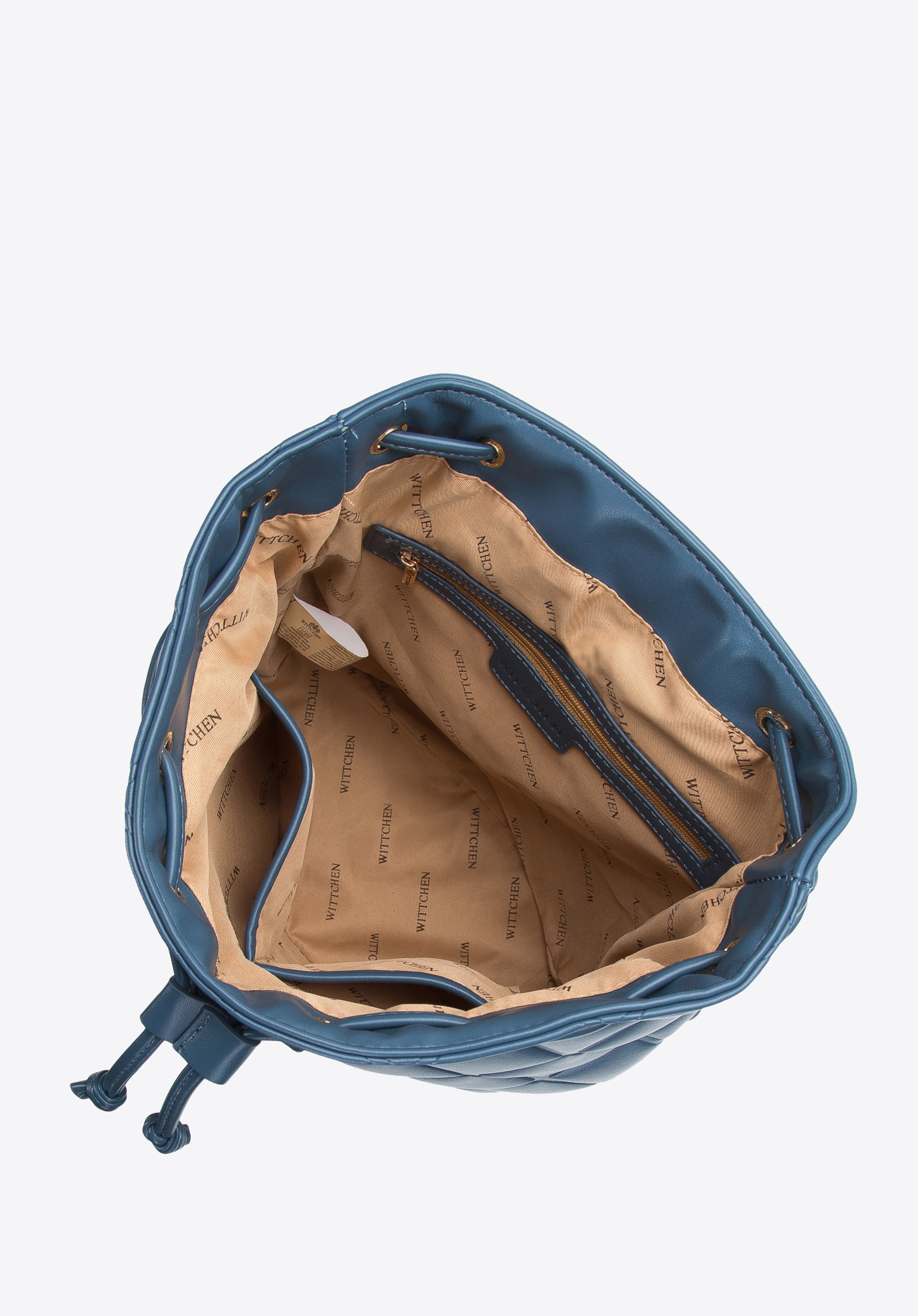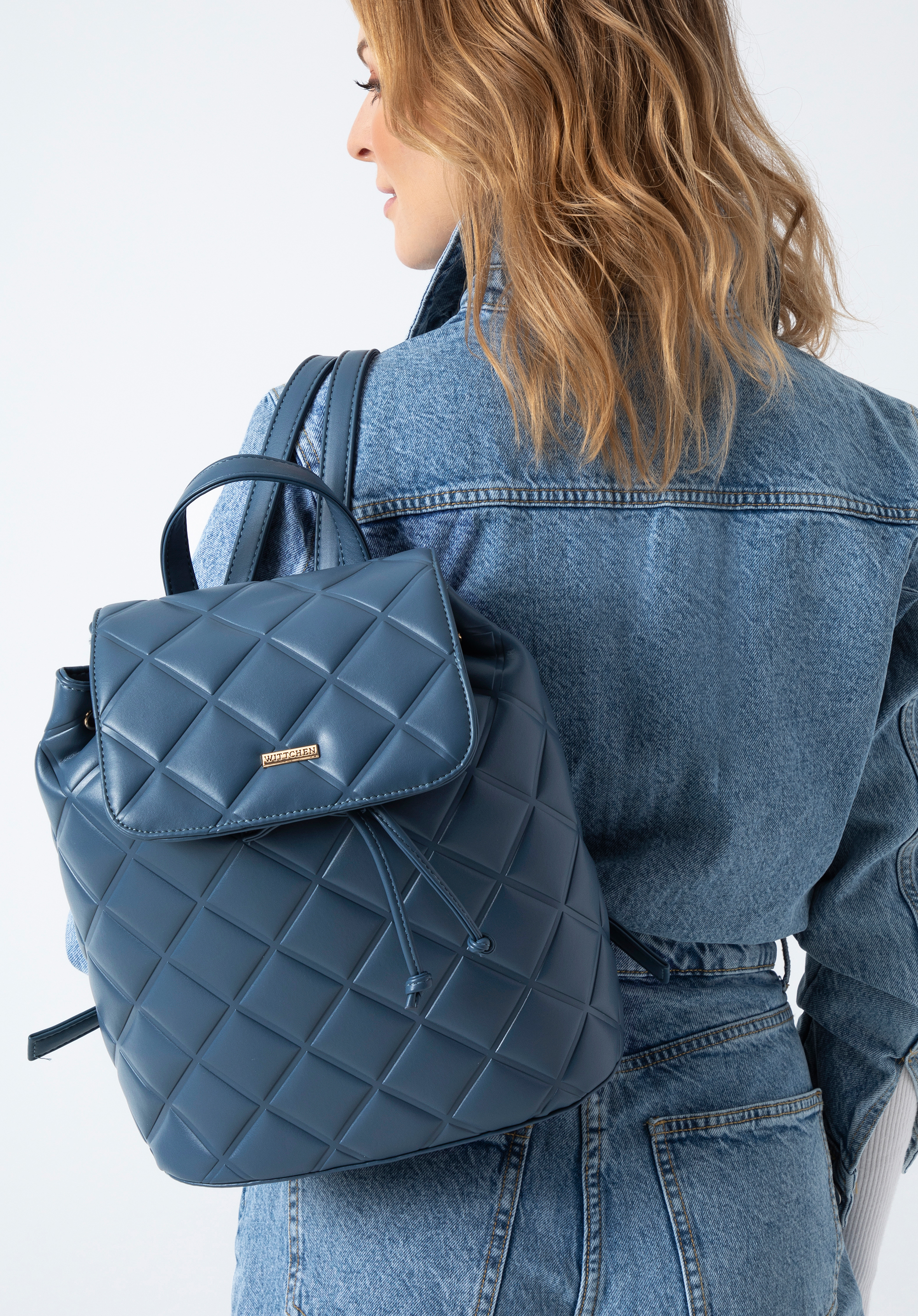 Damski plecak worek z geometrycznie pikowanej ekoskóry warto mieć w swojej szafie na wiele sezonów.