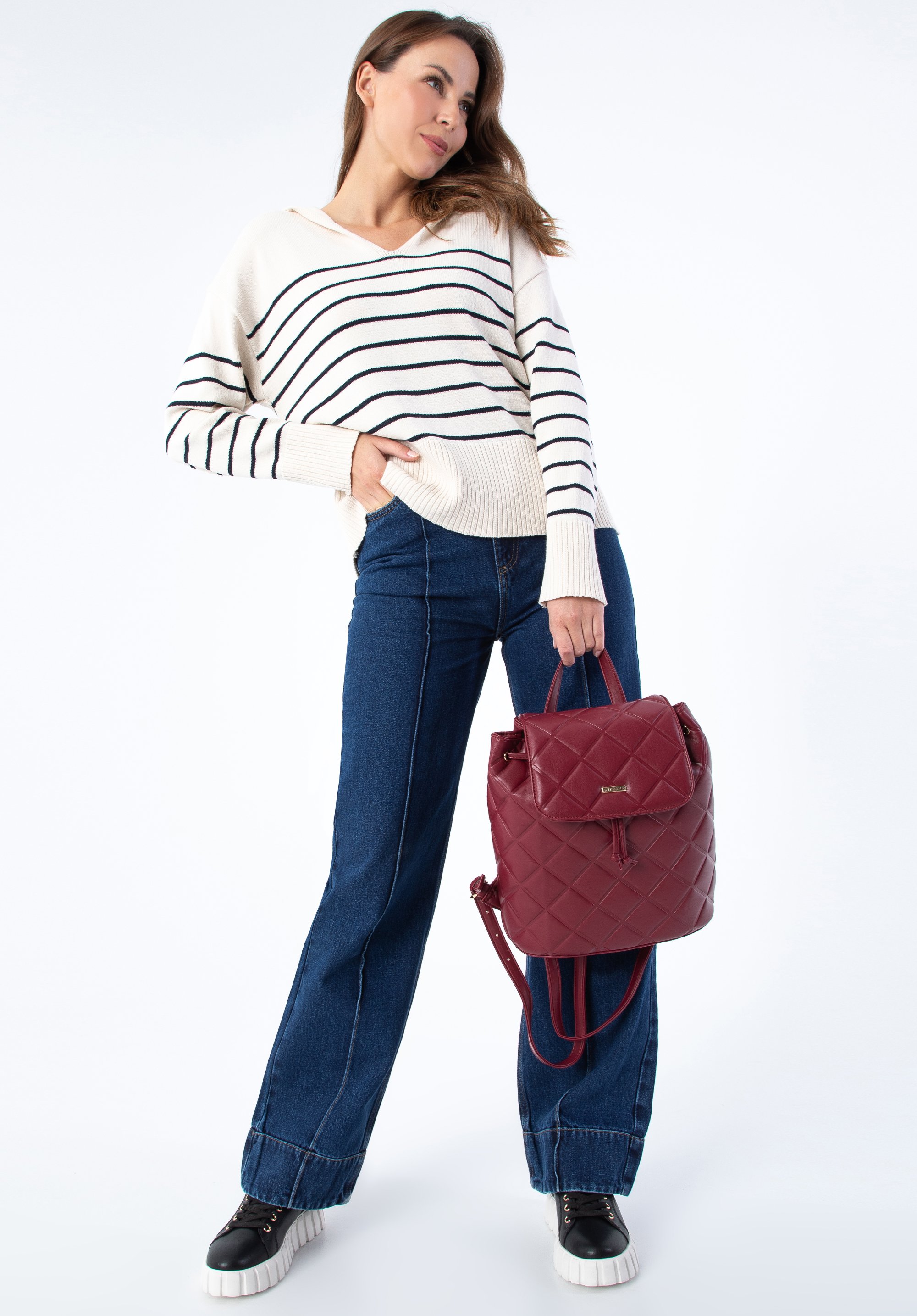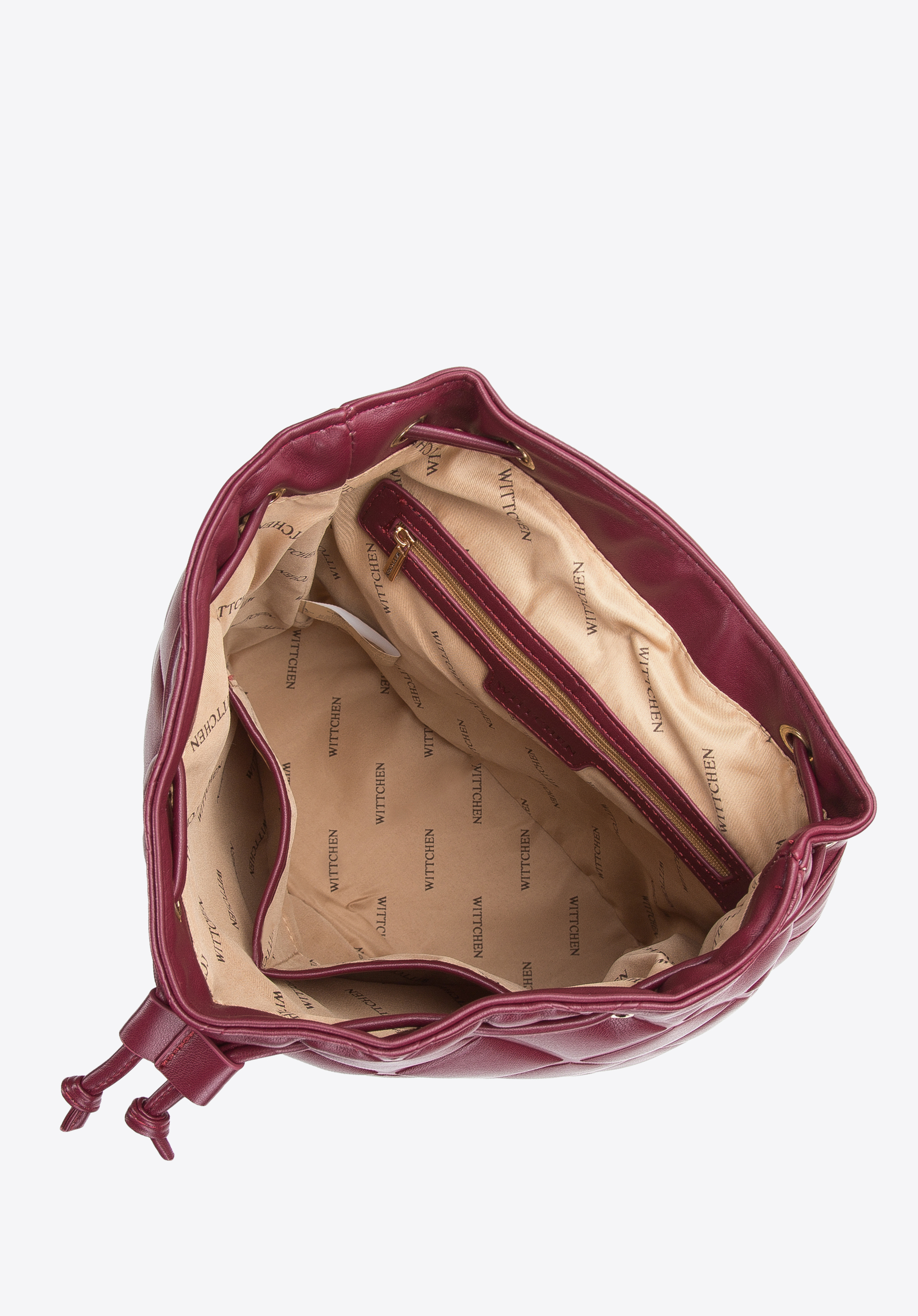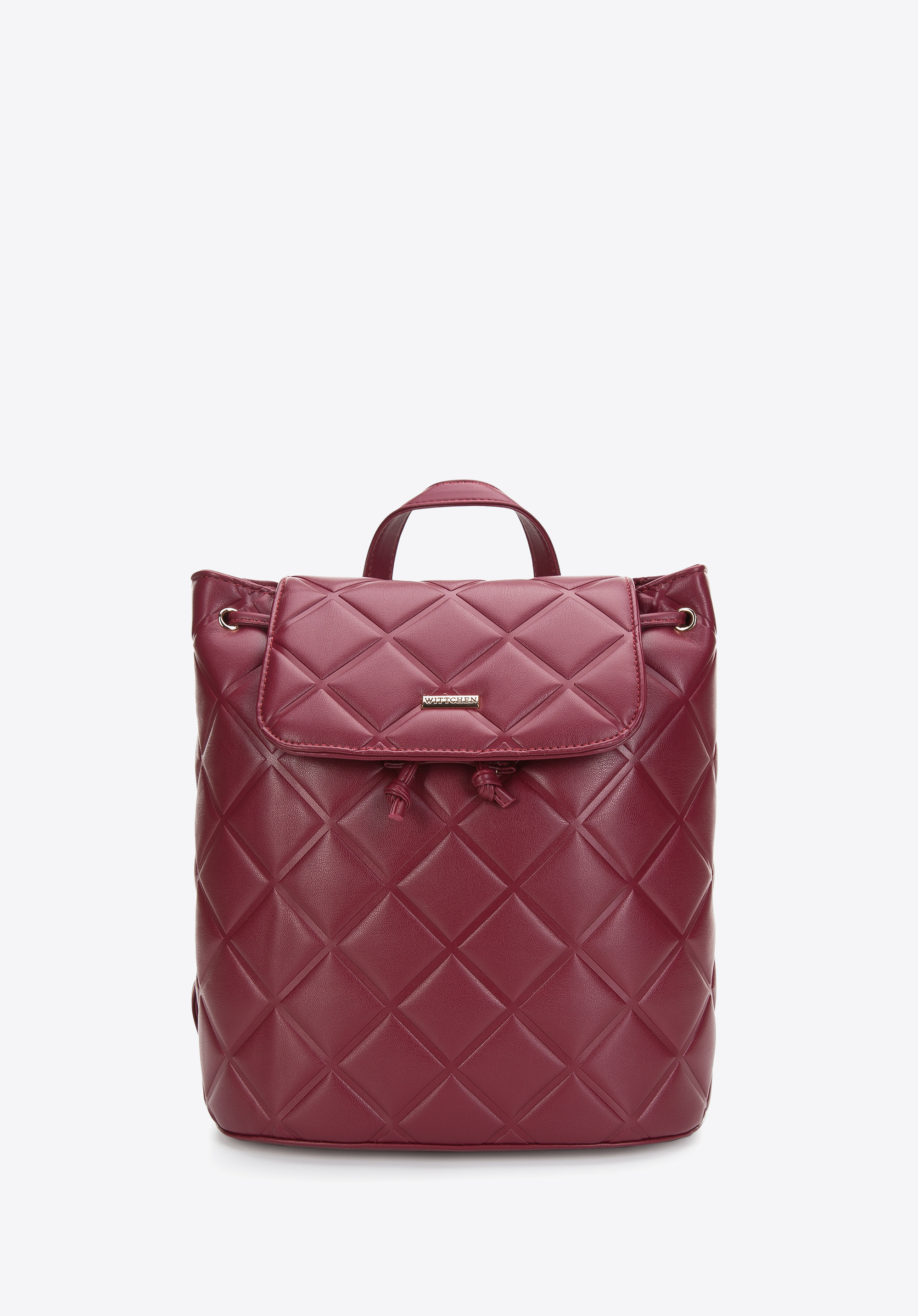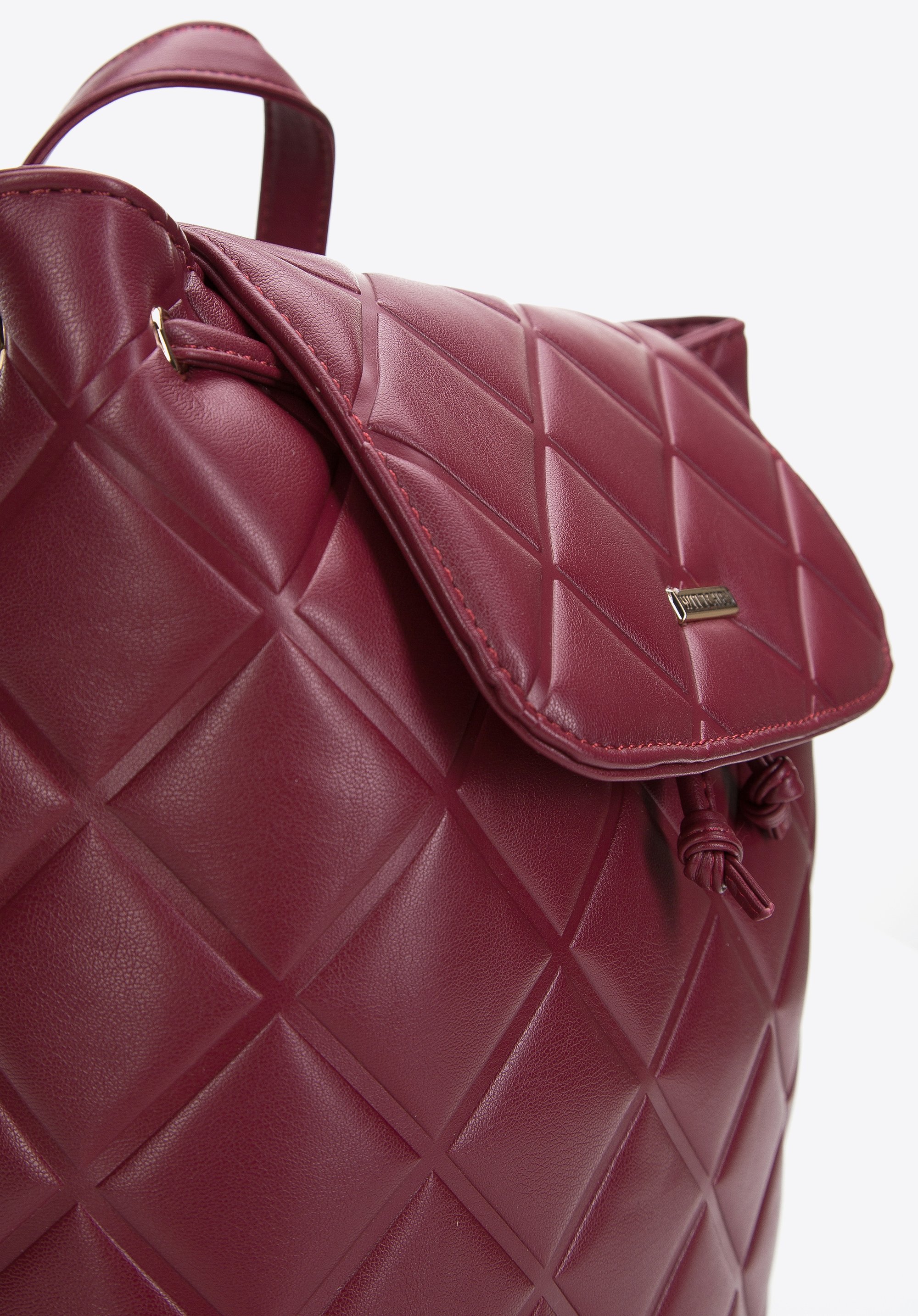 Damski plecak worek z geometrycznie pikowanej ekoskóry warto mieć w swojej szafie na wiele sezonów.