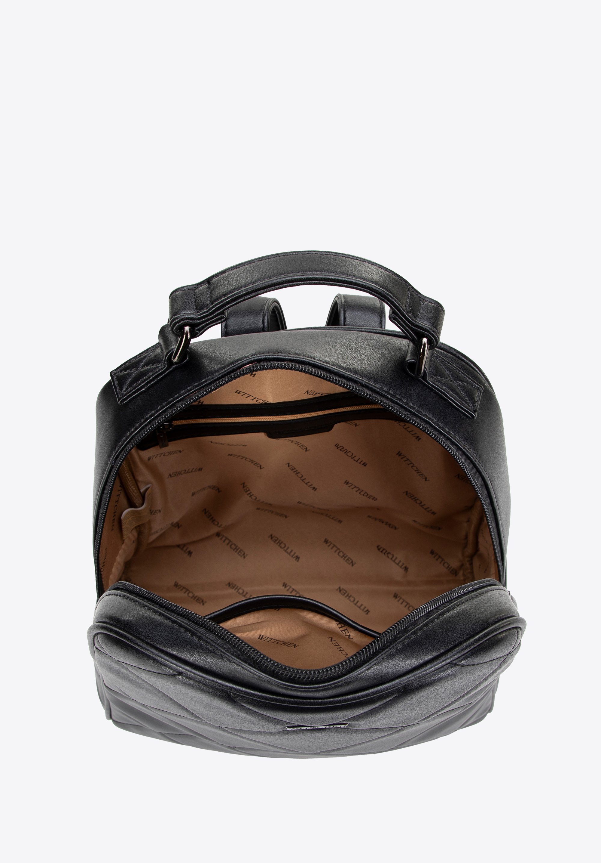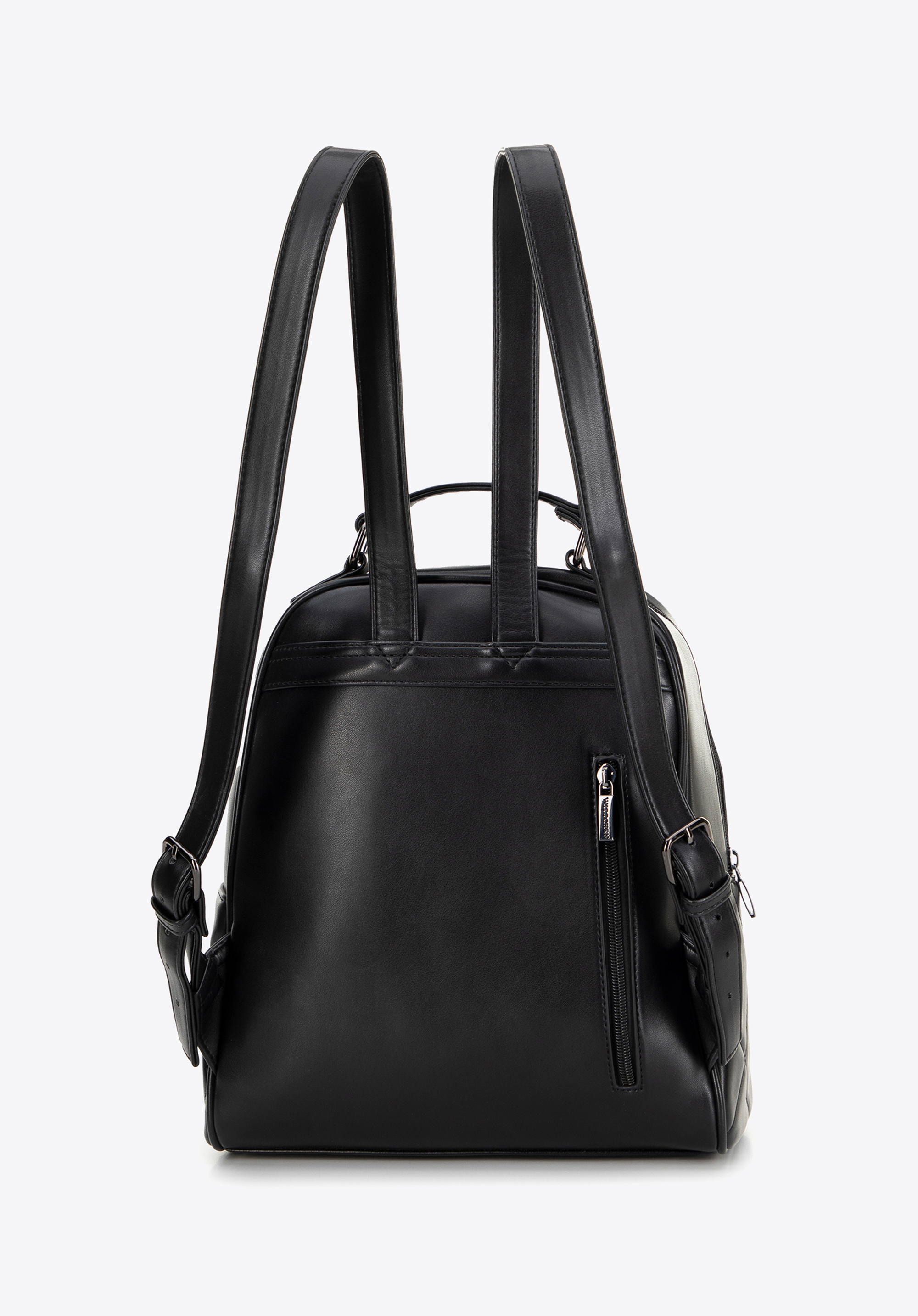 - Materiał: Plecak został stworzony z wytrzymałej skóry ekologicznej, co zapewnia mu elegancki wygląd idealny do codziennego użytku.