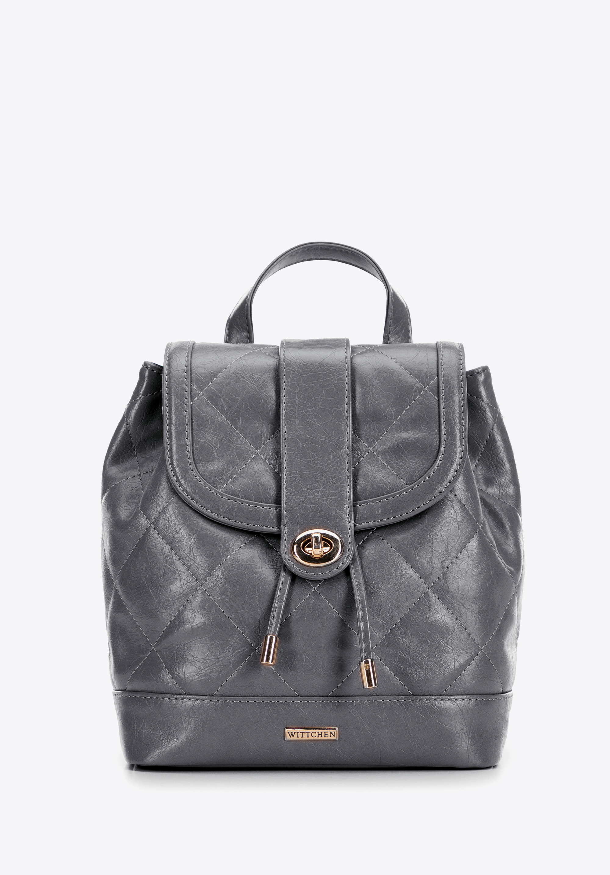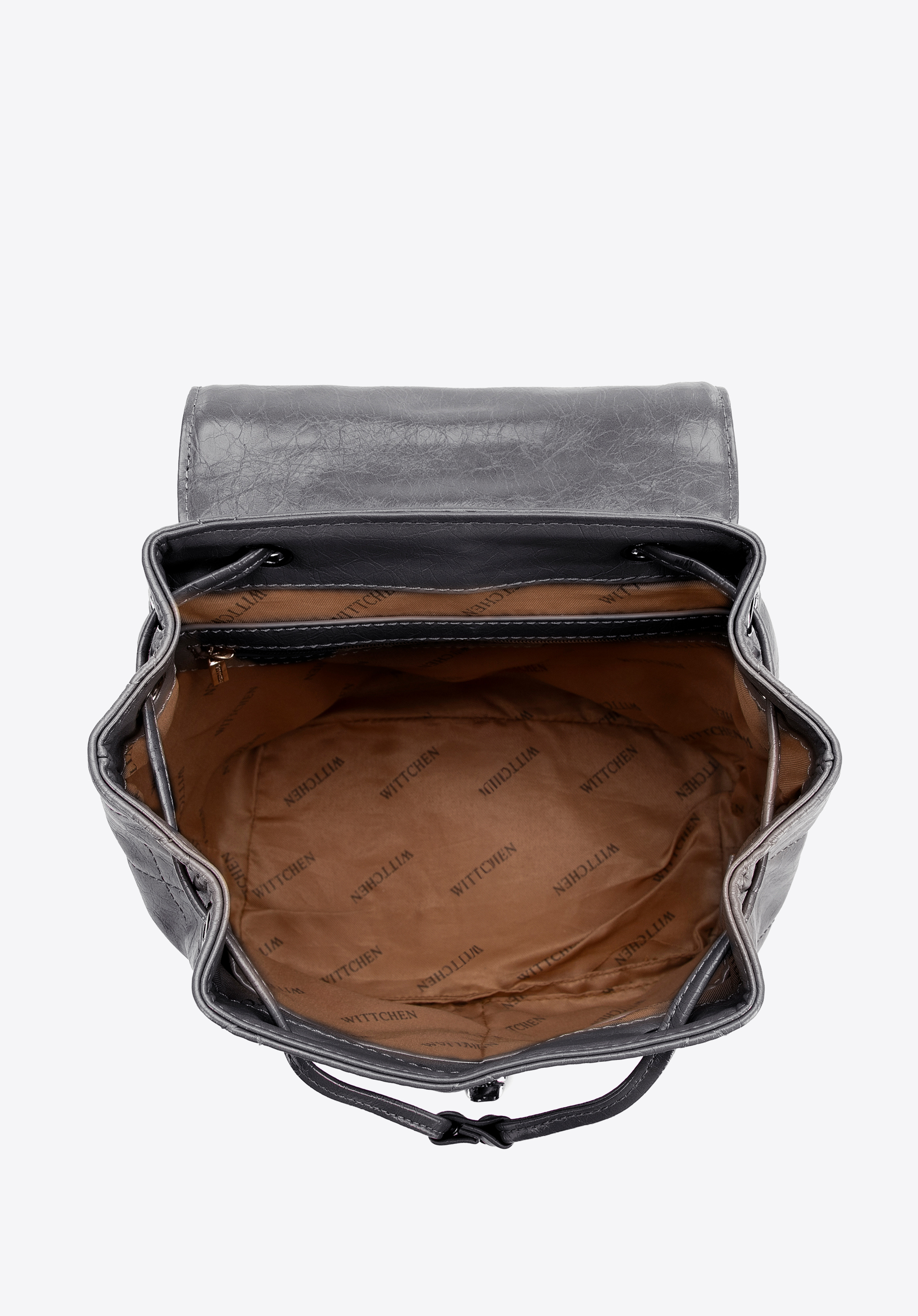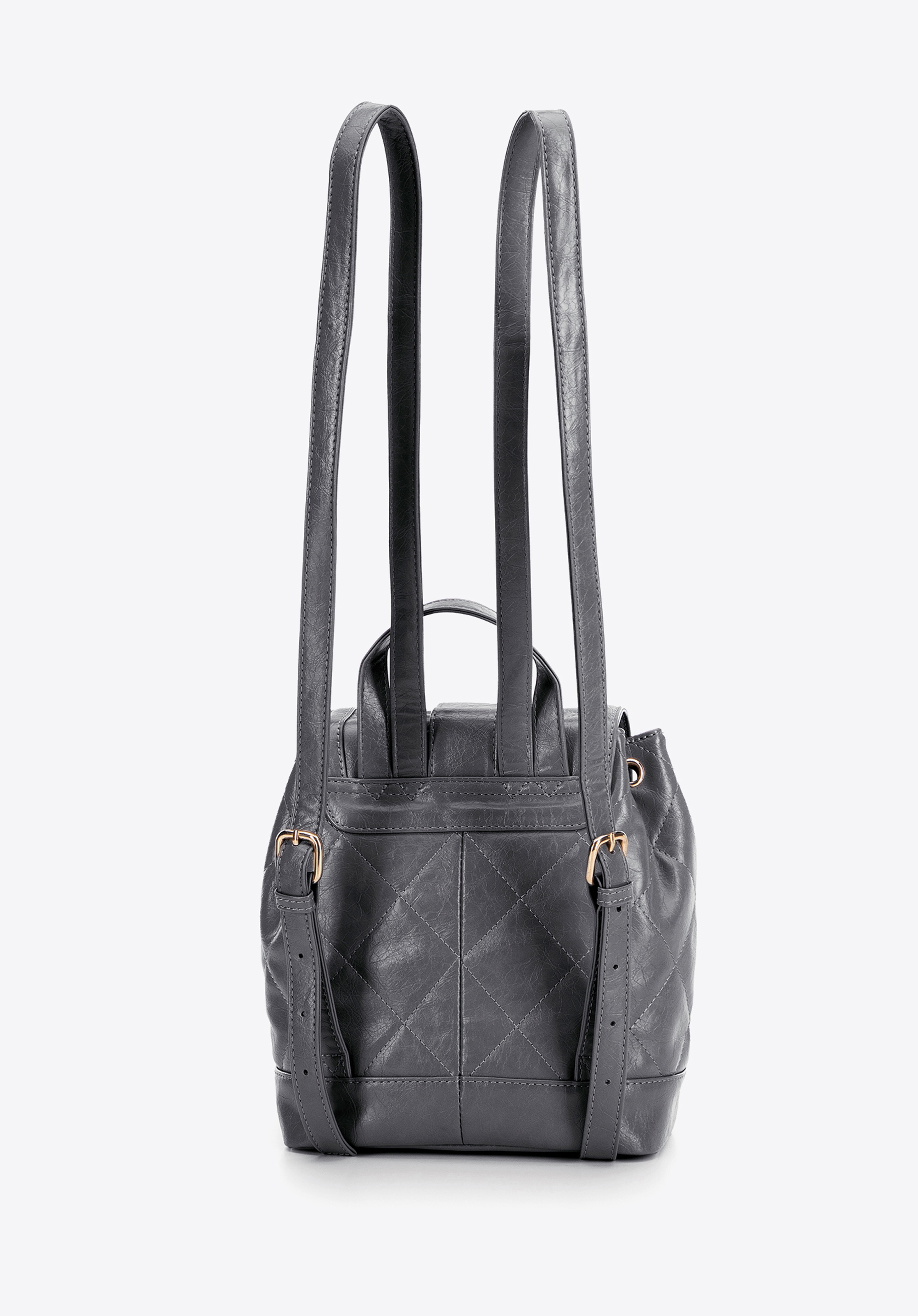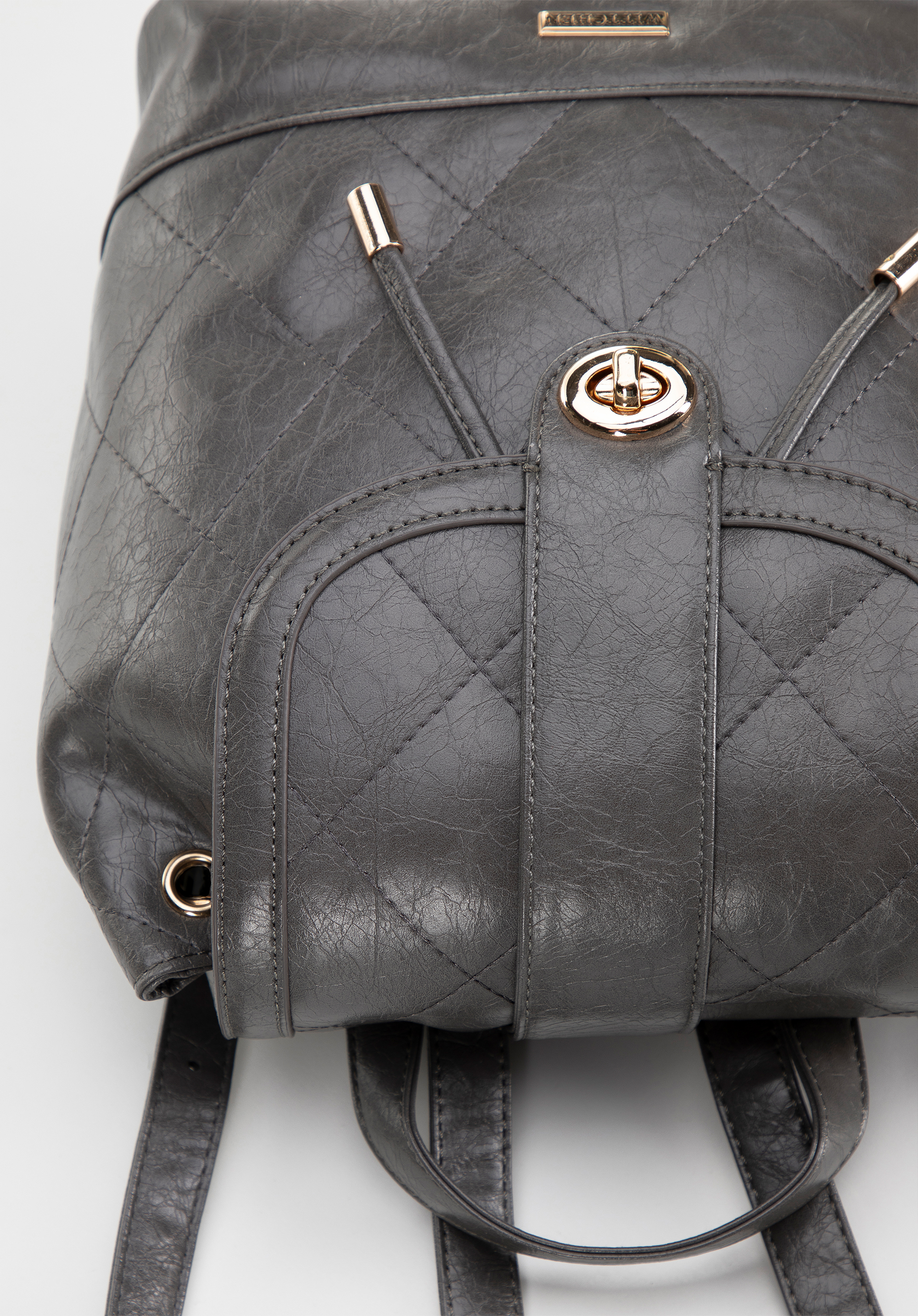 Damski plecak z ekoskóry w geometryczne przeszycia szary