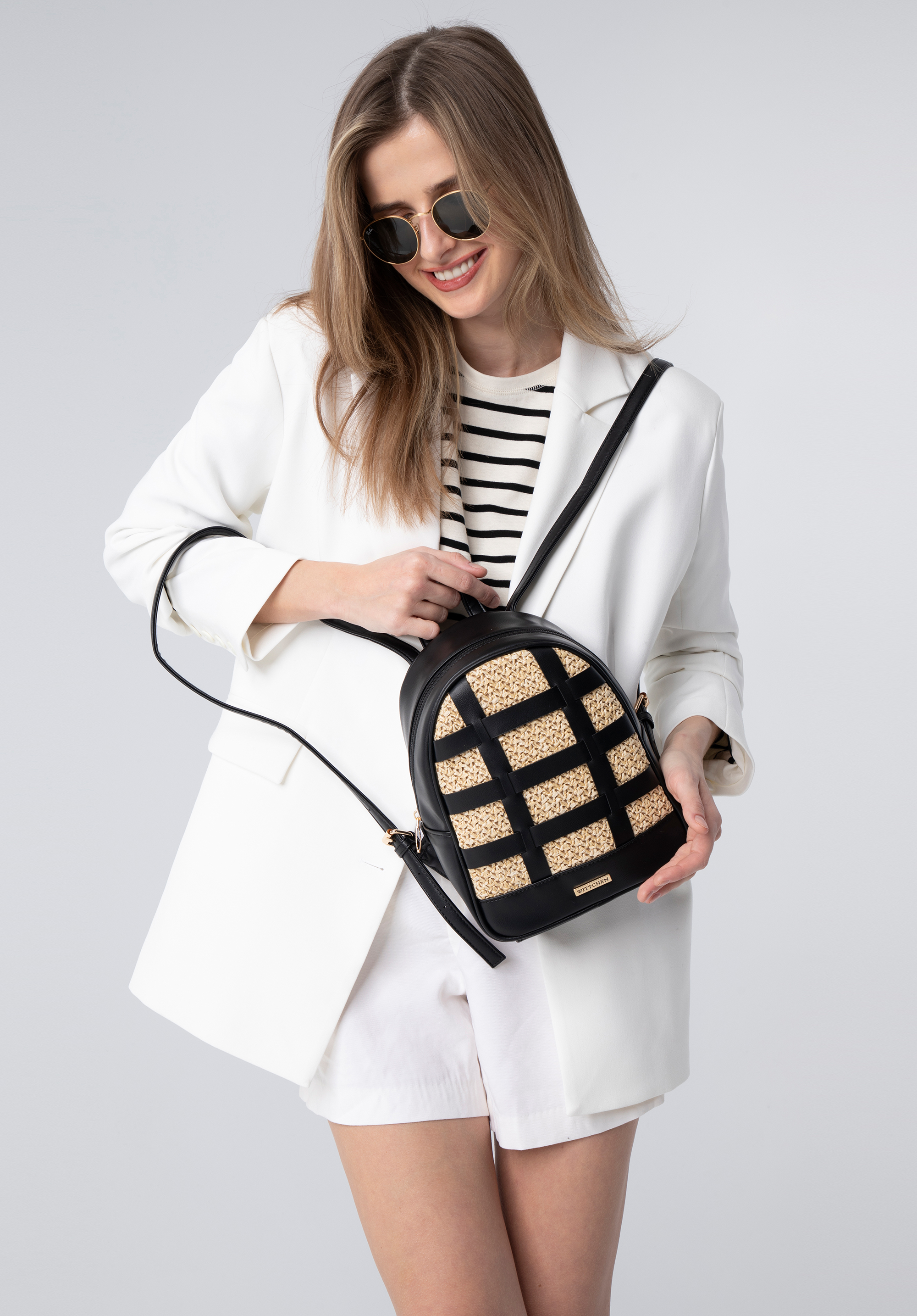 Damski plecak z ekoskóry ze wstawką z plecionki to świetny wybór dla miłośniczek modnych dodatków.