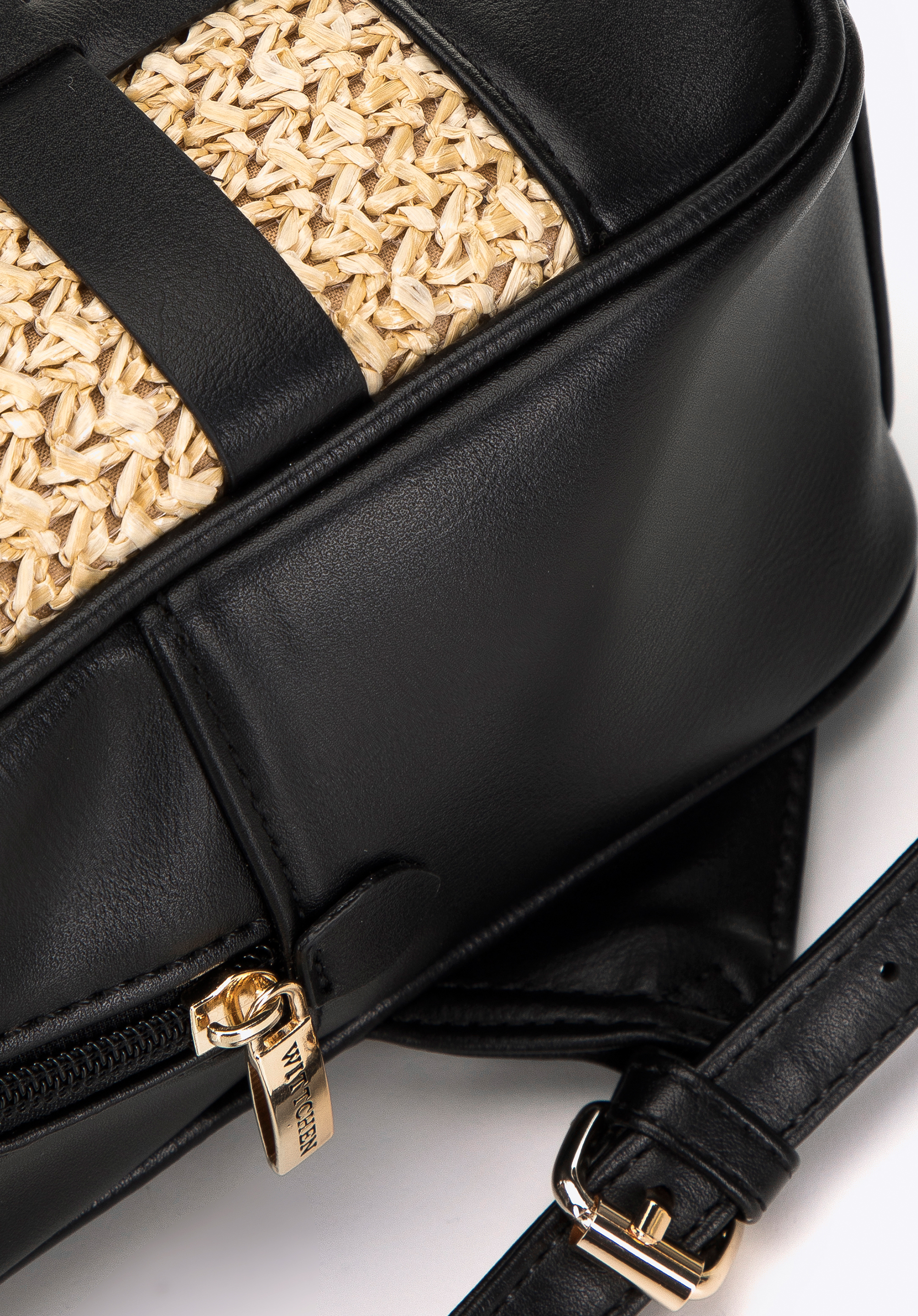 z przyjemnej w dotyku skóry ekologicznej. Przód wykonany z plecionki przypominającej słomianą dopełnia efektowna kratka. W środku zmieścisz portfel, telefon, kilka kosmetyków i zapasowy szal – w sam raz na weekendowe zwiedzane, na kawę z przyjaciółką lub spacer. Dobierz go do letniej, zwiewnej sukienki i kapelusza lub dodaj charakteru klasycznym dżinsom i koszuli.
