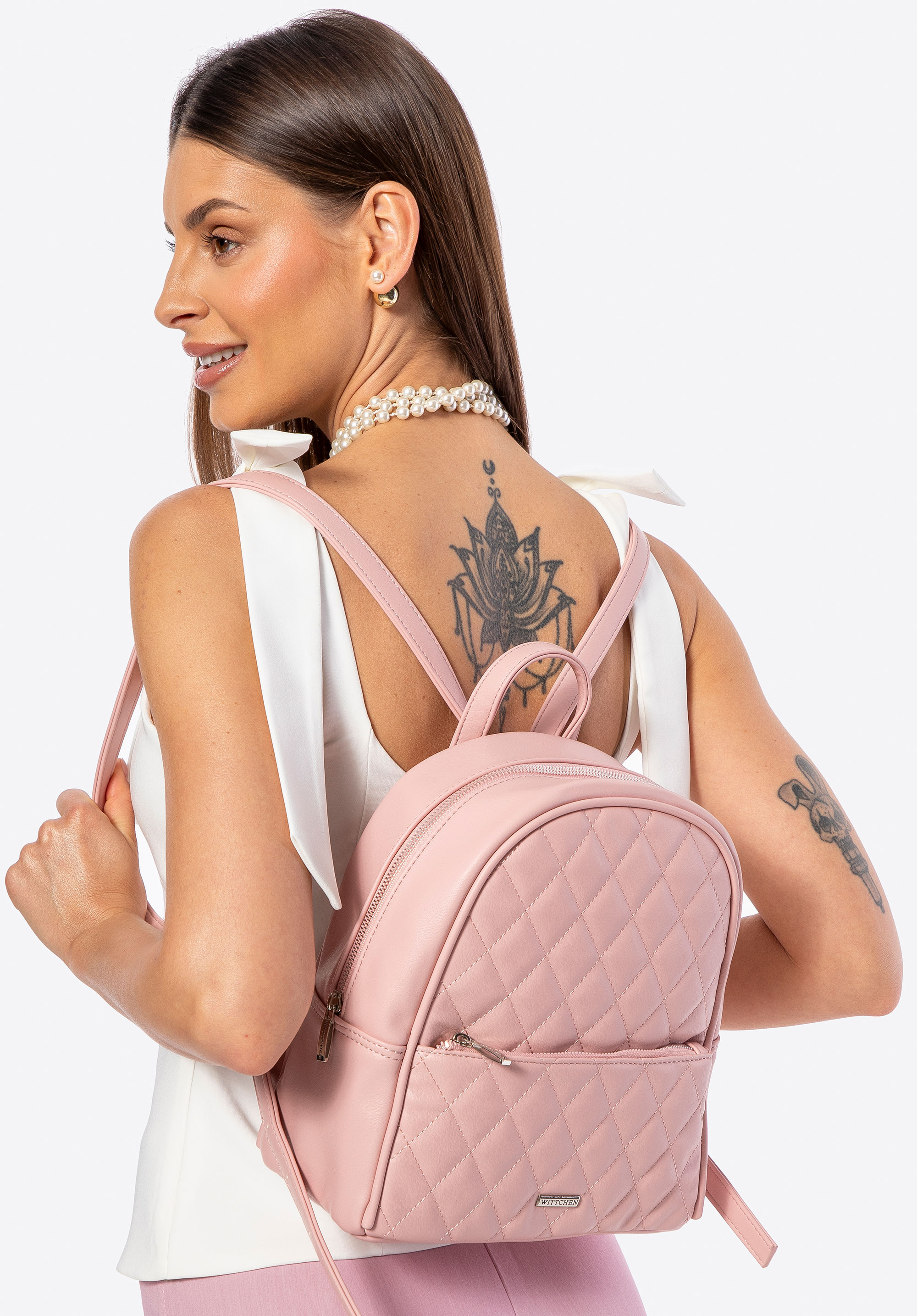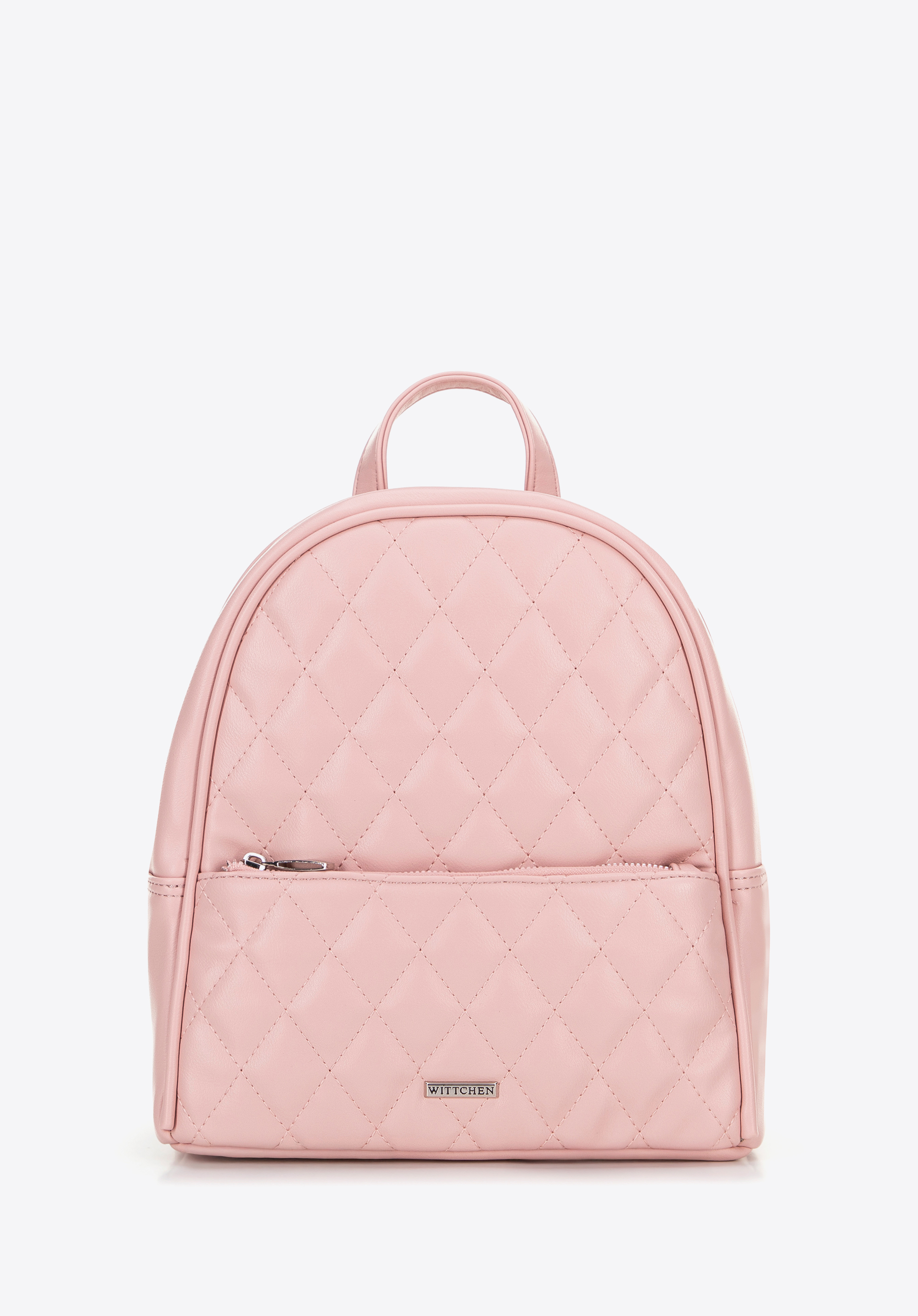 Damski plecak z imitacji skóry w przeszycia różowy