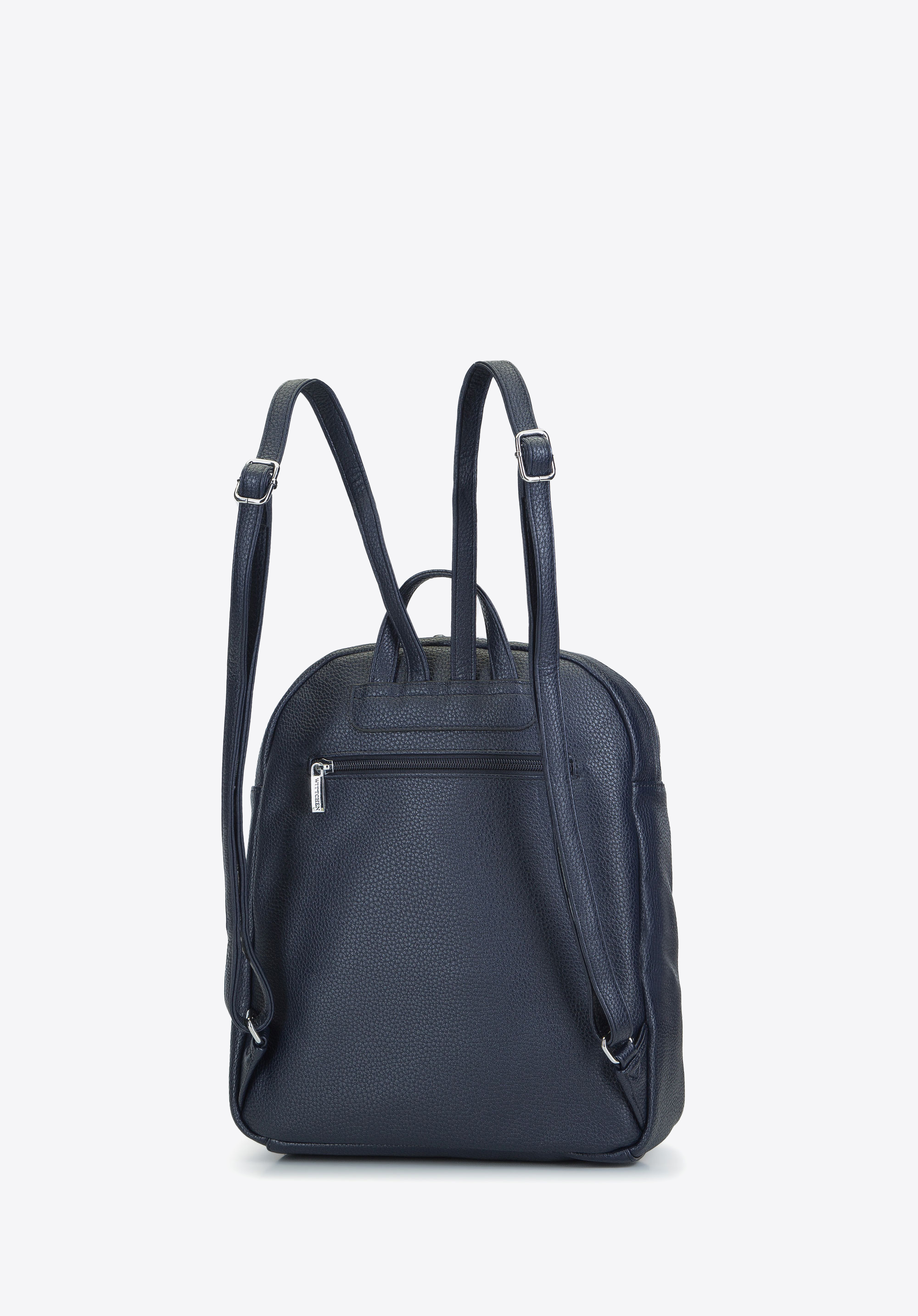 Klasyczny plecak z miejscem na zawieszkę przy przednim suwaku to akcesorium, dzięki któremu lepiej wyrazisz siebie – wystarczy, że zawiesisz swój ulubiony breloczek, urokliwy futrzany pomponik czy pukiel frędzli. Uniwersalny charakter plecaka uwydatni osobisty akcent na froncie. Ponadczasowy fason, minimalistyczne zdobienia, stonowana kolorystyka i jednolita struktura ekoskóry tworzą razem spójny efekt pełen dobrego umiaru i proporcji. Model uszyty jest z najlepszej jakości materiałów przyjaznych dla środowiska. Ten damski plecak z naszytą kieszenią z przodu nie tylko uporządkuje drobiazgi, lecz także pomieści format A4, abyś mogła cieszyć się jego pakownością i ładem jednocześnie każdego dnia. Ten wszechstronny dodatek pasuje niemal do wszystkiego, więc będziesz miała niezliczoną ilość możliwości do tego, aby wyrazić swój indywidualny styl.