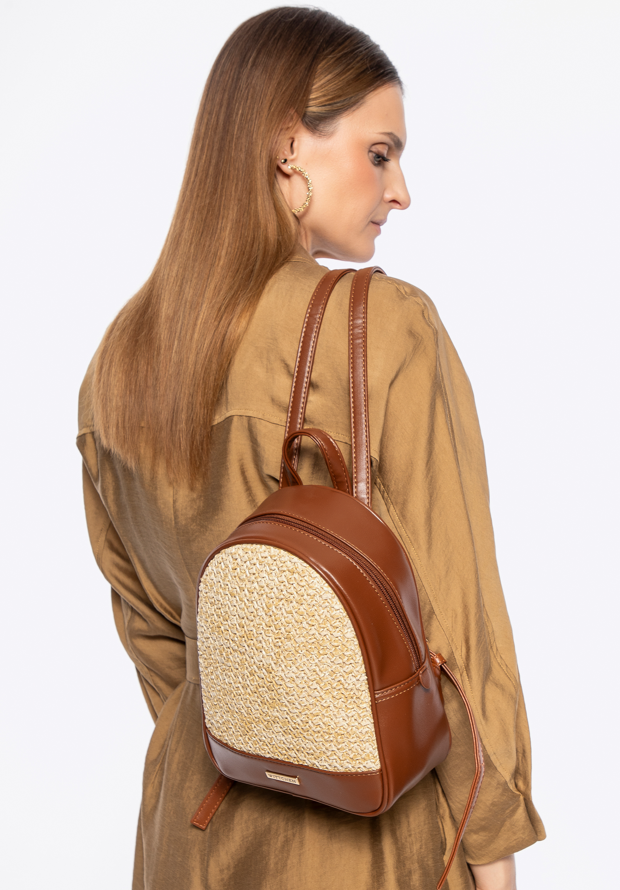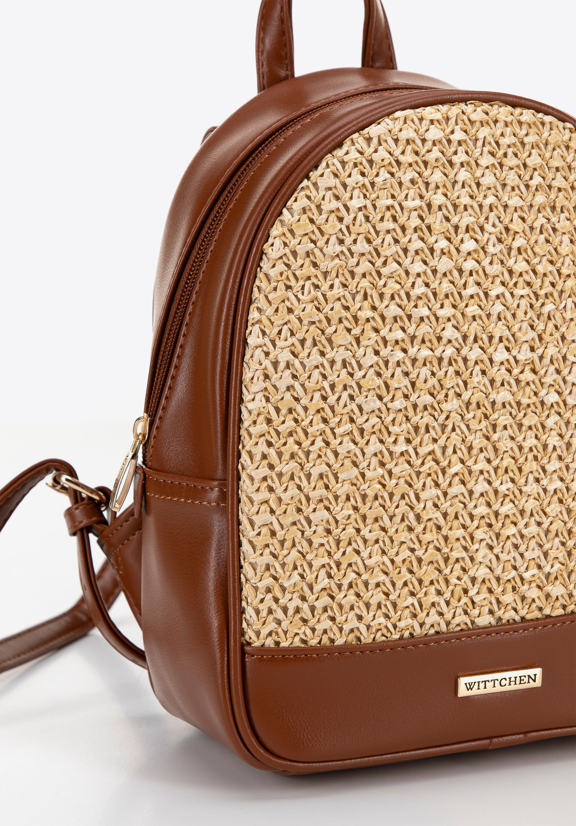 - Materiał: Plecak został wykonany z eleganckiej ekoskóry i plecionki syntetycznej, odpornej na codzienne użytkowanie i łatwej w pielęgnacji. Dzięki temu plecak zachowuje świetny wygląd na dłużej.
