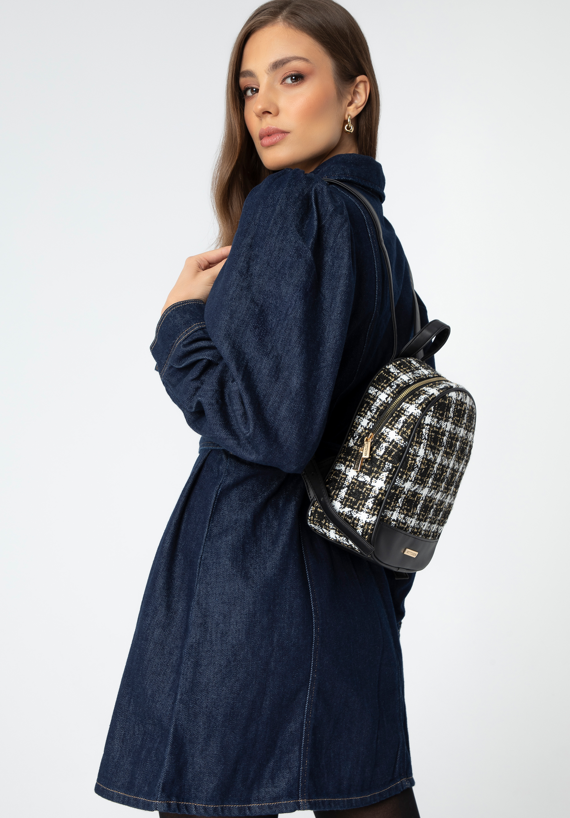 Ciesz się niezawodnym stylem z tym damskim plecakiem z tkaniny bouclé!