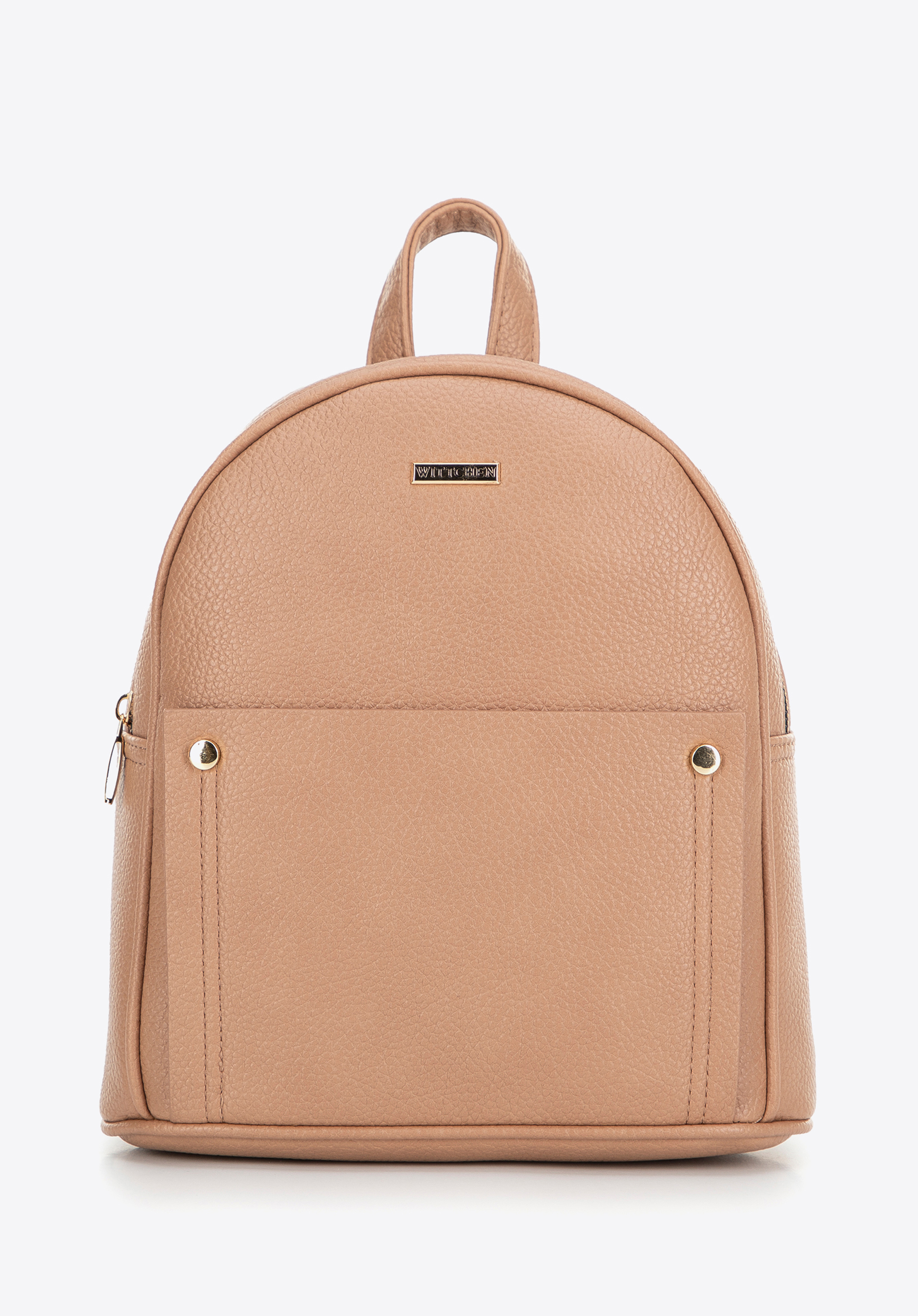 - Kieszeń z nitami: Dodatkowa kieszeń na przodzie, ozdobiona modnymi nitami, nie tylko zwiększa funkcjonalność, ale także nadaje plecakowi modowy look.