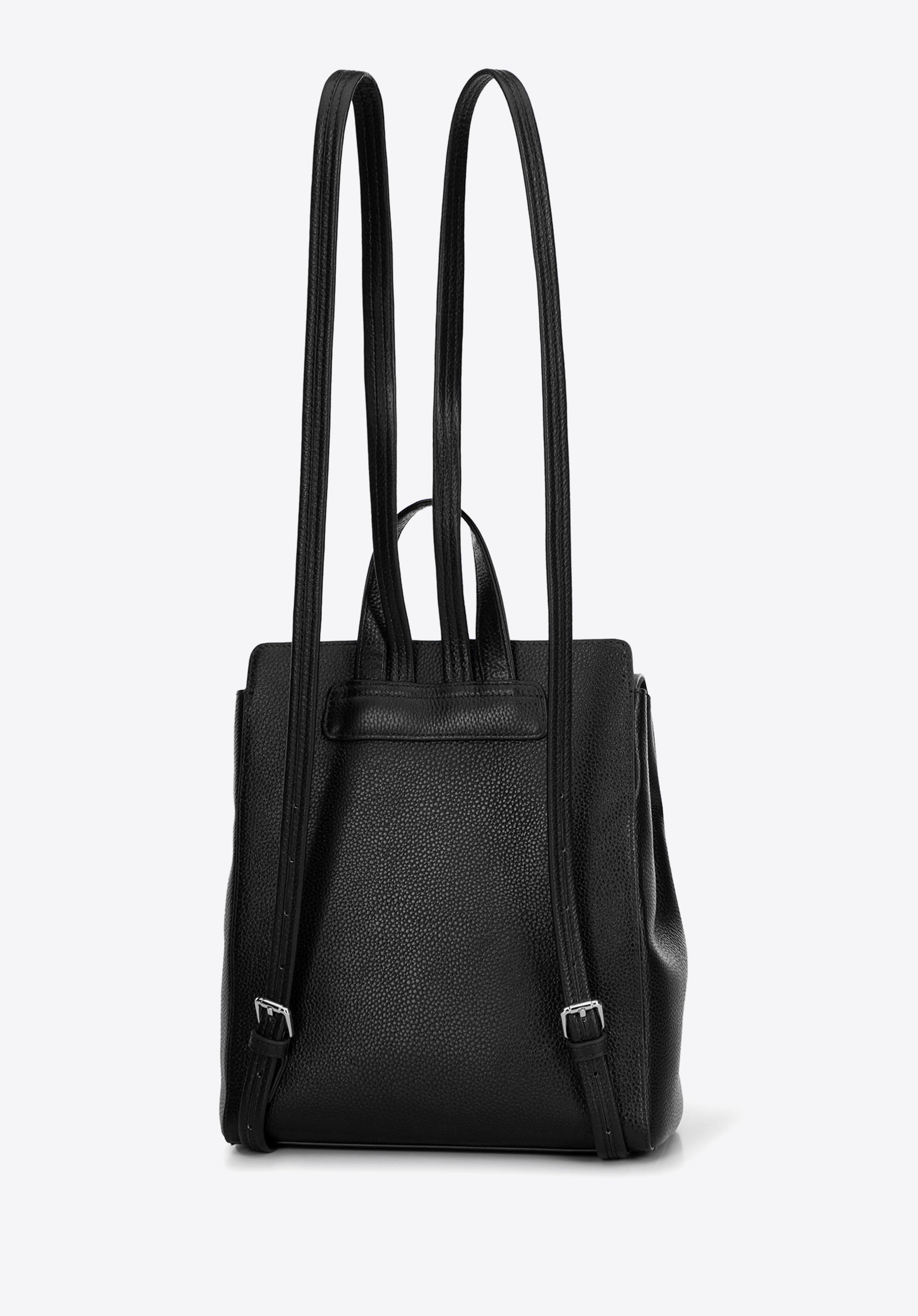 Odkryj wyjątkowy styl i wygodę z naszym plecakiem skórzanym z kolekcji Elegance. Ten damski plecak wykonany ze skóry groszkowej to kwintesencja elegancji i funkcjonalności. Jego unikalny design tworzy trójkątna klapa zapinana na magnetyczny zatrzask, która dodaje charakteru i oryginalnego stylu. Wnętrze plecaka jest dwukomorowe, z dwiema praktycznymi kieszeniami: jedną otwartą i drugą zapinaną na suwak, co pozwala na lepszą organizację przedmiotów. Dodatkowa kieszeń pośrodku komory, zamykana na suwak błyskawiczny jest idealna na przechowywanie małych rzeczy, co czyni plecak niezwykle praktycznym wyborem na co dzień. Dla zwiększenia stabilności, plecak posiada usztywniane dno, a regulowane szelki zapewniają pełen komfort noszenia, niezależnie od sylwetki. Na przodzie plecaka znajduje się logo WITTCHEN, które podkreśla jego prestiż. Jest w sam raz do pracy, na spacer czy kawę z przyjaciółką.