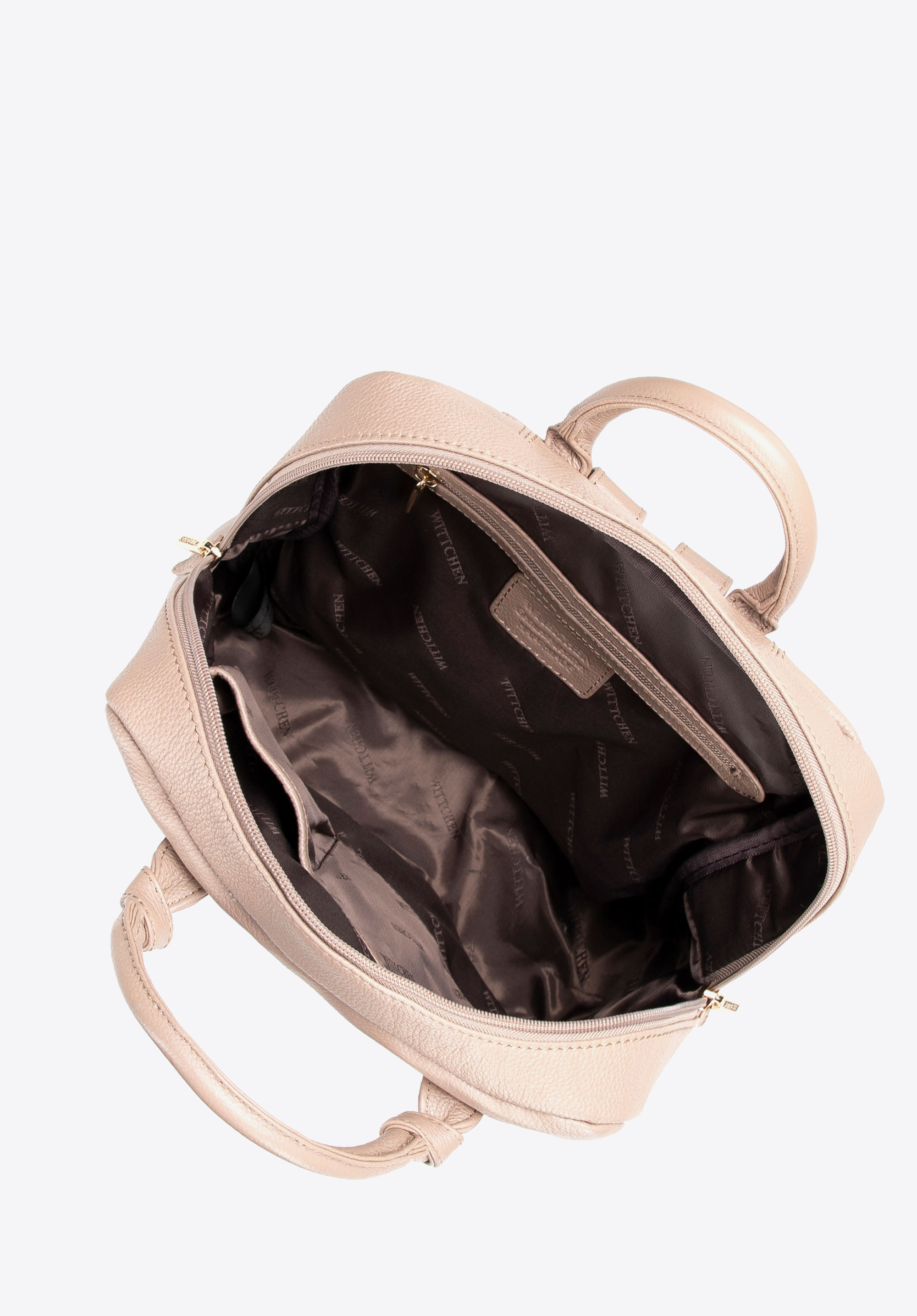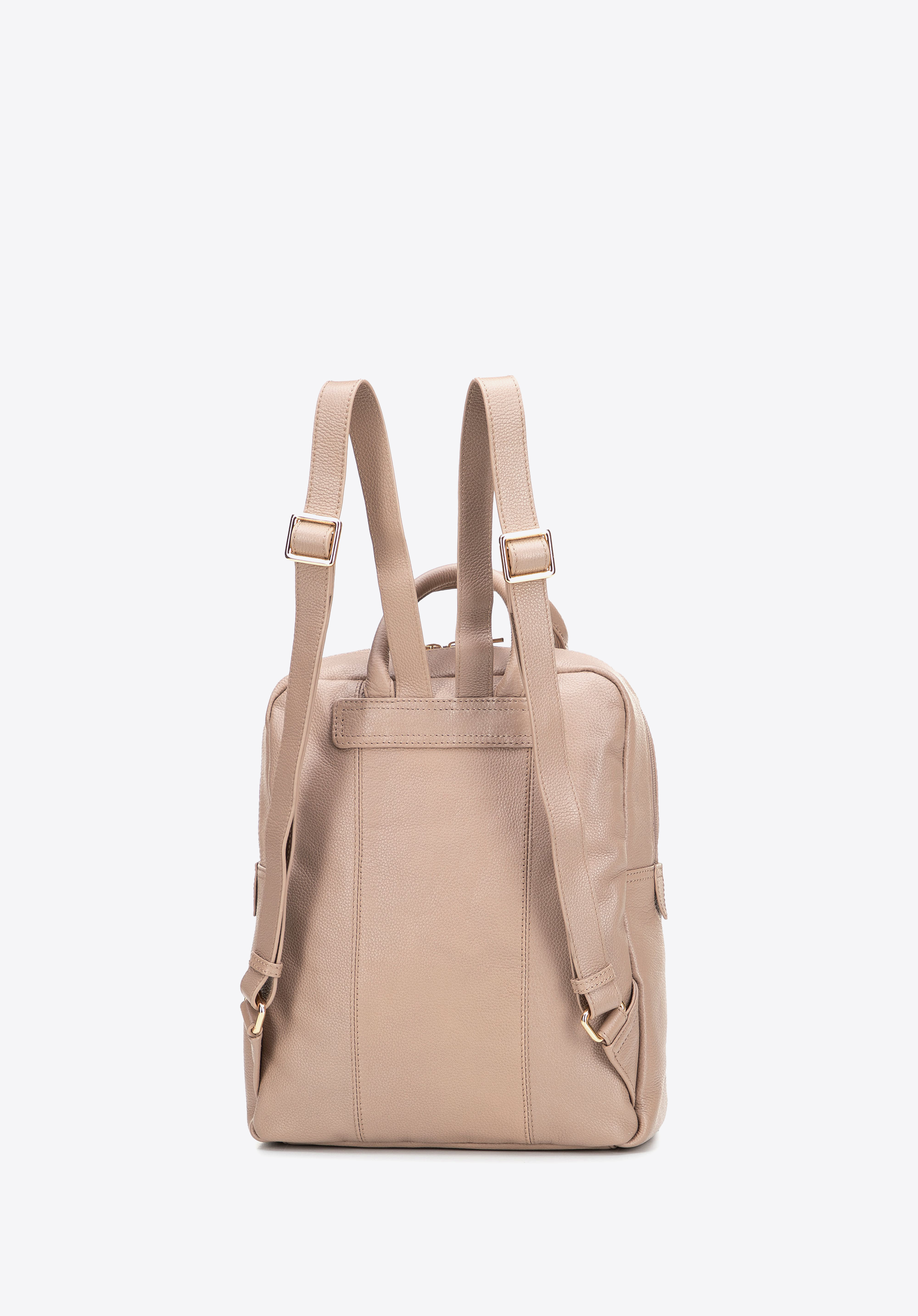 Damski plecak ze skóry naturalnej w prostokątnej formie beżowy
