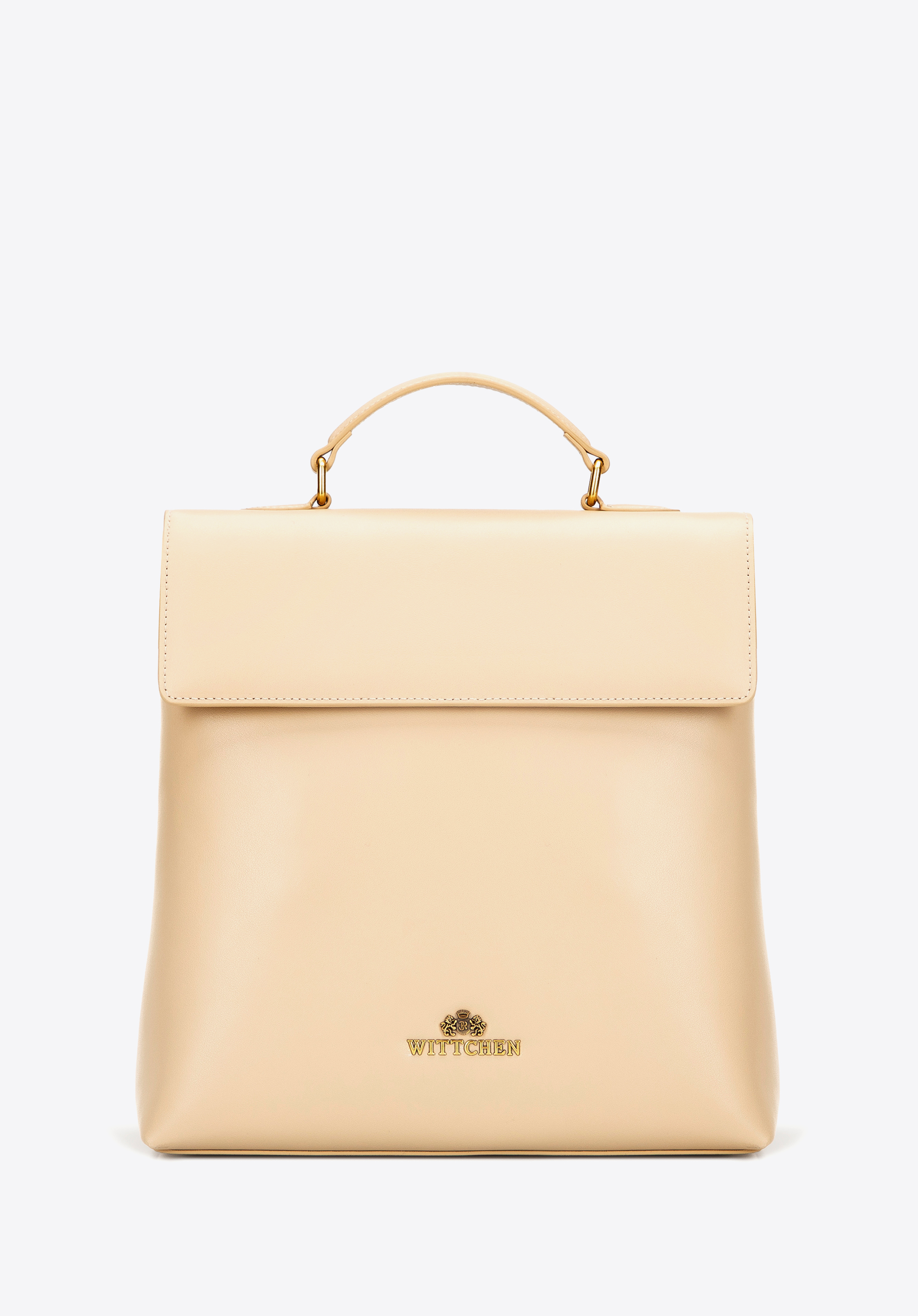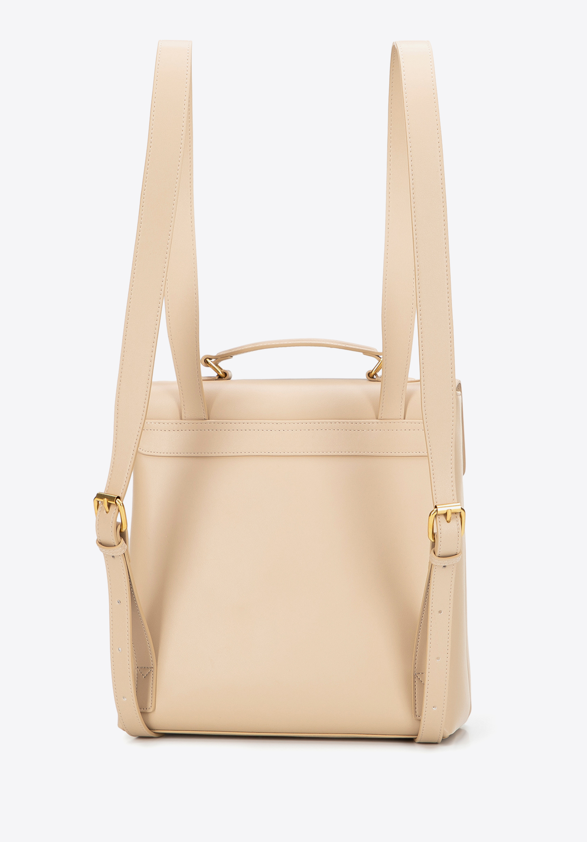 Poznaj plecak, który łączy klasyczny design z praktycznymi rozwiązaniami. Korpus wykonano ze skóry naturalnej o subtelnej fakturze, przyciągającej wzrok trwałym i eleganckim wykończeniem. Materiał pod klapą, rączka, szelki oraz wewnętrzne wykończenia wykonano z imitacji skóry, co zapewnia lekkość, wygodę i zachowanie kształtu plecaka nawet przy codziennym użytkowaniu. Zamknięcie na klapę z zatrzaskiem i zamkiem gwarantuje bezpieczeństwo zawartości, a prostokątna forma ułatwia organizację rzeczy.