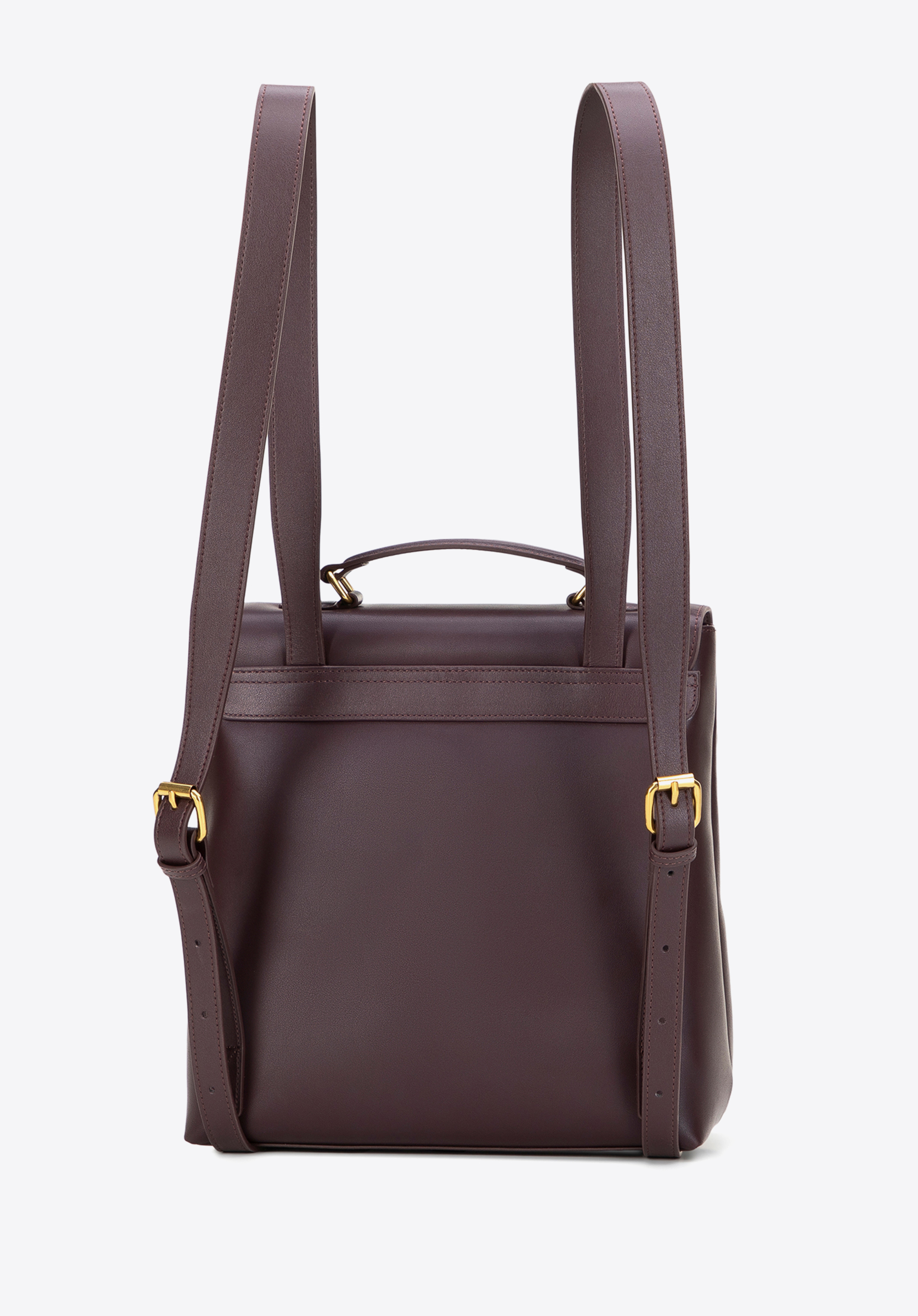 Damski plecak ze skóry naturalnej z klapą bordowy