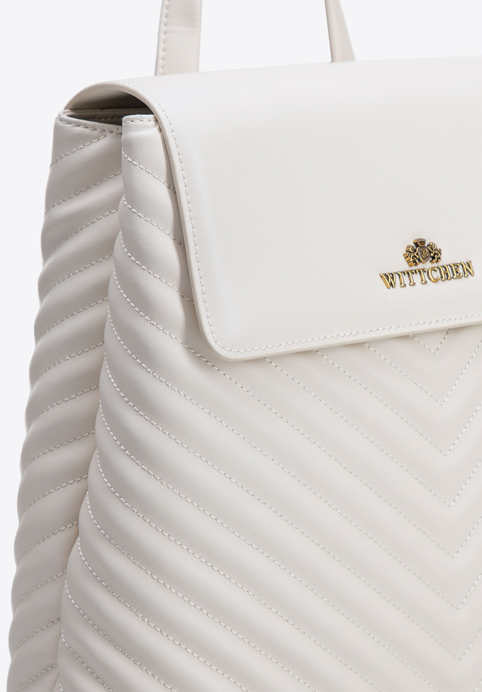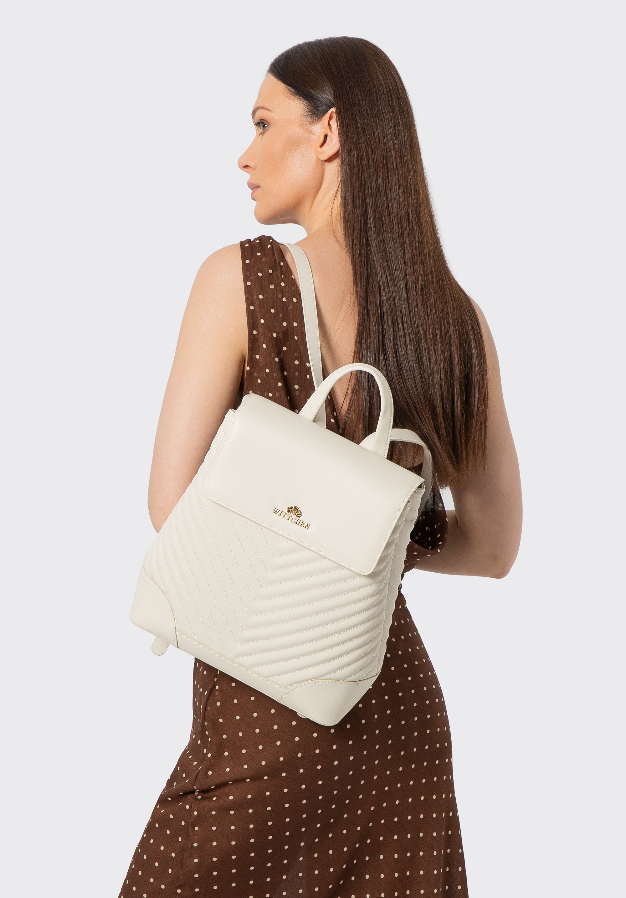 - Logo i detale: Subtelne logo producenta na klapie i suwaku oraz dekoracyjne przeszycia podkreślają elegancję i prestiż plecaka.