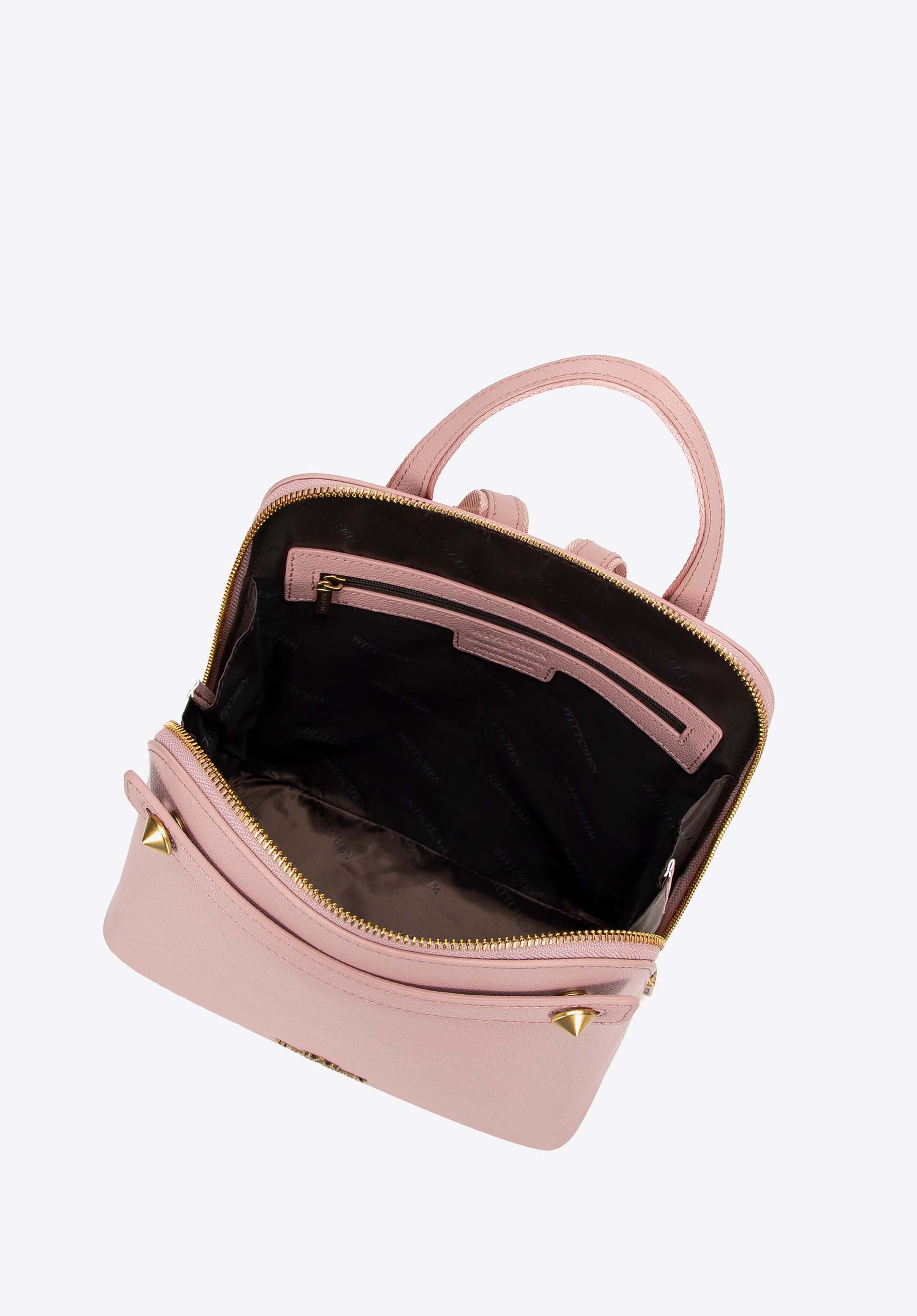 Damski plecak ze skóry trapezowy różowy