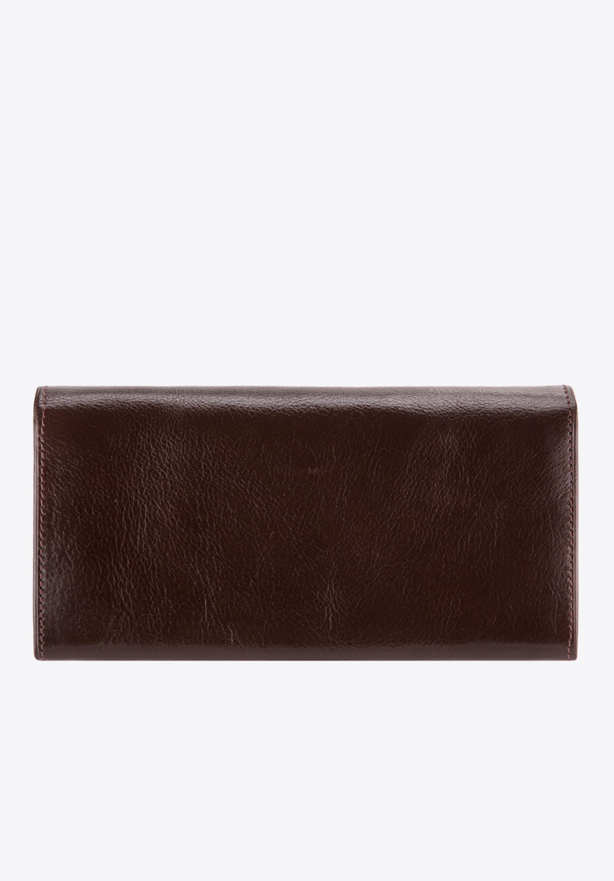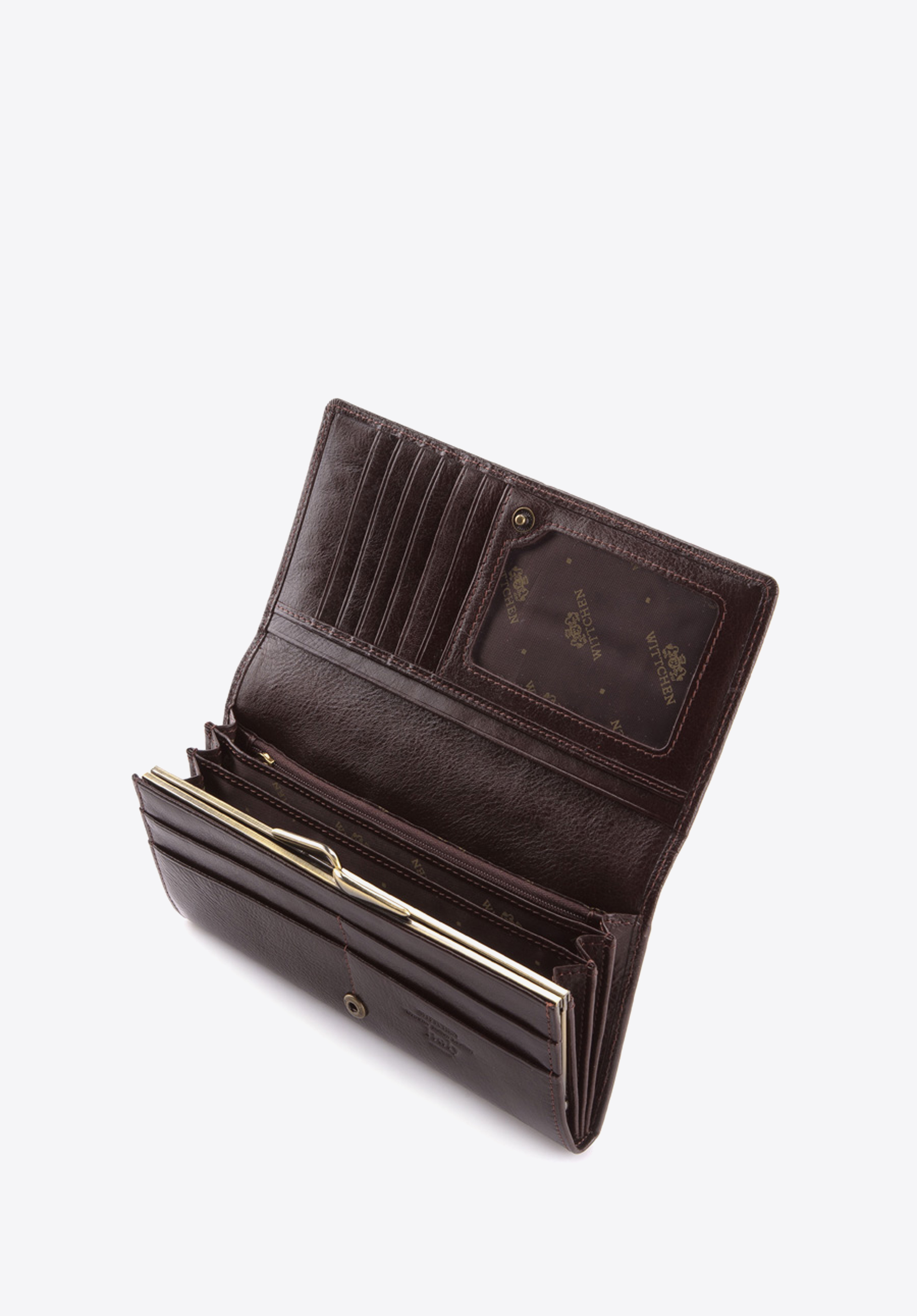 Duża, skórzana portmonetka zapinana na napę, wyposażona w pojemną, dwukomorową kieszeń na bilon to model pojemny, a zarazem bardzo elegancki. Klasyczny wzór, który nigdy nie wychodzi z mody.