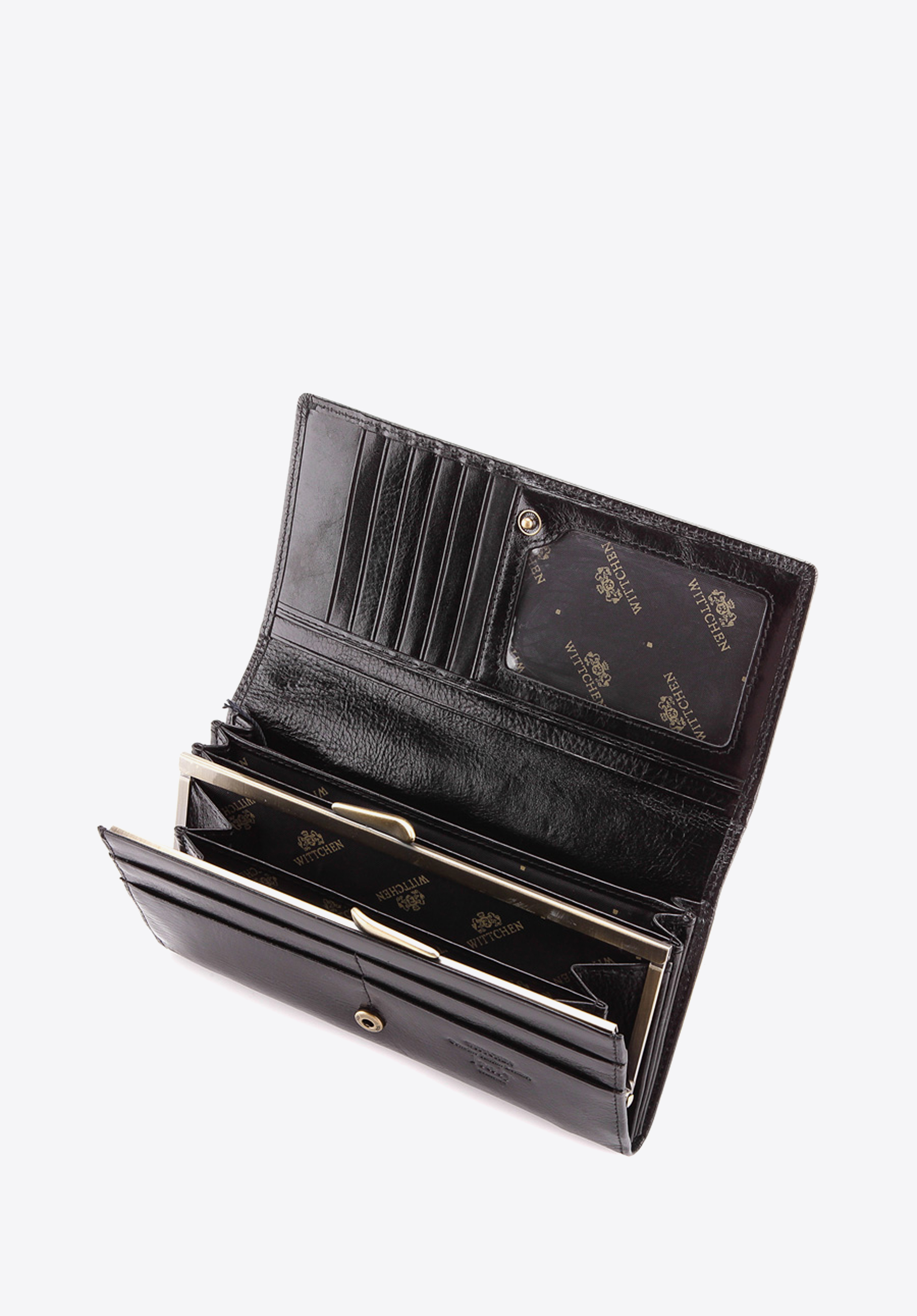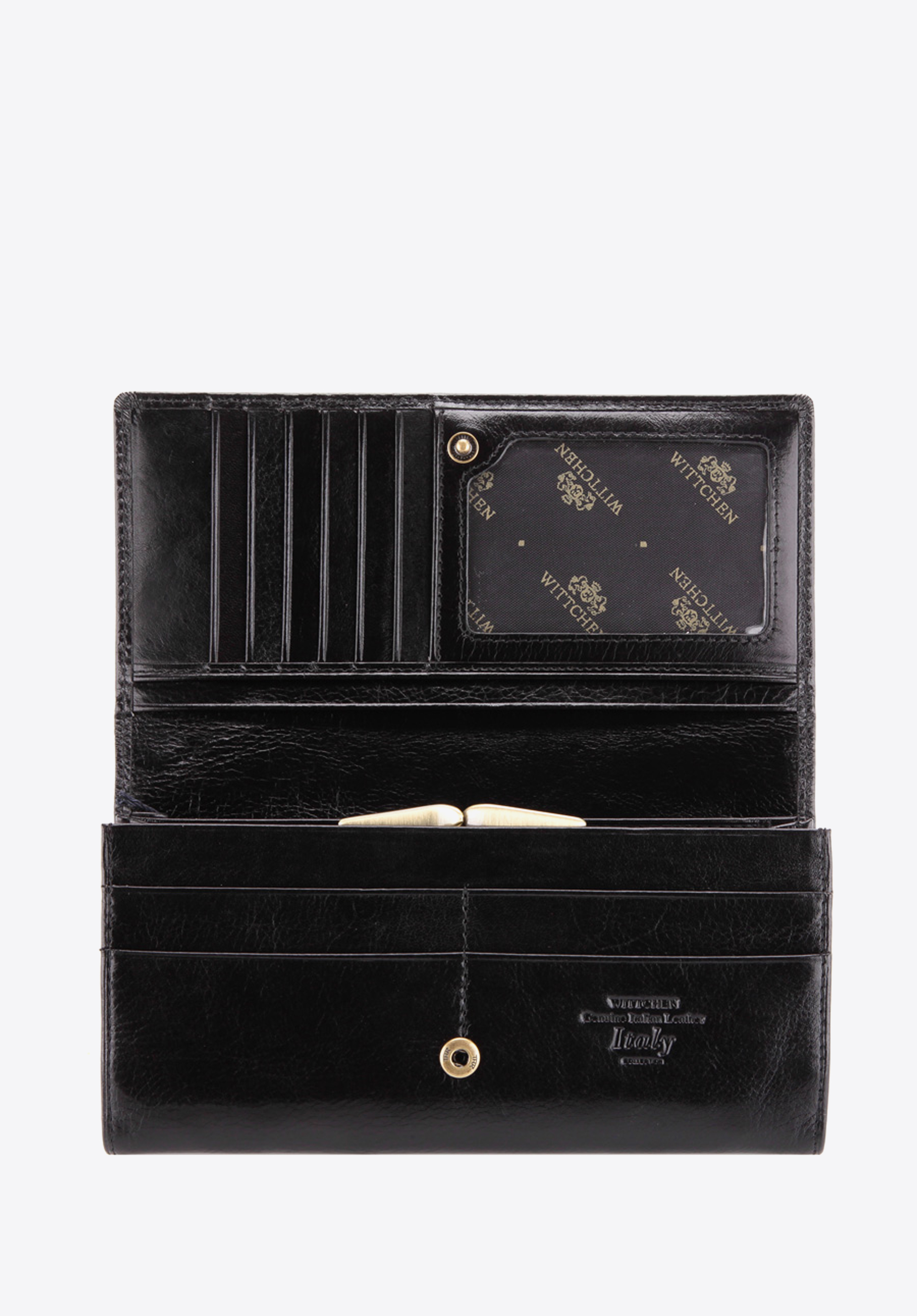 Duża, skórzana portmonetka zapinana na napę, wyposażona w pojemną, dwukomorową kieszeń na bilon to model pojemny, a zarazem bardzo elegancki. Klasyczny wzór, który nigdy nie wychodzi z mody.
