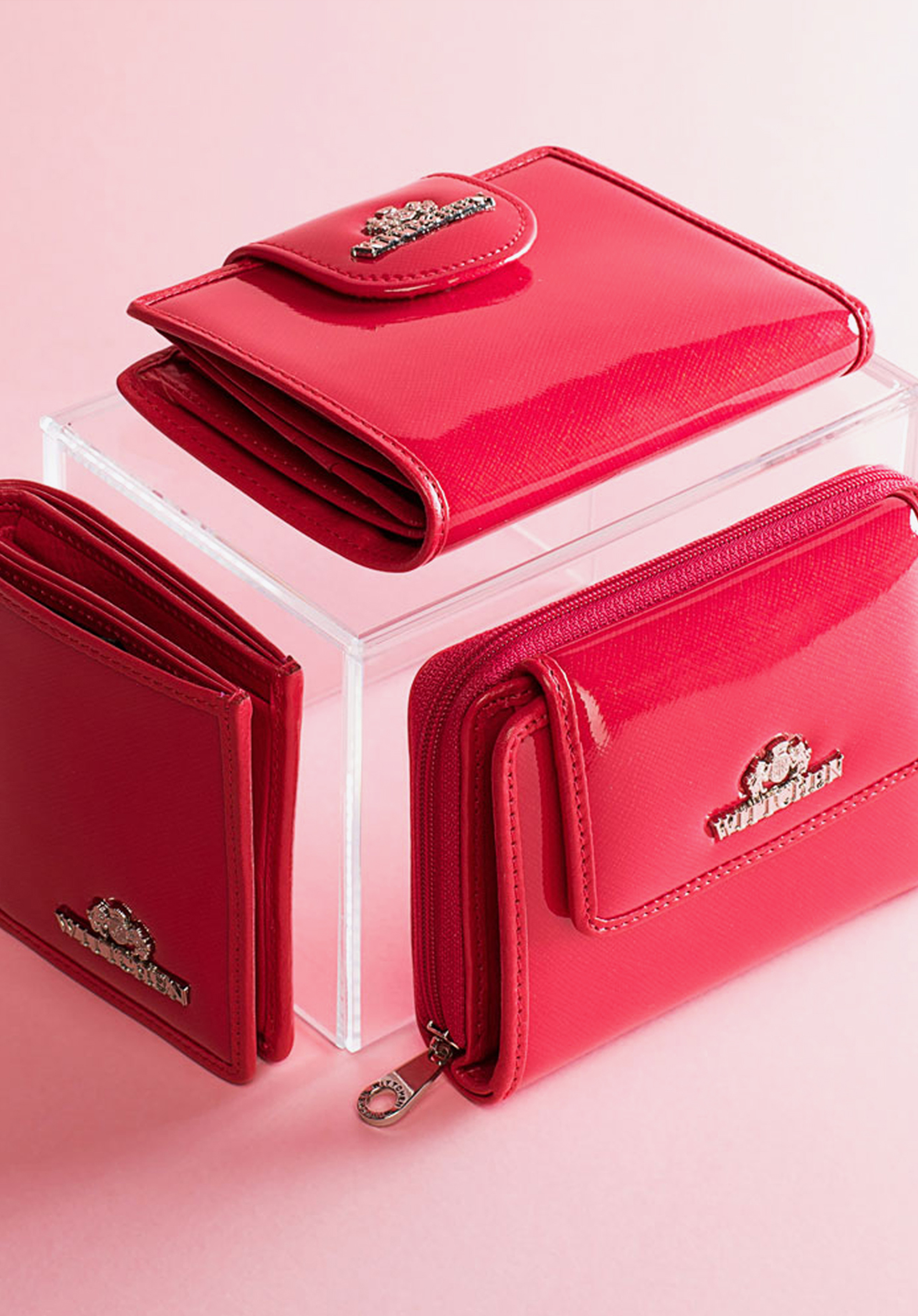Niezwykle kobiecy i gustowny - taki jest ten mały portfel damski wykonany ręcznie ze skóry lakierowanej (na zewnątrz) i skóry licowej (wewnątrz i na obszyciach). Portfel jest nie tylko atrakcyjny, lecz także funkcjonalny - dzięki kompaktowemu rozmiarowi zmieści się w niemal każdej damskiej torebce.