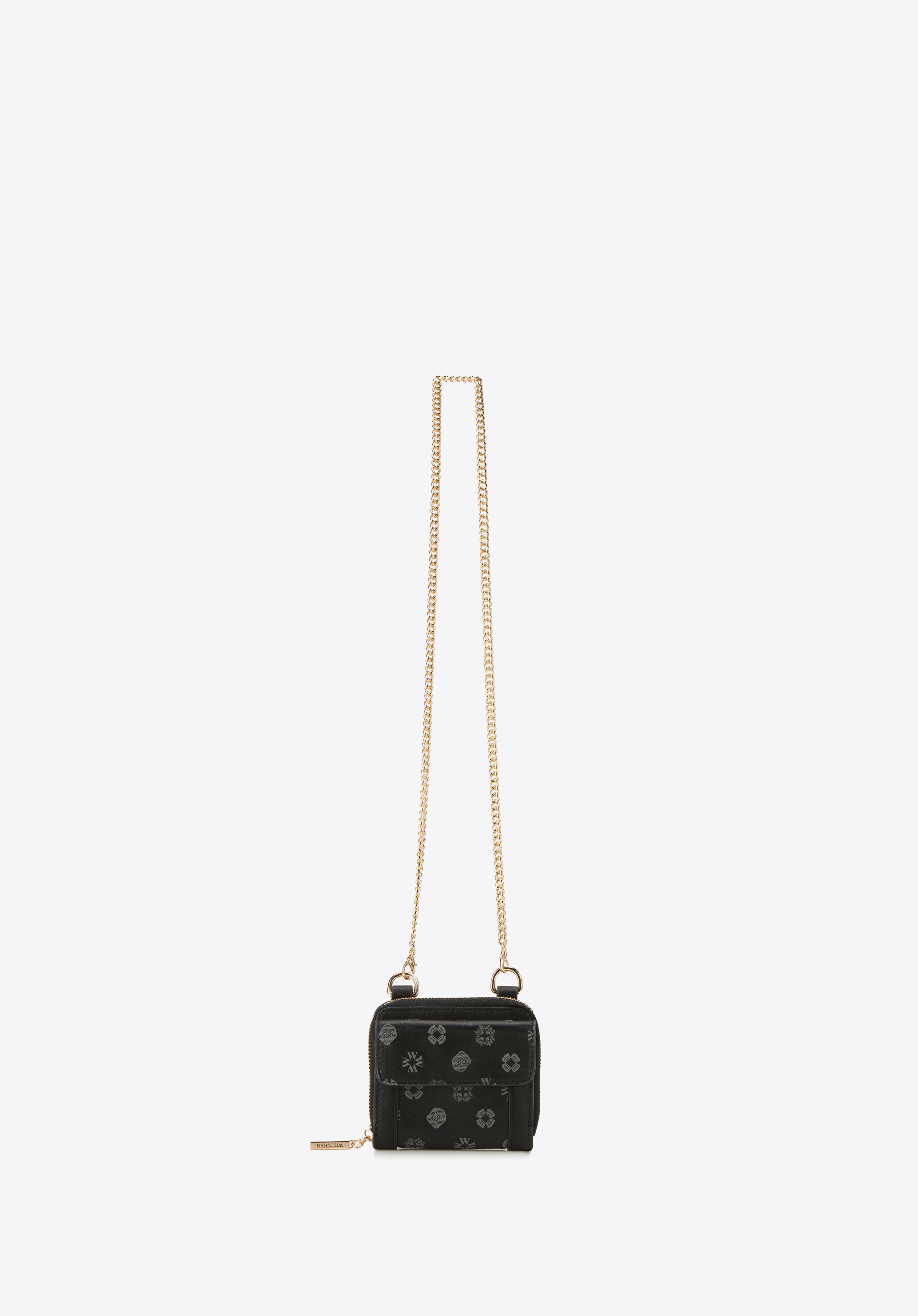 Damski portfel skórzany na łańcuszku zagra pierwsze skrzypce na wieczornym wyjściu, a w dzień zastąpi torebkę wtedy, gdy cenisz minimalizm i sprytne rozwiązania. Skóra w monogram, złote okucia i odpinany łańcuszek tworzą biżuteryjny efekt, a przemyślane kieszenie porządkują bilon, karty i drobiazgi.