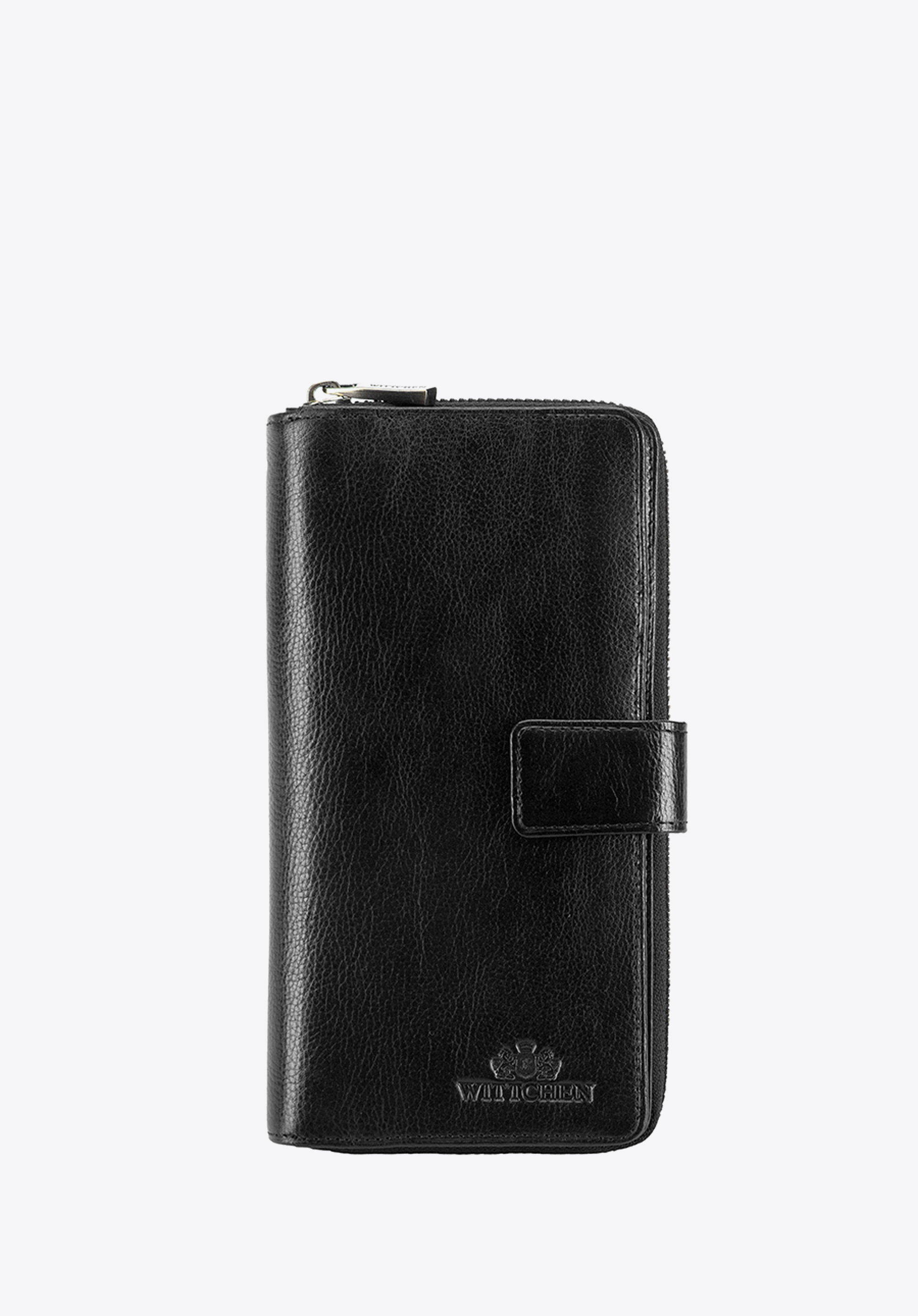 Duży skórzany portfel o unikalnym kroju. Posiada miejsce na bilon oraz wygodne zamknięcie na suwak. Model jest połączeniem funkcjonalności z nowoczesną stylistyką.