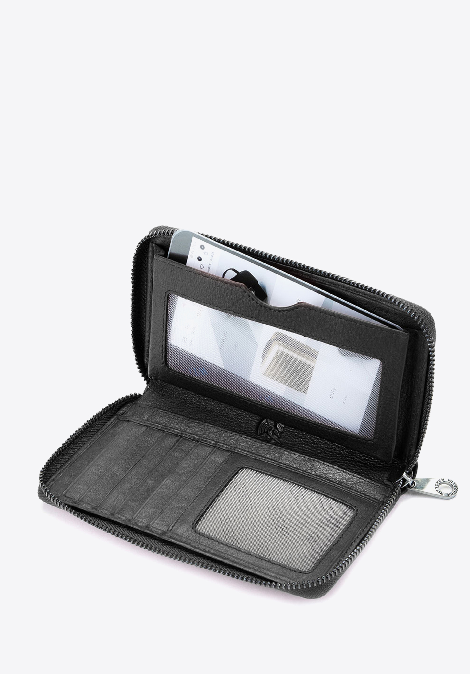 - kieszeń na bilon zamykana na suwak;