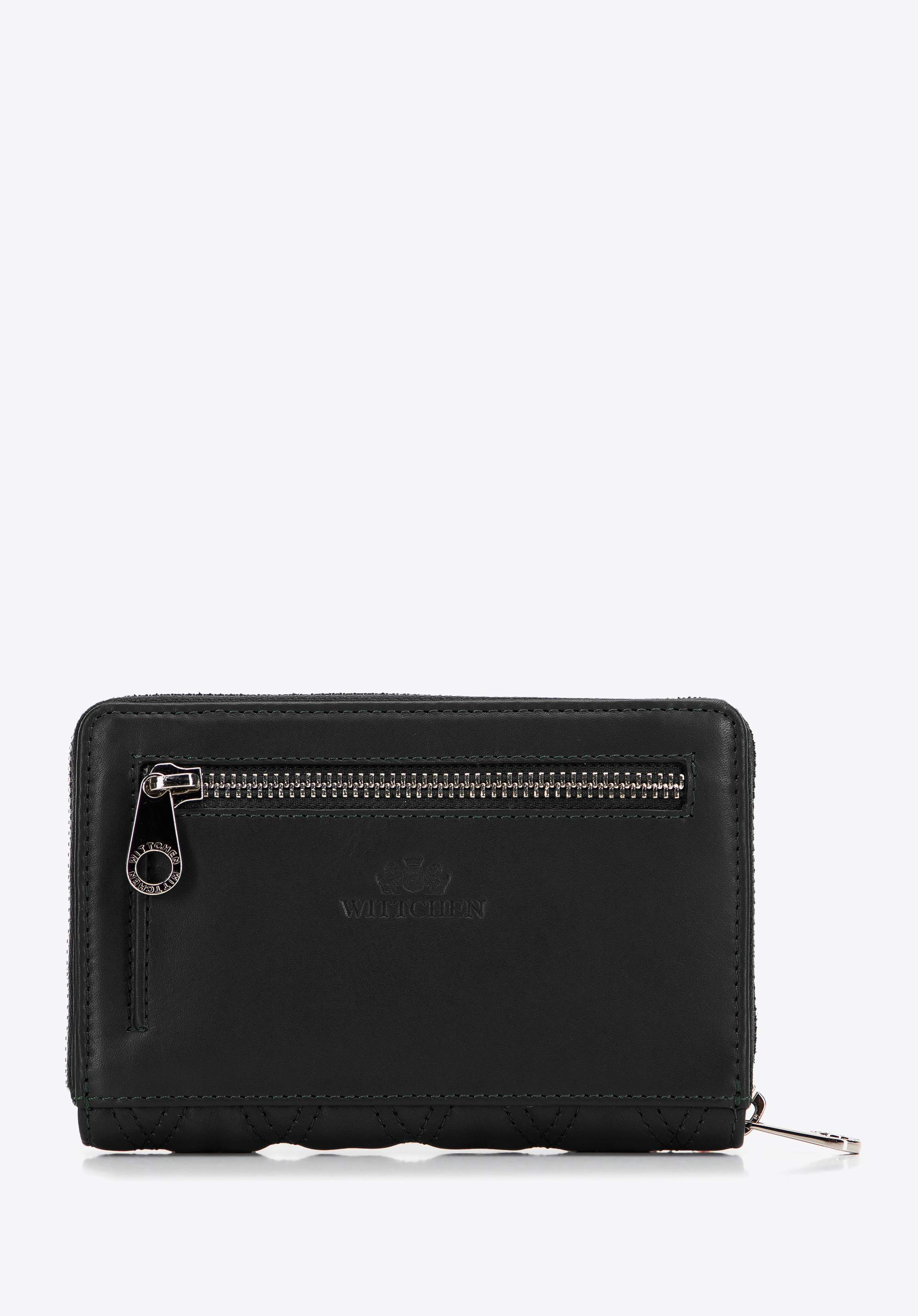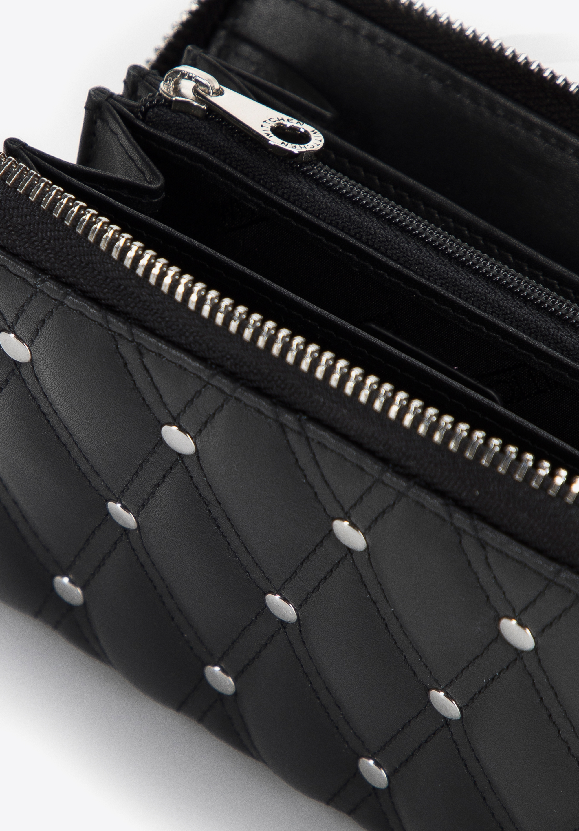 Damski portfel skórzany pikowany z nitami na suwak to świetny wybór na wiele sezonów.