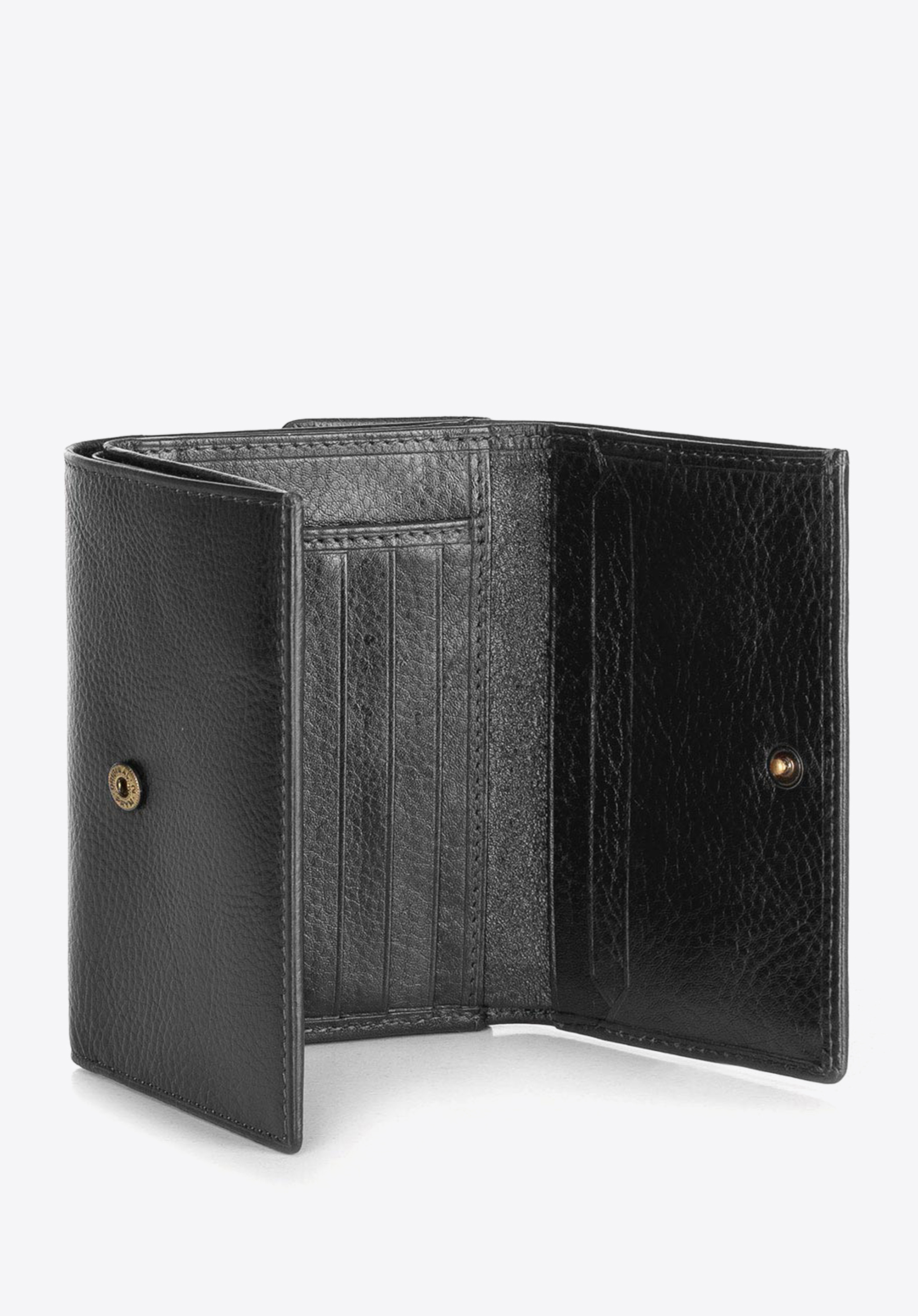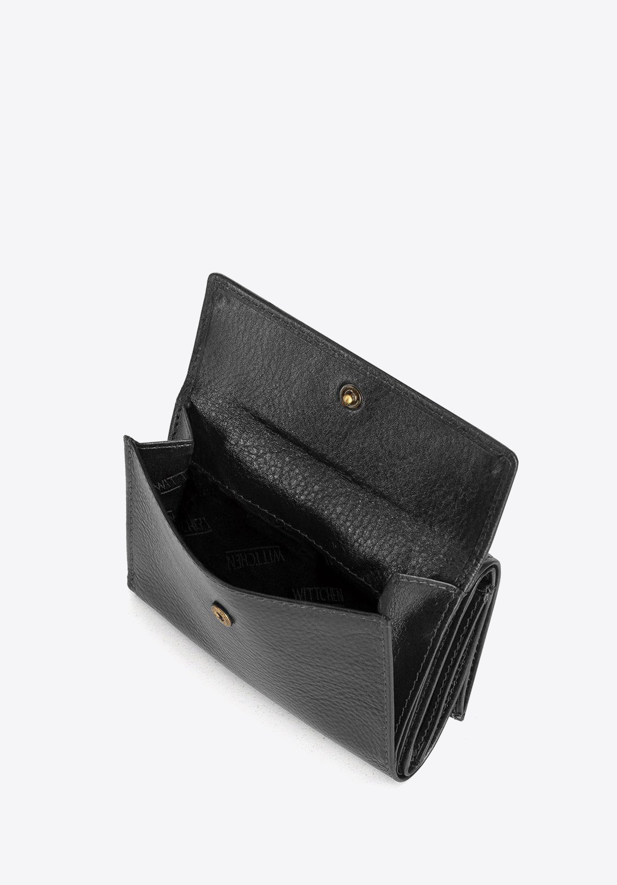 Średniej wielkości portfel damski z logo - herbem WITTCHEN uszyty ręcznie z miękkiej i wytrzymałej skóry cielęcej. Klasyczny model, który zawsze pozostaje w trendach, idealny dla Pań szukających elegancji w każdym drobiazgu. Ma podszewkę z RFID, która chorni karty przed sczytywaniem danych.