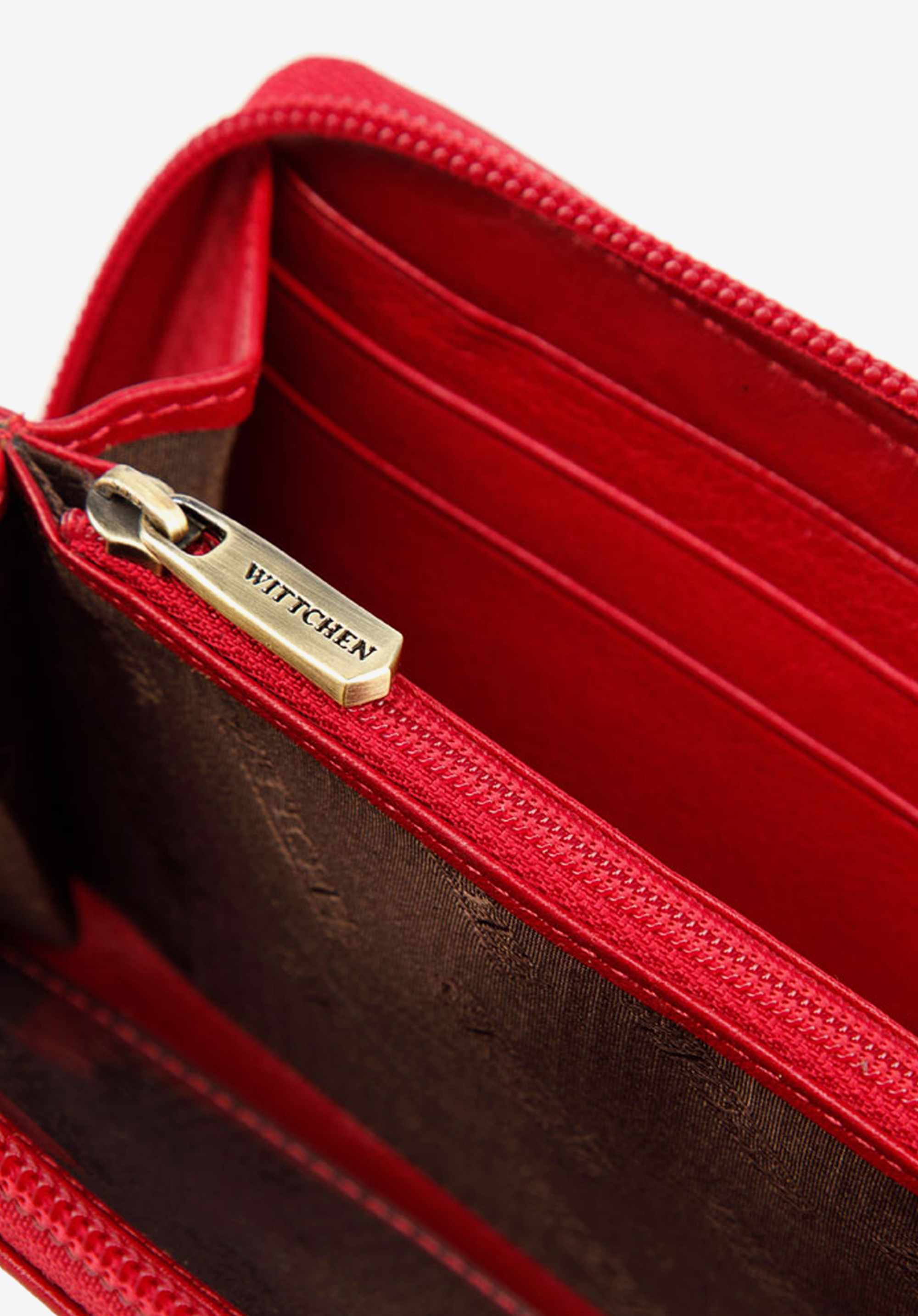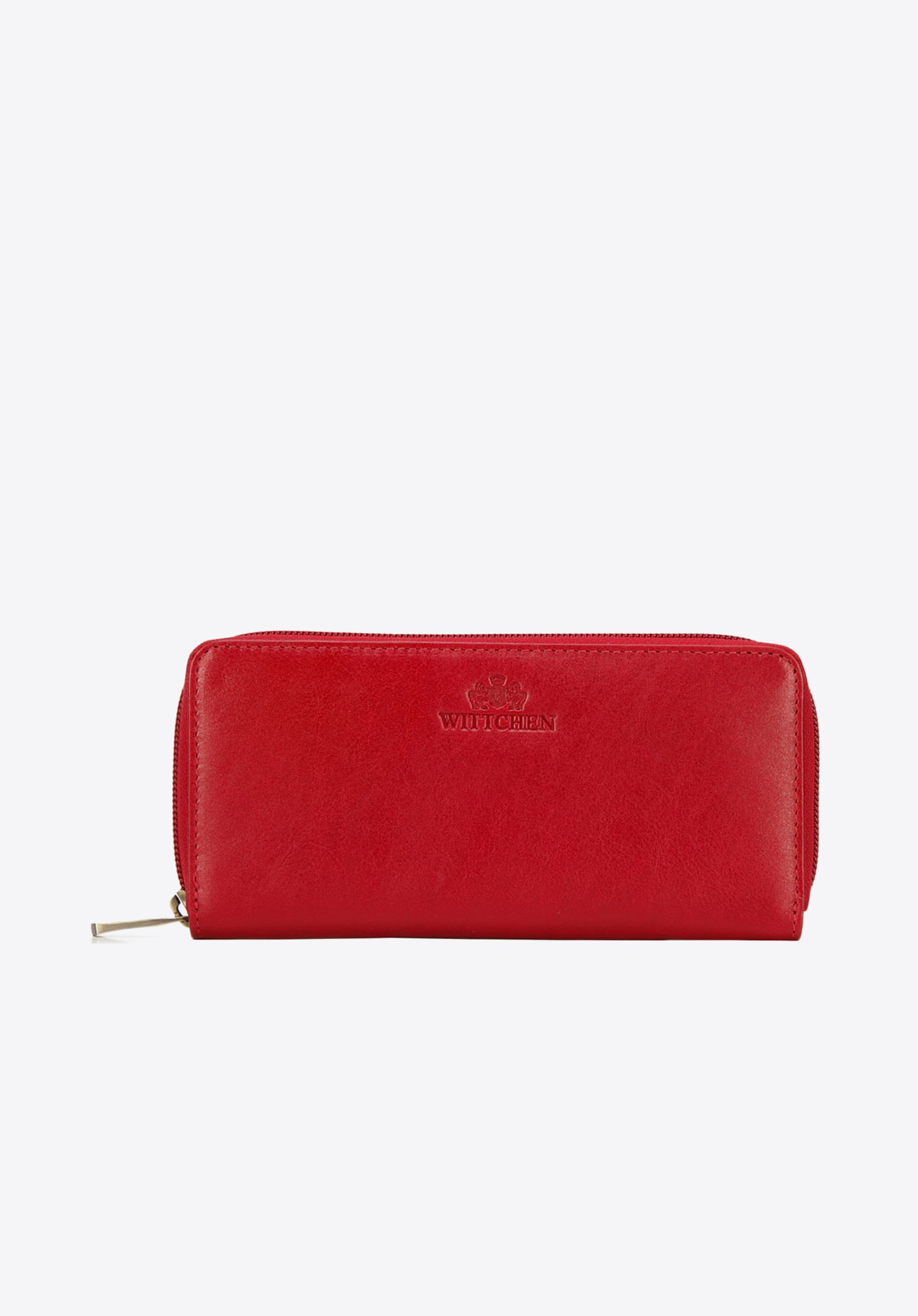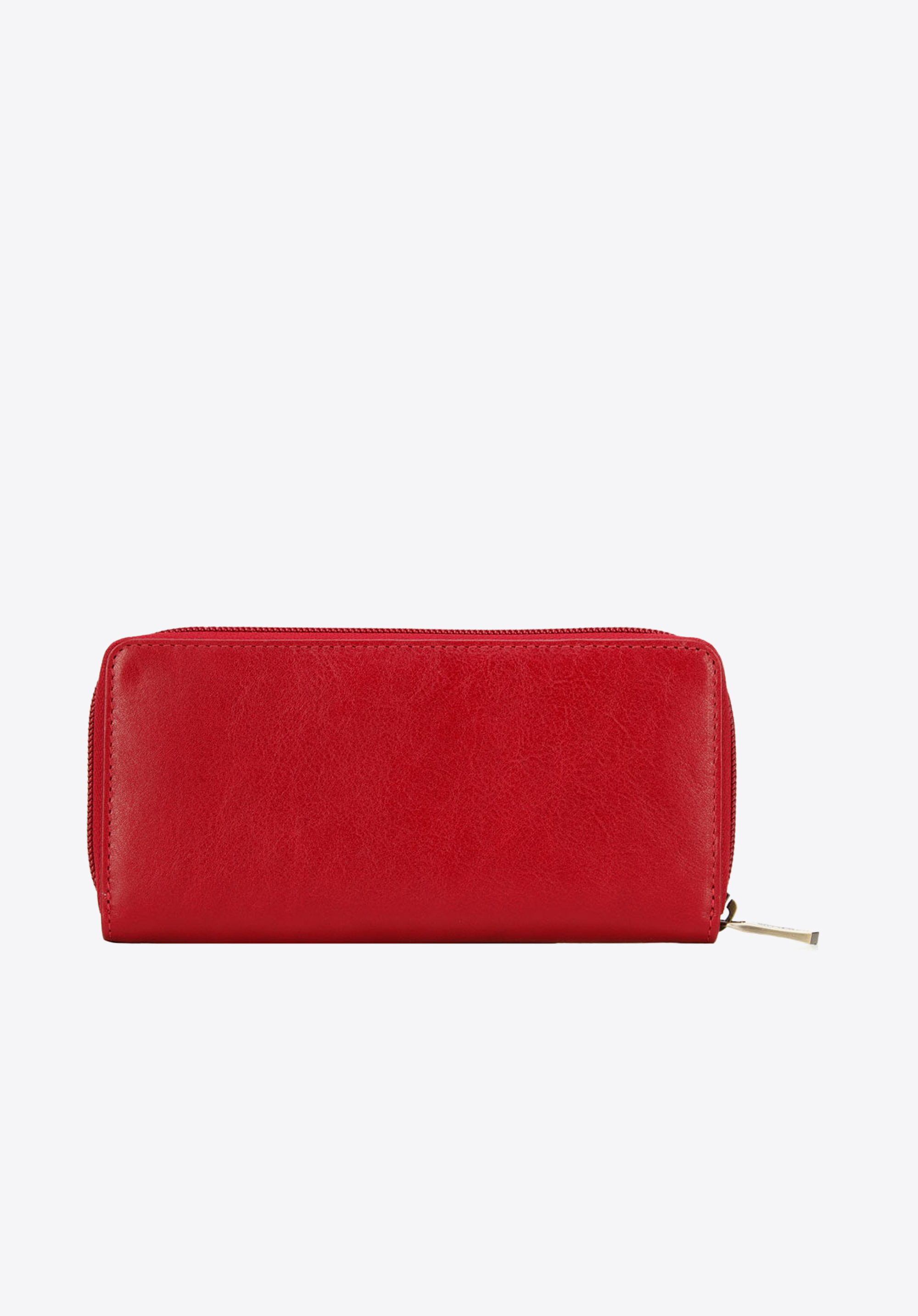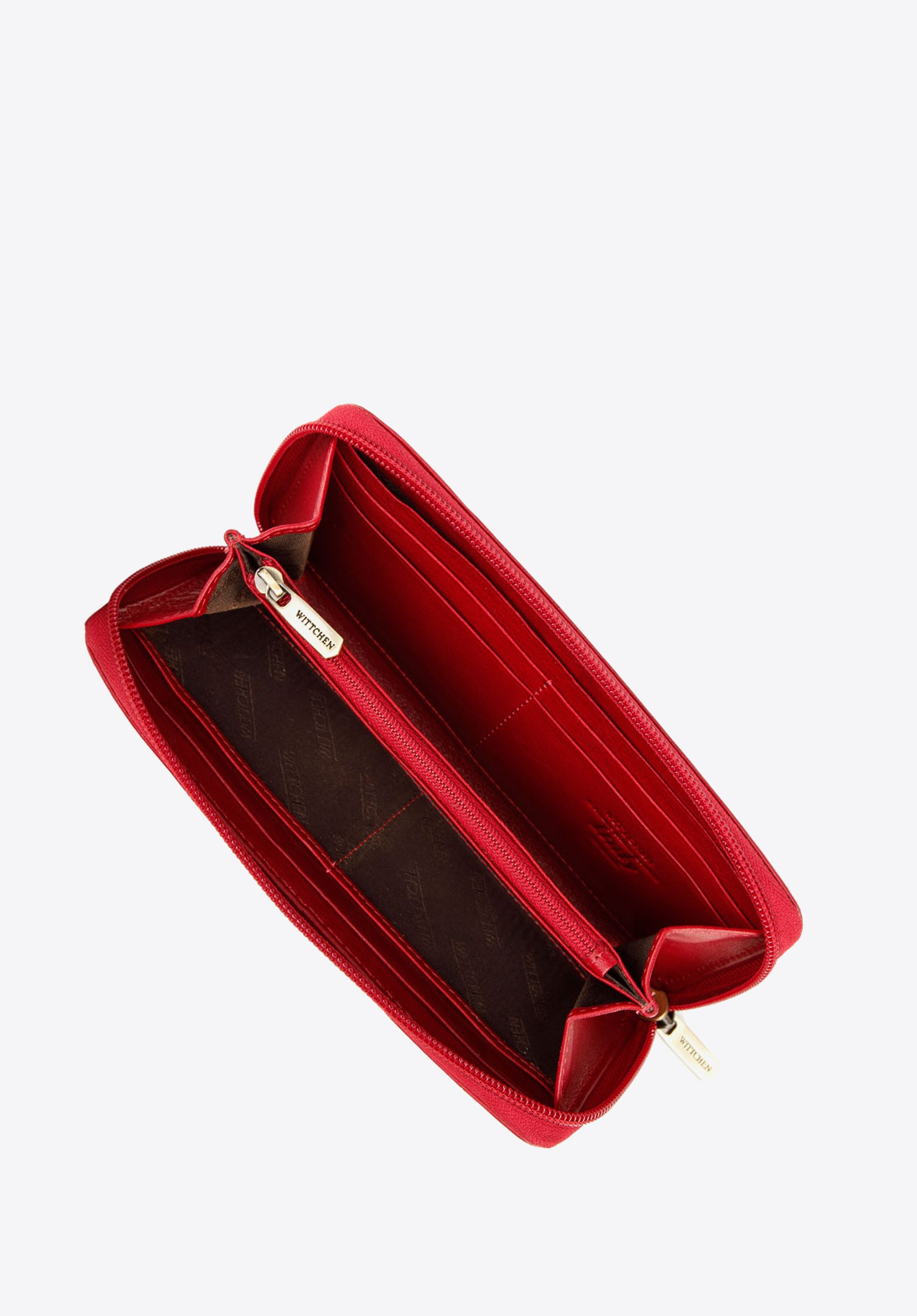 Stylowy duży portfel damski z wygodnym zamknięciem na suwak, pomieści potrzebne dokumenty, karty płatnicze oraz bilon. Bardzo starannie i estetycznie, ręcznie wykonany z miękkiej skóry cielęcej.