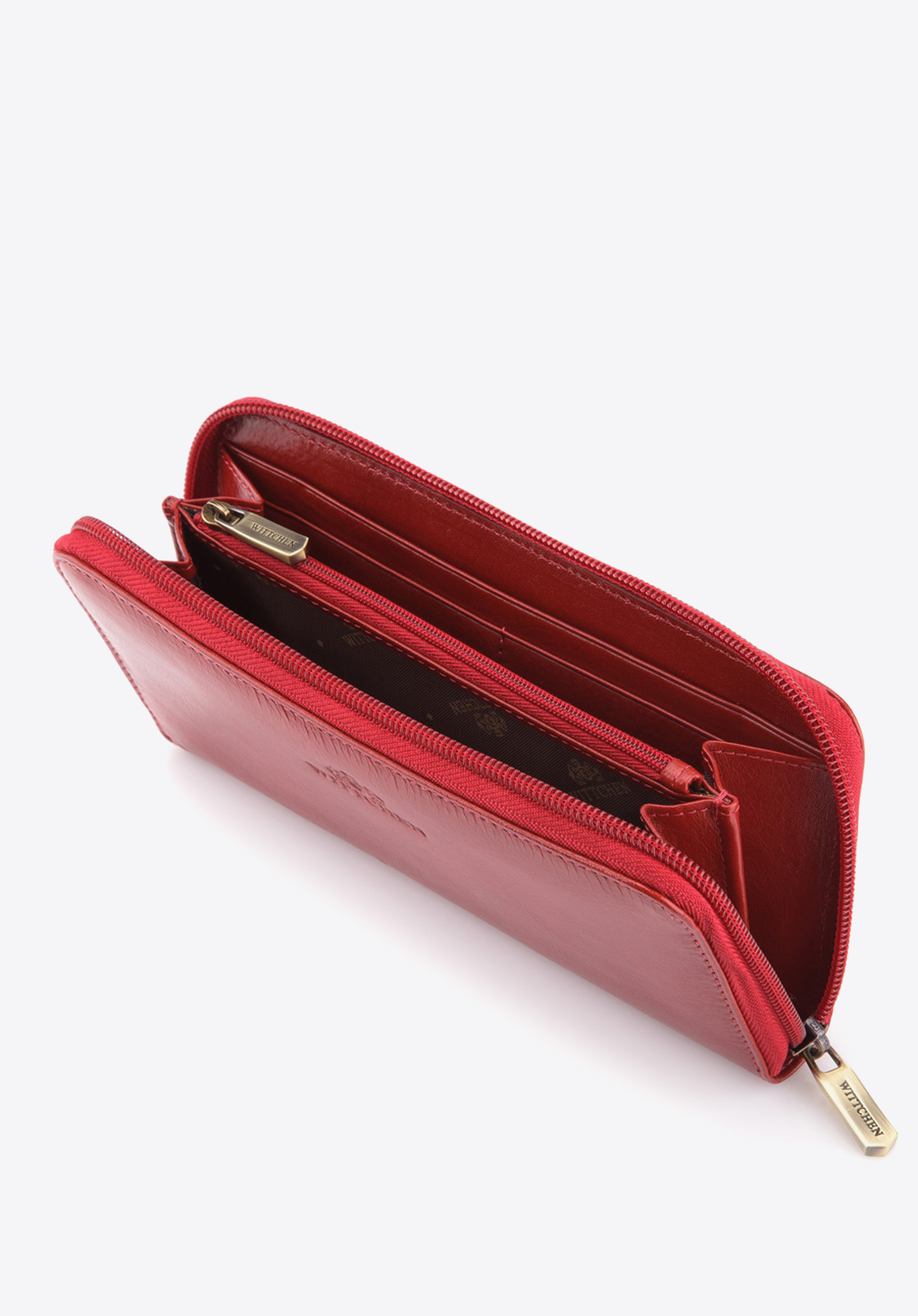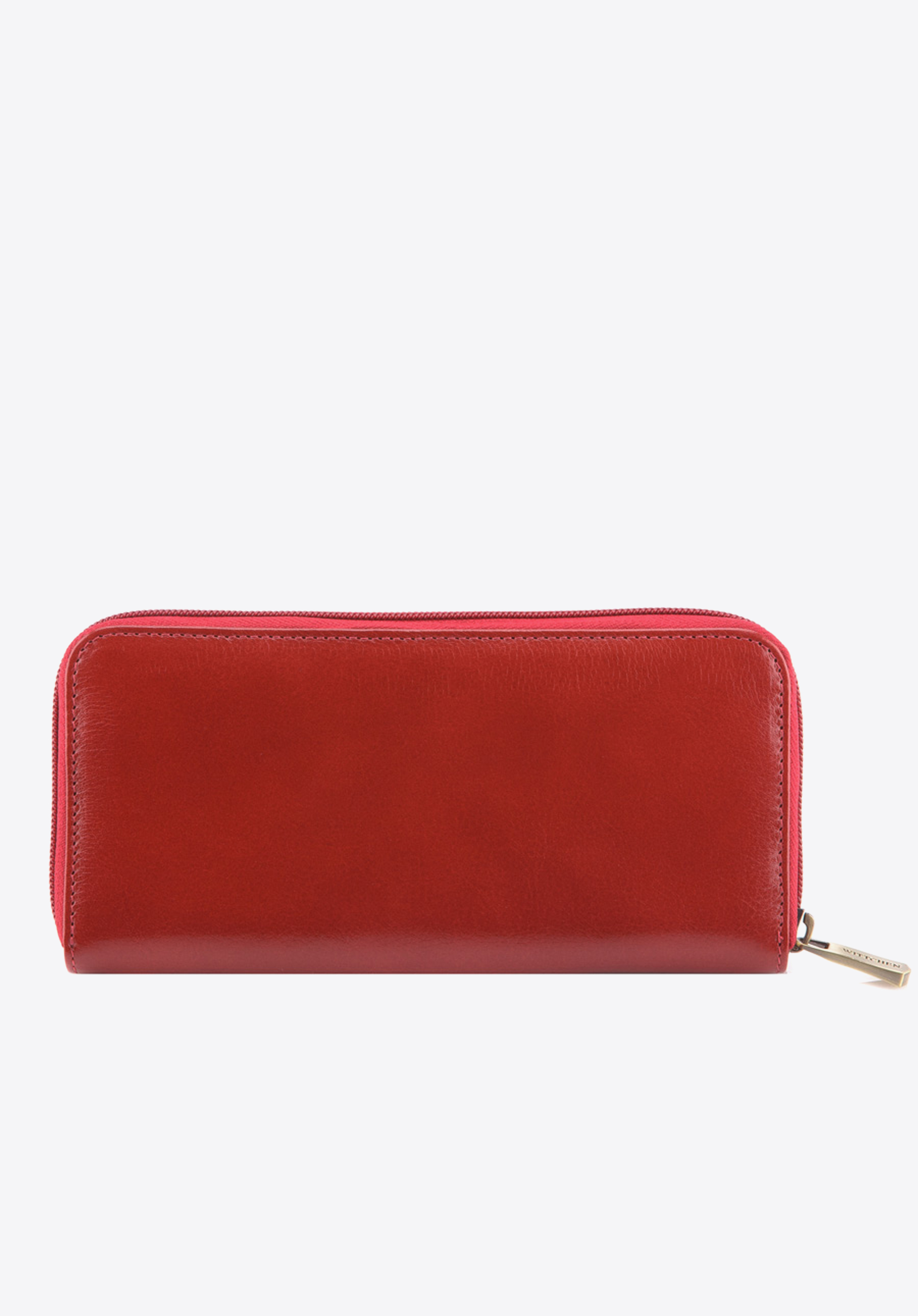 Stylowy duży portfel damski z wygodnym zamknięciem na suwak, pomieści potrzebne dokumenty, karty płatnicze oraz bilon. Bardzo starannie i estetycznie, ręcznie wykonany z miękkiej skóry cielęcej.