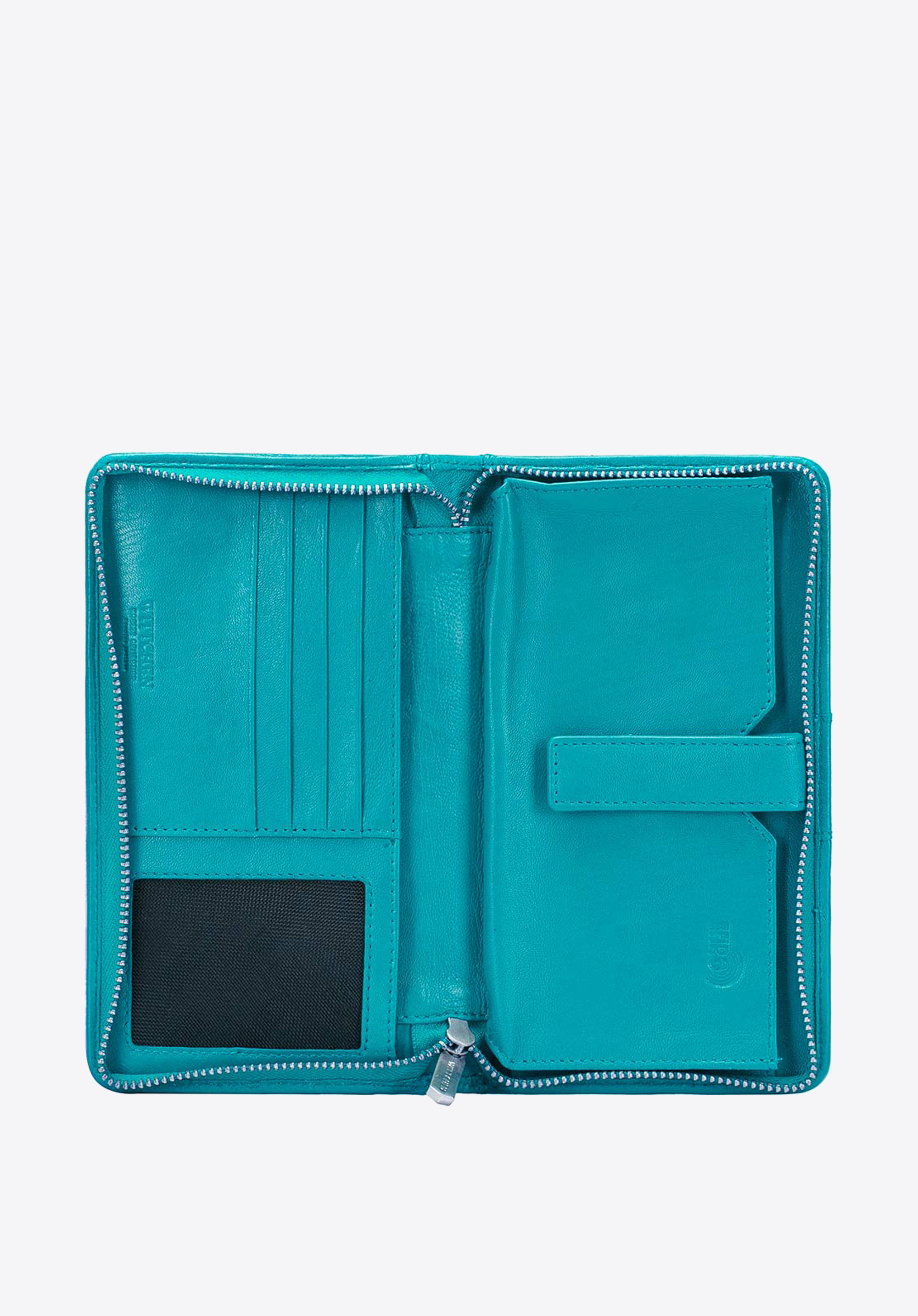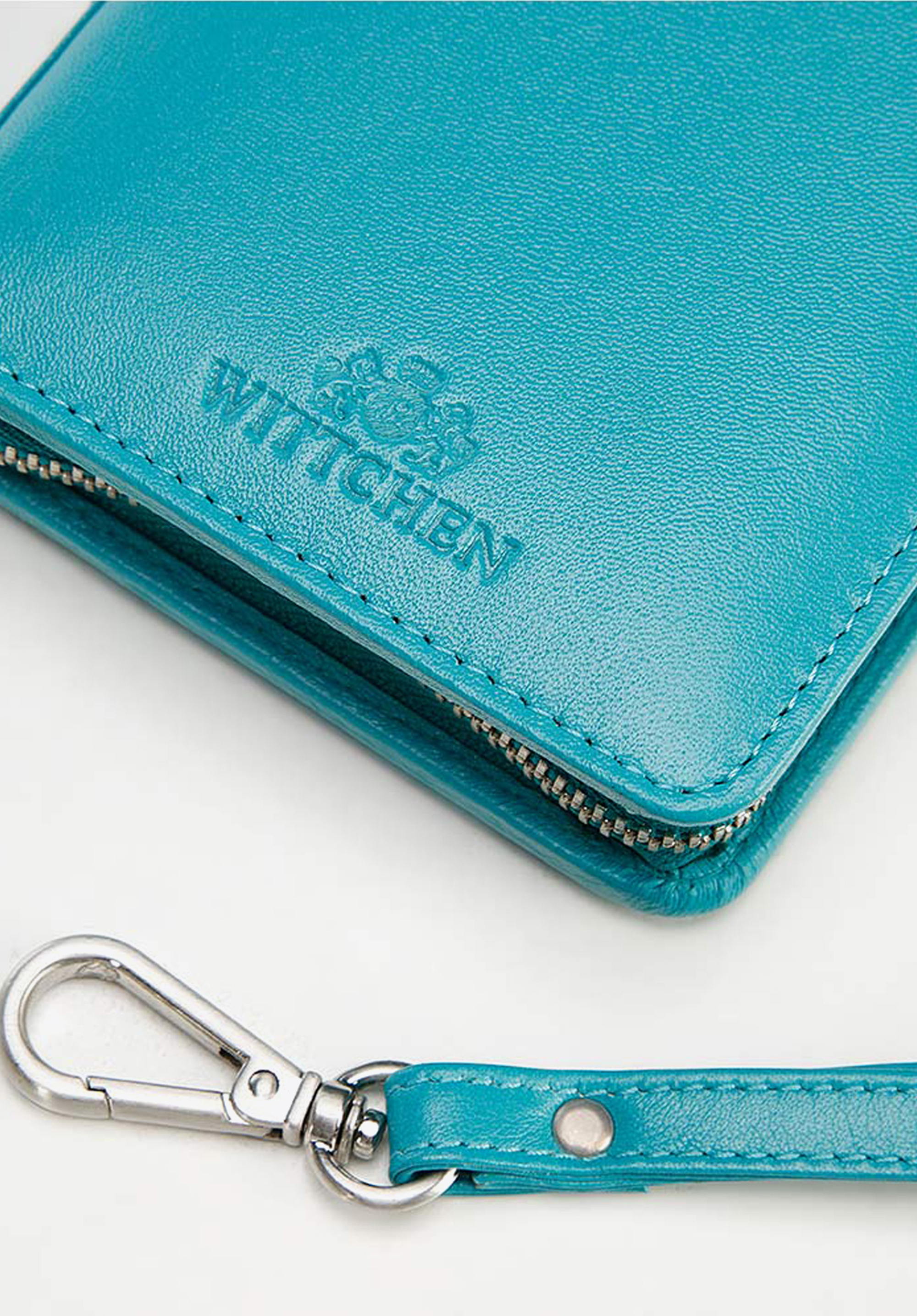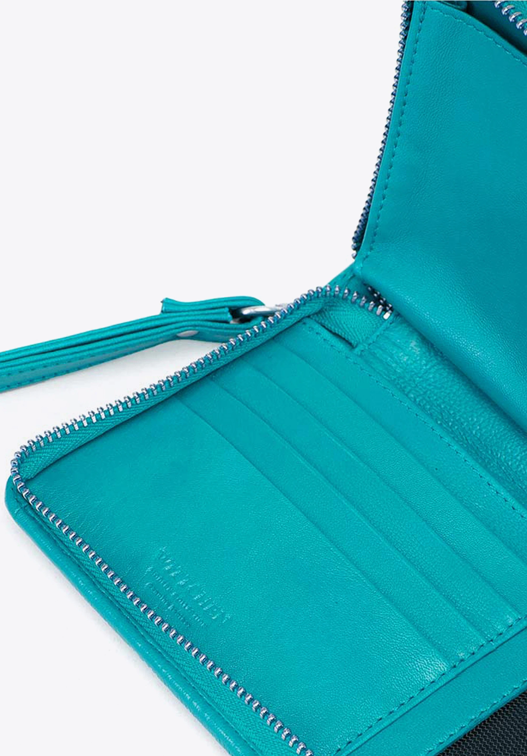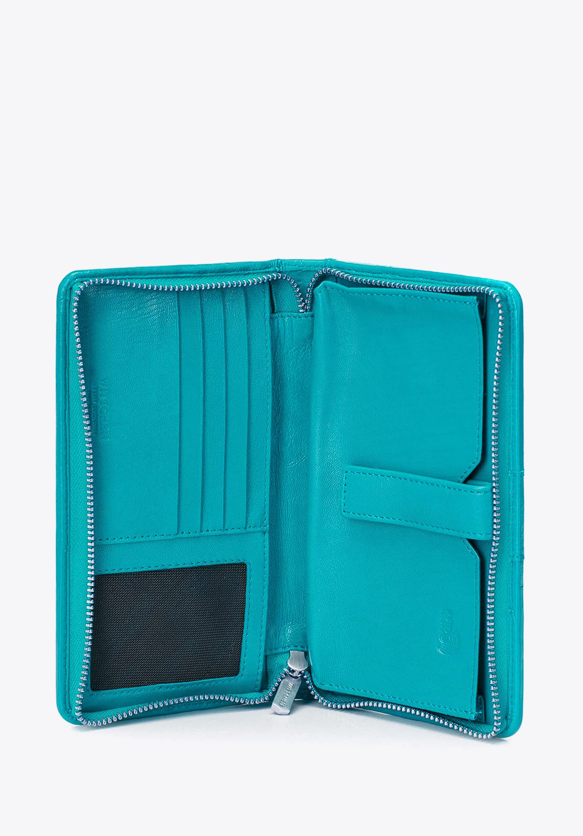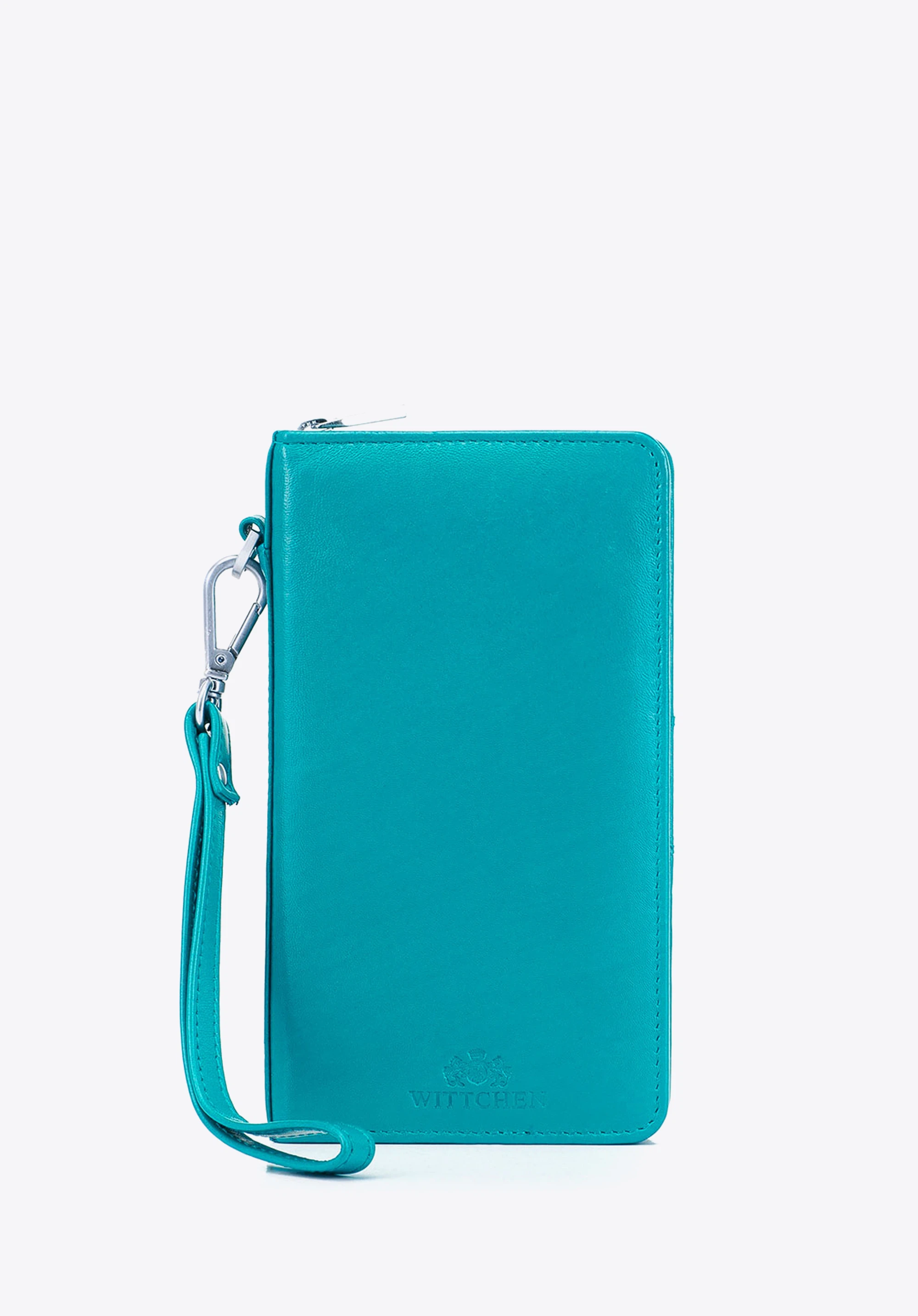 Damski portfel skórzany z kieszenią na telefon turkusowy