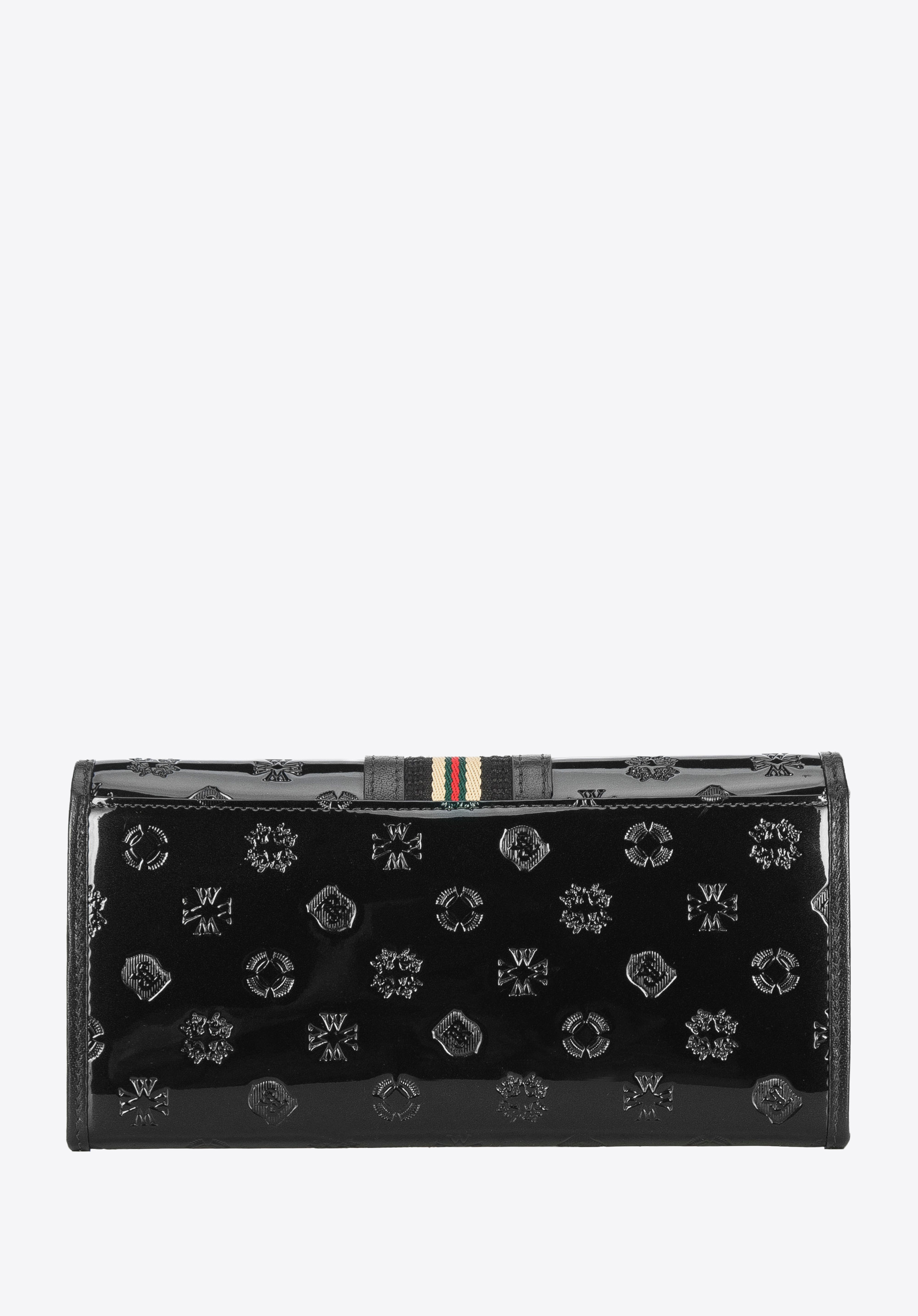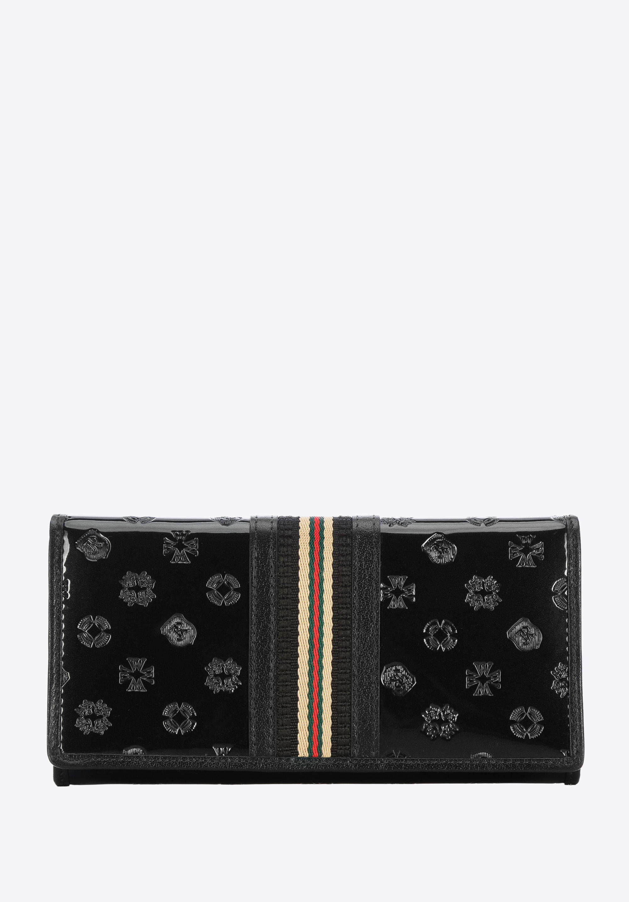 damski portfel z lakierowanej skóry z monogramem i tasiemką to ponadczasowy model, do którego możesz dobrać pasującą torebkę lub etui na klucze
