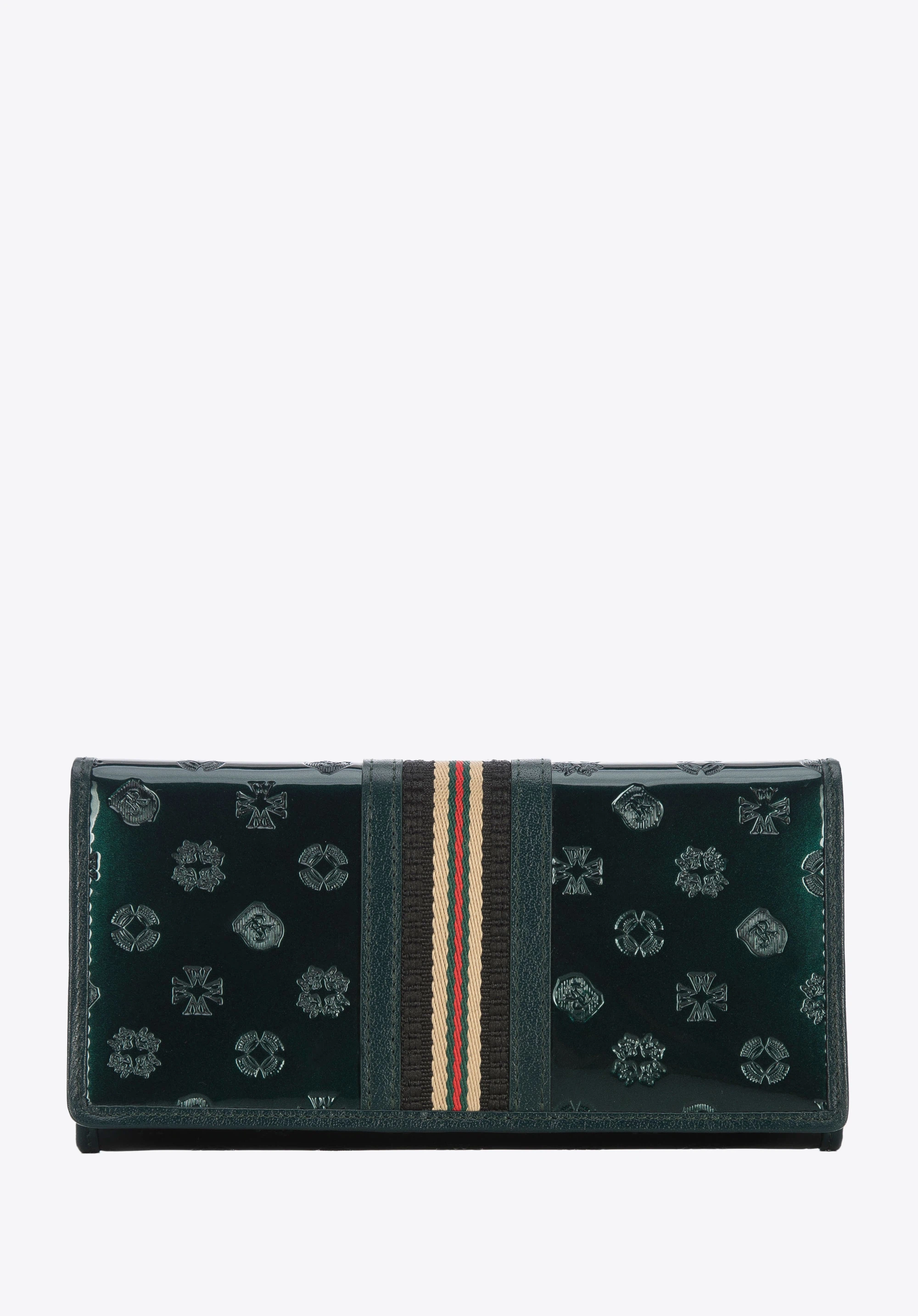 damski portfel z lakierowanej skóry z monogramem i tasiemką to ponadczasowy model, do którego możesz dobrać pasującą torebkę lub etui na klucze