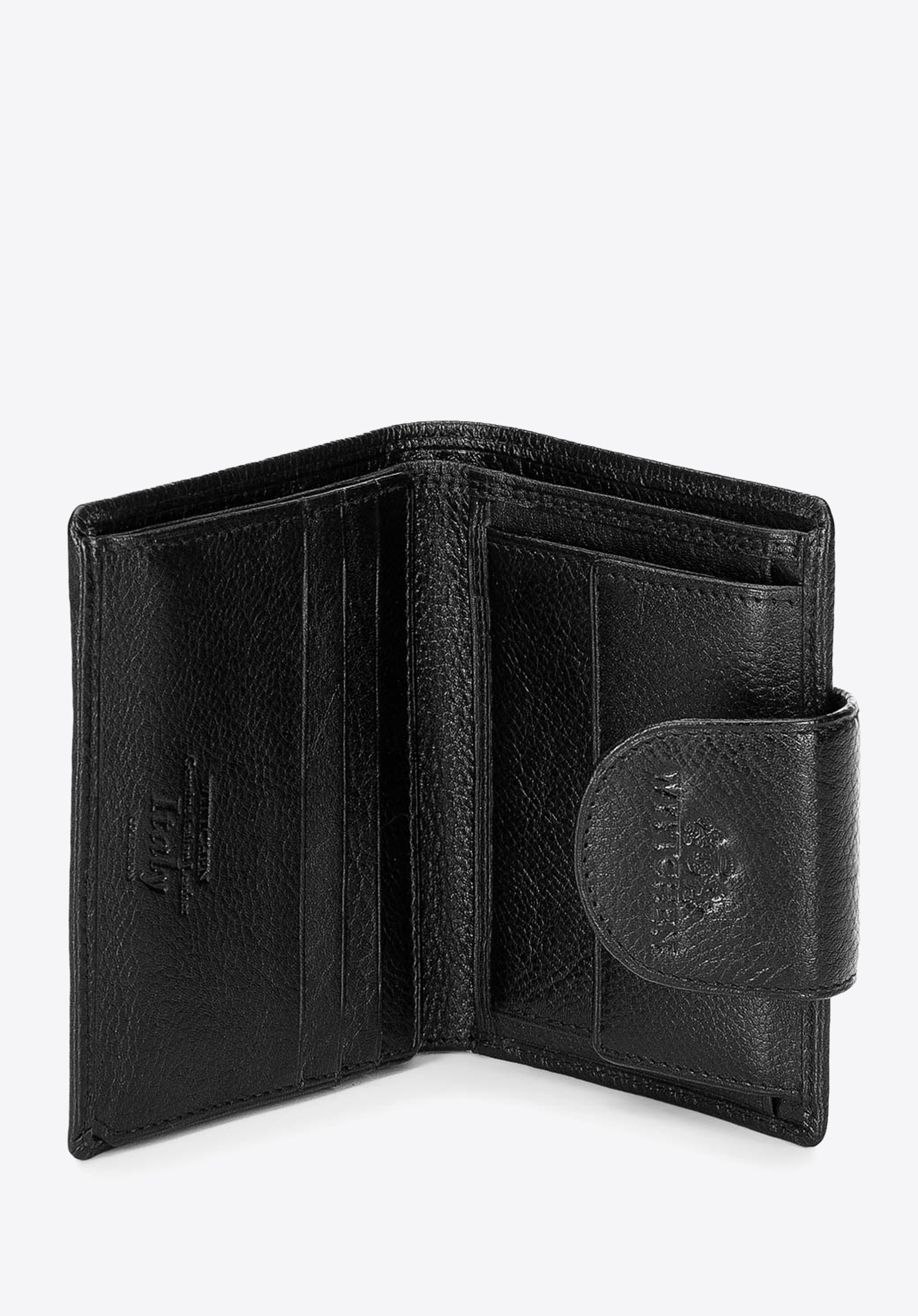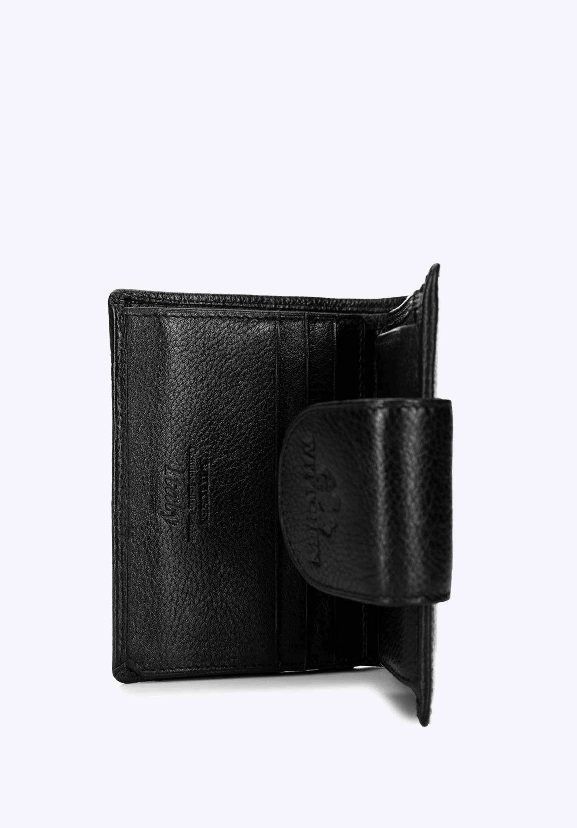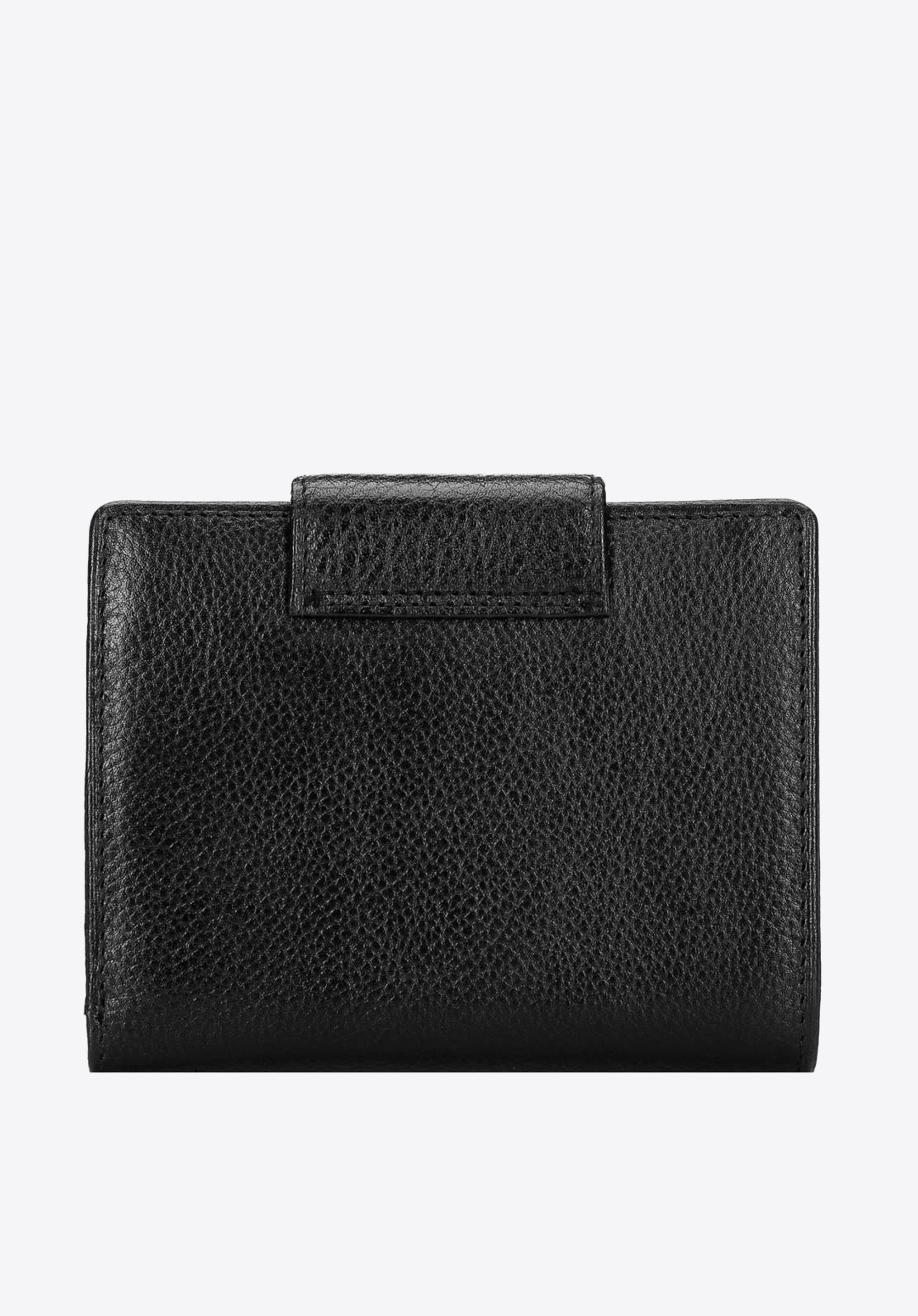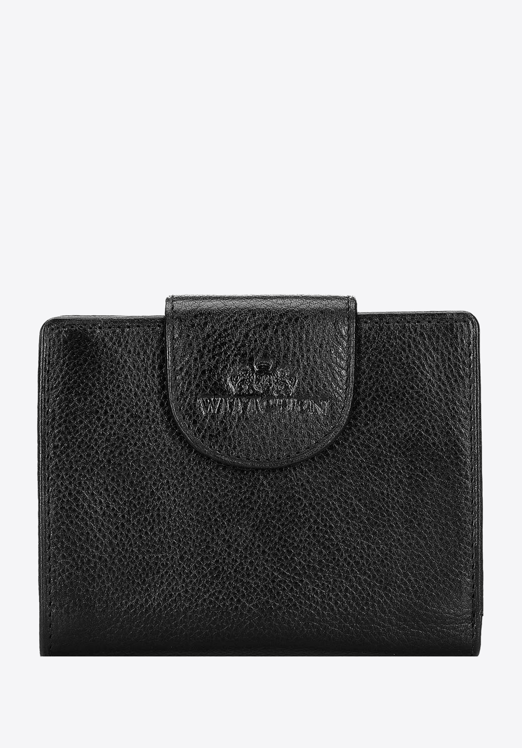 Szykowny portfel damski wykonany z wysokiej jakości skóry cielęcej o fakturze groszkowej. Model wyposażony w miejsce na bilon, trzy miejsca na karty kredytowe, trzy kieszenie, w tym dwie przezroczyste oraz dwie kieszenie na banknoty. Portfel jest połączeniem klasycznej elegancji z wyjątkową funkcjonalnością. Zapakowany jest w opakowanie z logo WITTCHEN, co sprawia, że doskonale nadaje się na prezent. Jego podszewka, dzięki zastosowaniu technologii RFID, chroni karty przed sczytywaniem danych.