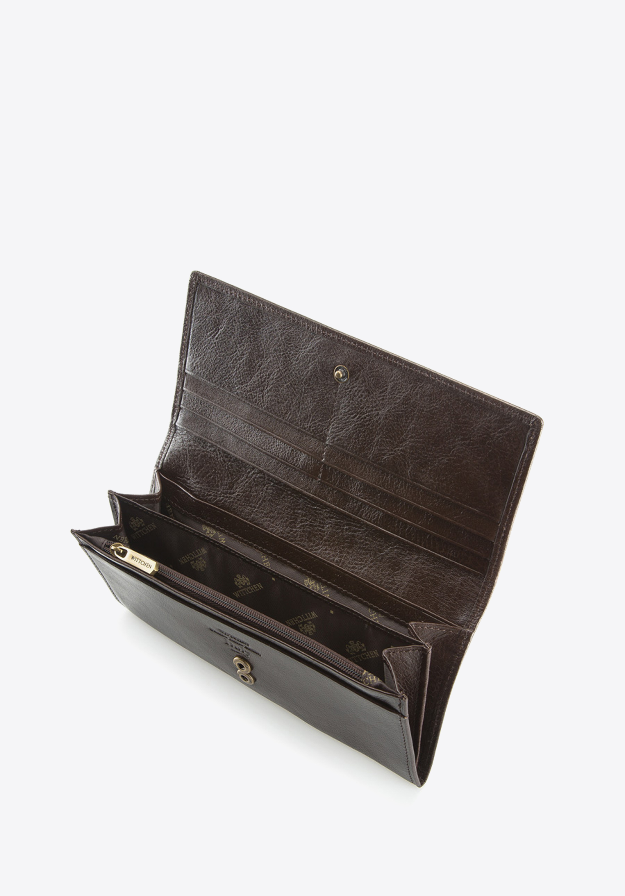 Portfel damski wykonany z niezwykłą starannością, z najwyższej jakości włoskiej skóry cielęcej, wykończony logo - herbem WITTCHEN wytłoczonym w skórze. Klasyczny, stylowy dodatek, który powinien zagościć w damskiej torebce.