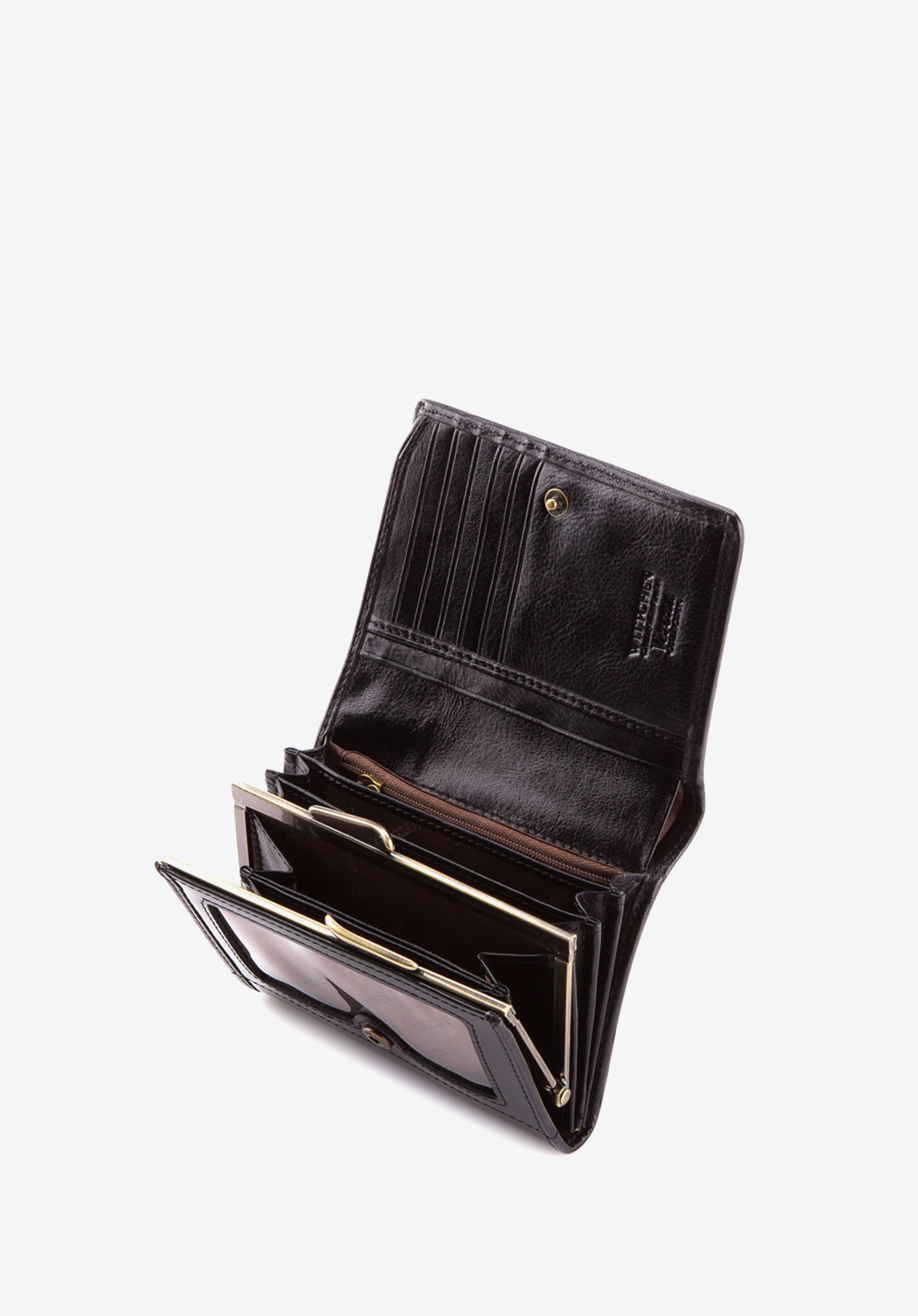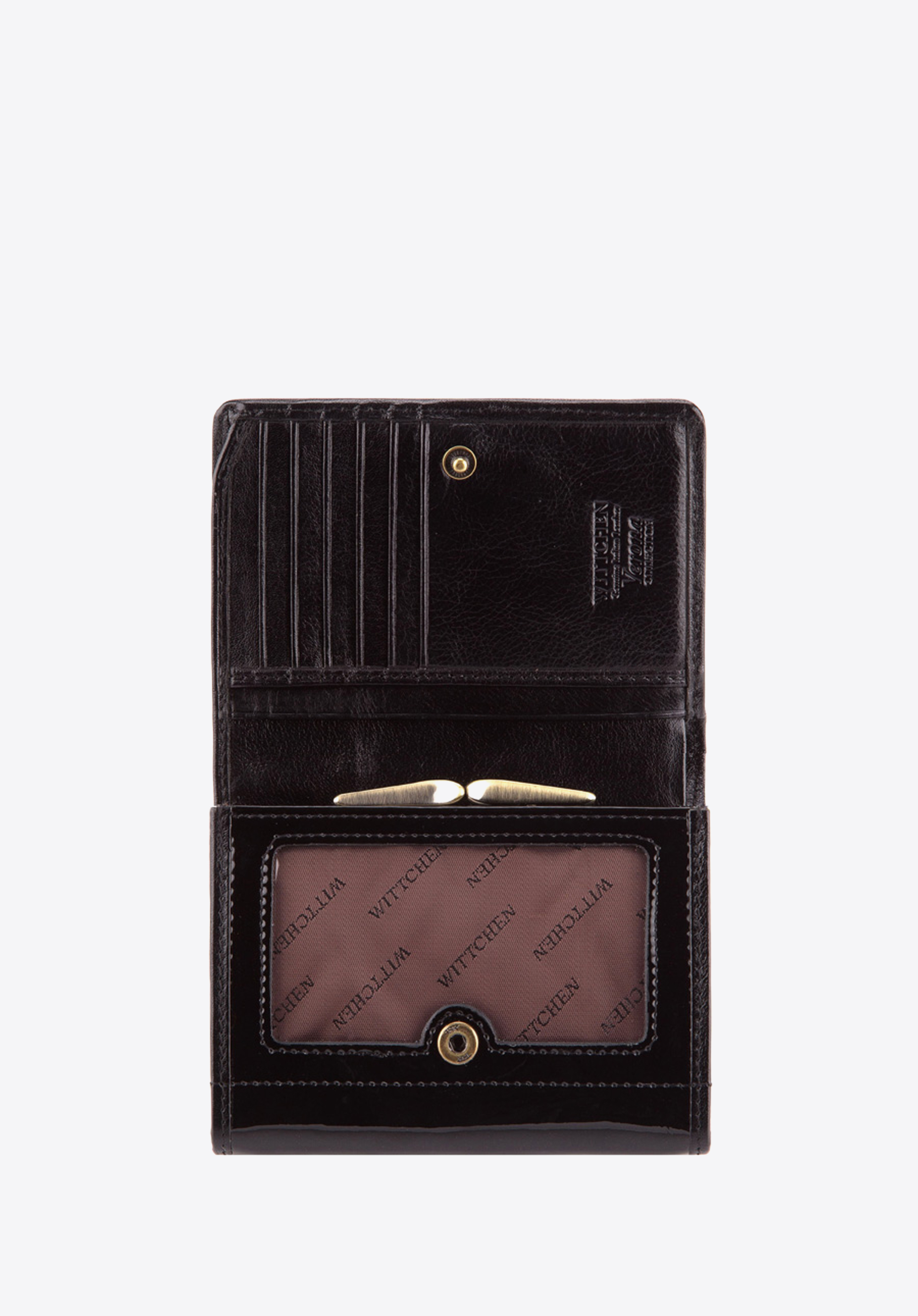- portmonetka posiada zdobienie w postaci blaszki z herbem WITTCHEN w kolorze starego złota;