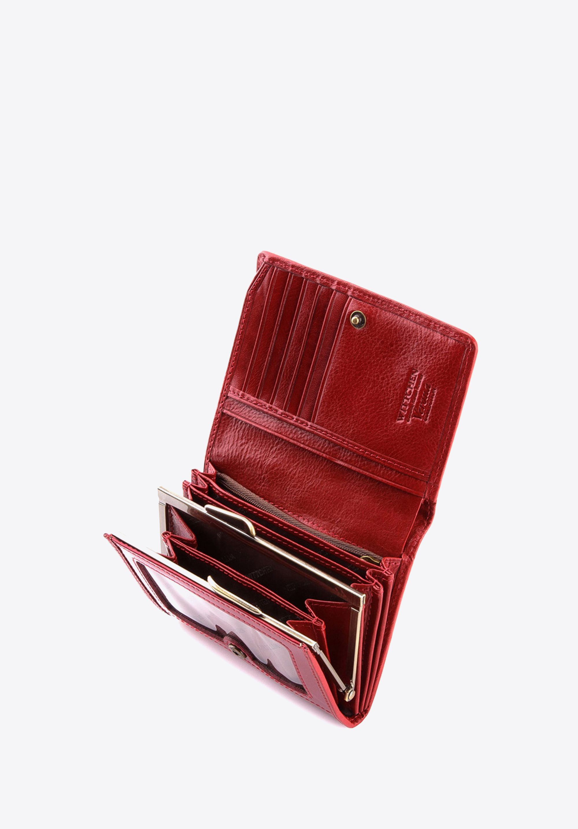 - portmonetka posiada zdobienie w postaci blaszki z herbem WITTCHEN w kolorze starego złota;
