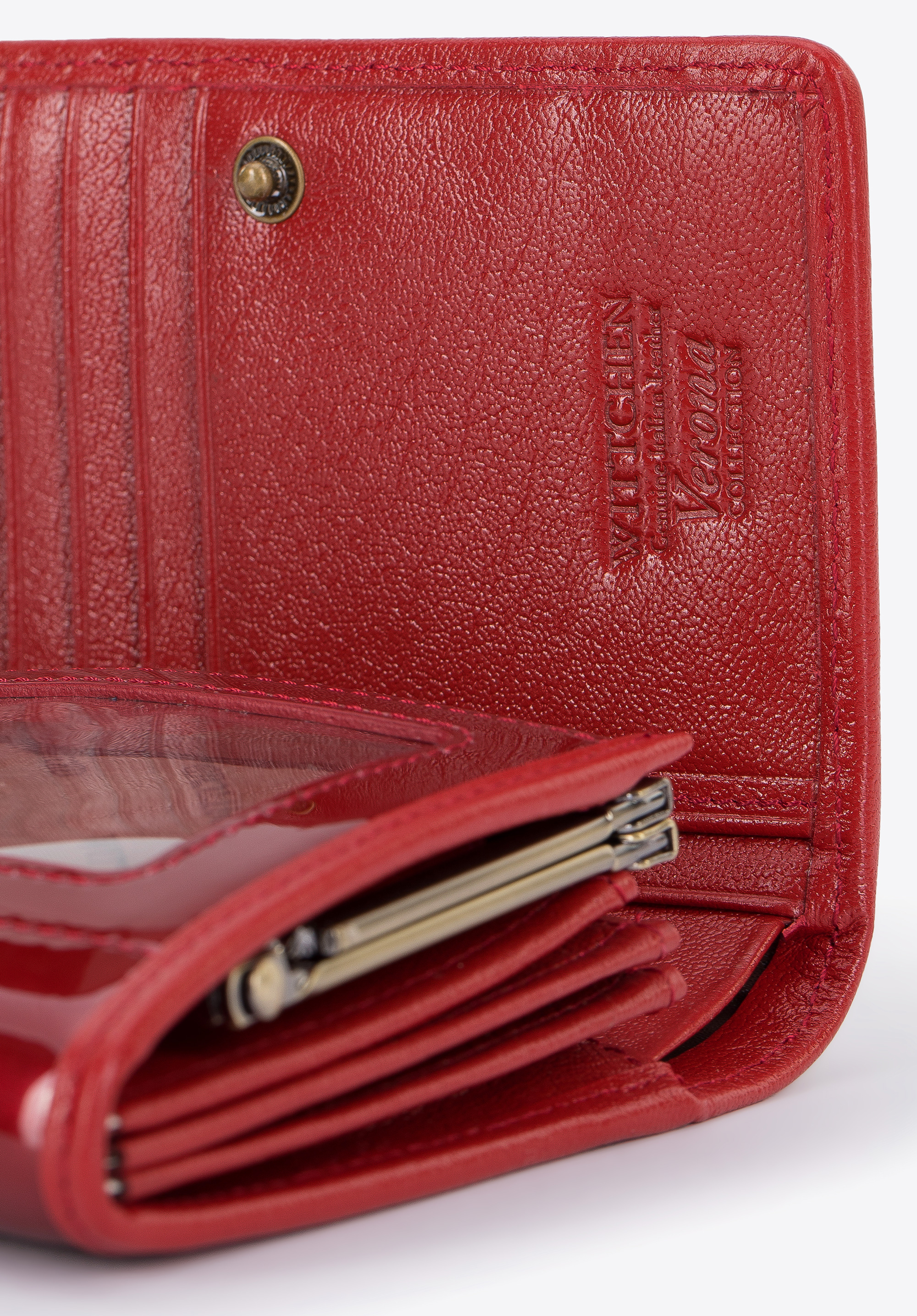 skórą licową, znajdującą się wewnątrz portmonetki i na jej obszyciach. Panie docenią liczne kieszonki i przegródki na karty w eleganckiej oprawie oraz wyjątkowo szykowny styl.
